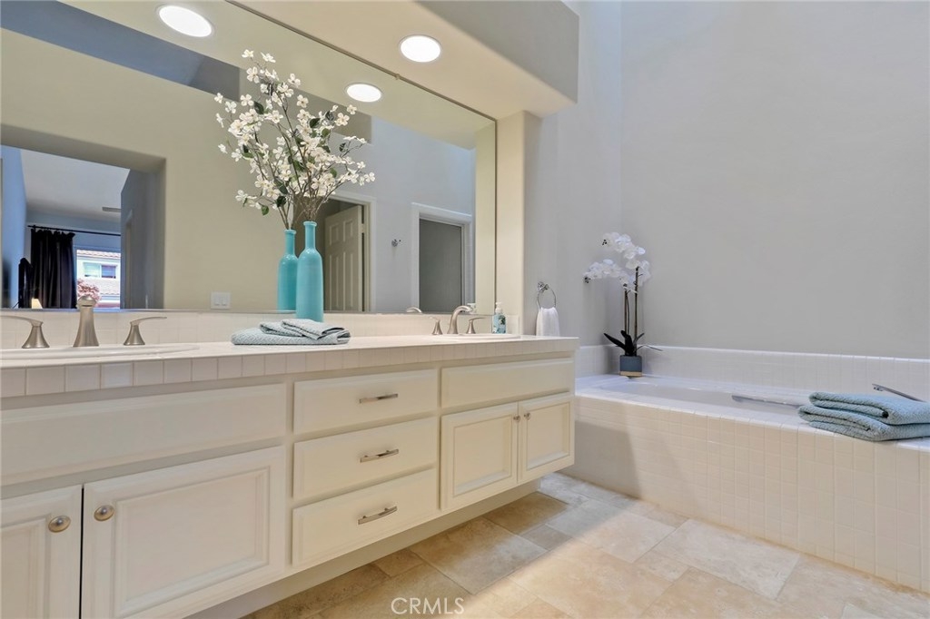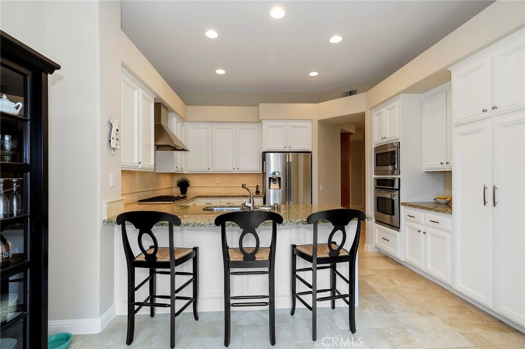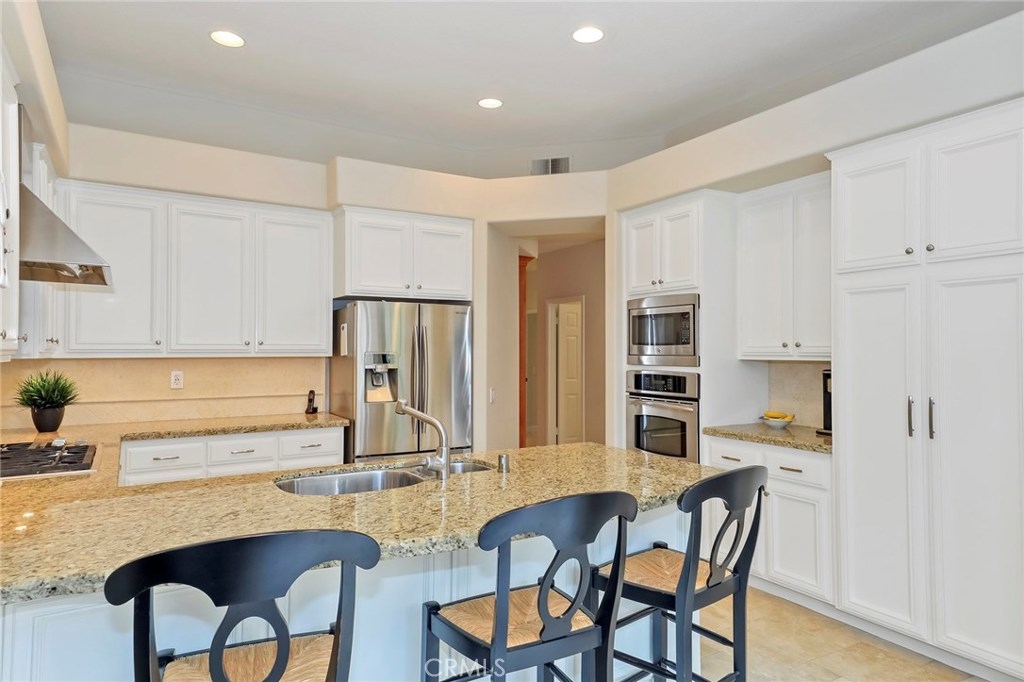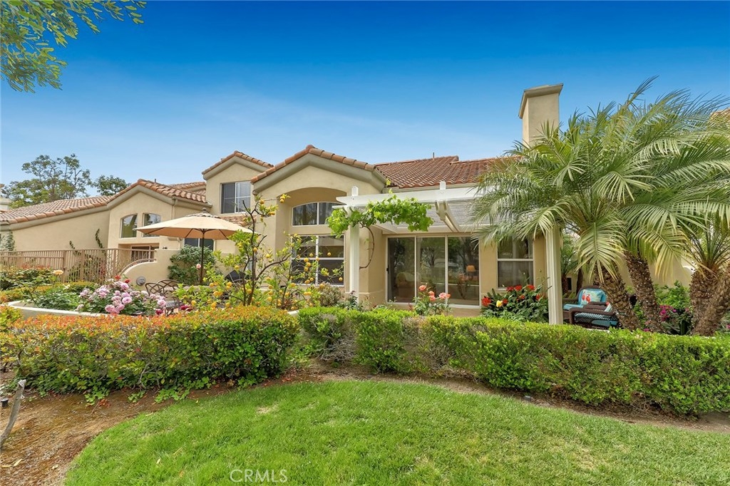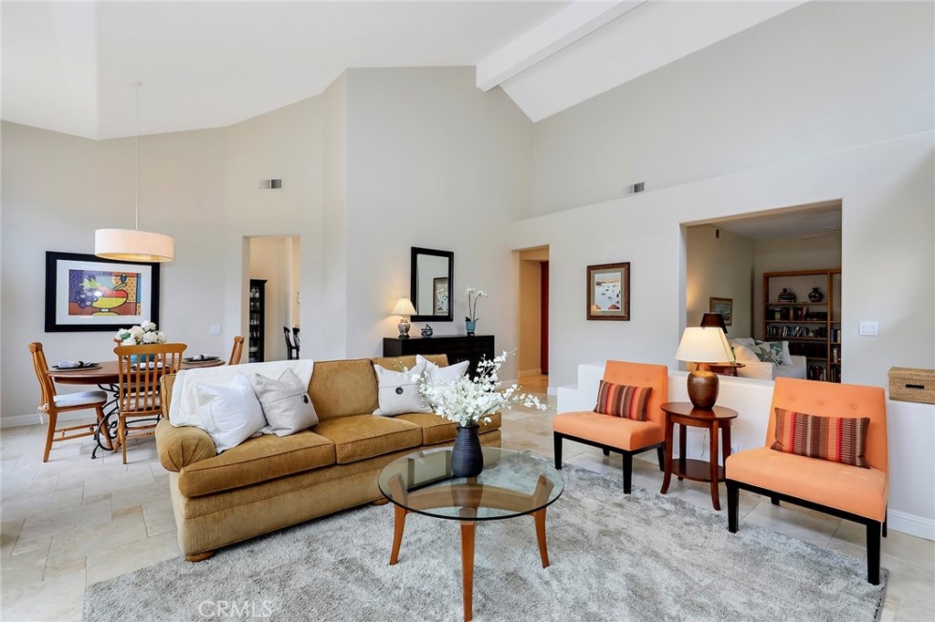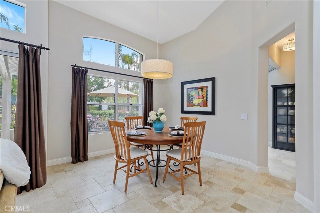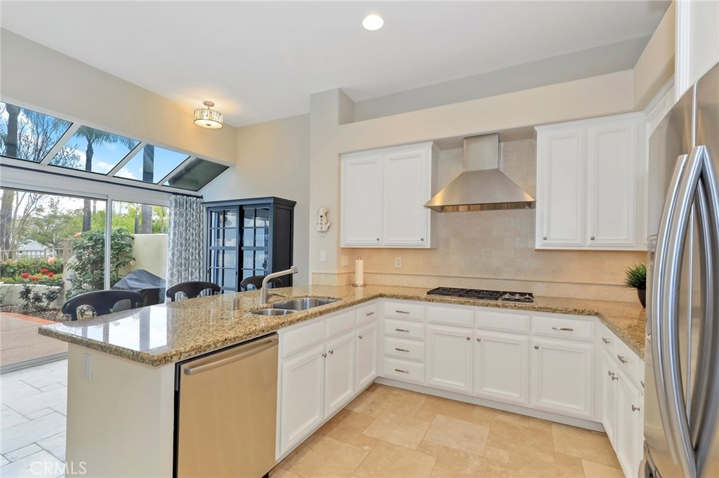 SINGLE STORY HOME built by JM Peters with 2 BEDROOMS + an OFFICE! RESORT STYLE LIVING IN ALICANTE, a Tijeras Creek Golf Course Neighborhood! Features custom paint, tumbled travertine floors, large baseboards, ceiling fans, recessed lighting, vaulted ceilings, living room with a travertine fireplace and a formal dining room. Remodeled kitchen with granite counters, stainless steel appliances, stunning white cabinets, beautiful backsplash, solarium windows and a breakfast nook that opens onto the patio. The master bedroom has vaulted ceilings, walk-in closet with built-ins, private patio and a master bath with a stall shower, tub, vaulted ceilings and skylight. Relax in the private back patio area with an overhang, landscaping and view of the greenbelt. There is a two car attached garage, concrete driveway and the home has been repiped with Pex Piping. Enjoy Alicante's association pool and spa! Also the Rancho Santa Margarita City Association amenities like the Lake, Lagoon, Pools, Parks, Tennis Courts and More!