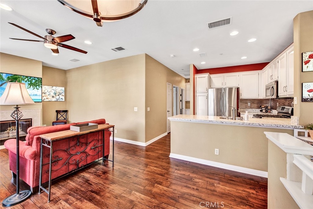 Welcome To The Centrally Located Community Of Barcelona In The Heart Of RSM. Meticulous Upper End Carriage Unit, 2 Bedrooms, 2 Baths With 1 Car Attached Garage, 1 Reserved Space #15, Bright & Sunny Entertainers Balcony. Highly UPGRADED With Quartz Kitchen Countertops, Stainless Steel Appliances With Refrigerator Included, Beautiful Hardwood Flooring, Plantation Shutters, Newer Light Fixtures & Switches, Ceiling Fans, Fireplace, Remodeled Bathrooms, Resort Style Community Pool, Spa & Gym. The Location Of This Unit Is The Best In RSM Within Walking Distance To Shops, Restaurants, Library, Schools & More! Rancho Santa Margarita Residents Enjoy The Beautiful RSM Lake, Beach Club, 13 Parks, Playgrounds, Community Pools, Sports Courts, Hiking And Biking Trails. Just A Few Minutes Away From O’Neill Regional Park, Nearby Top Rated Schools And Easy Access To The 241 Foothill Transportation Corridor.