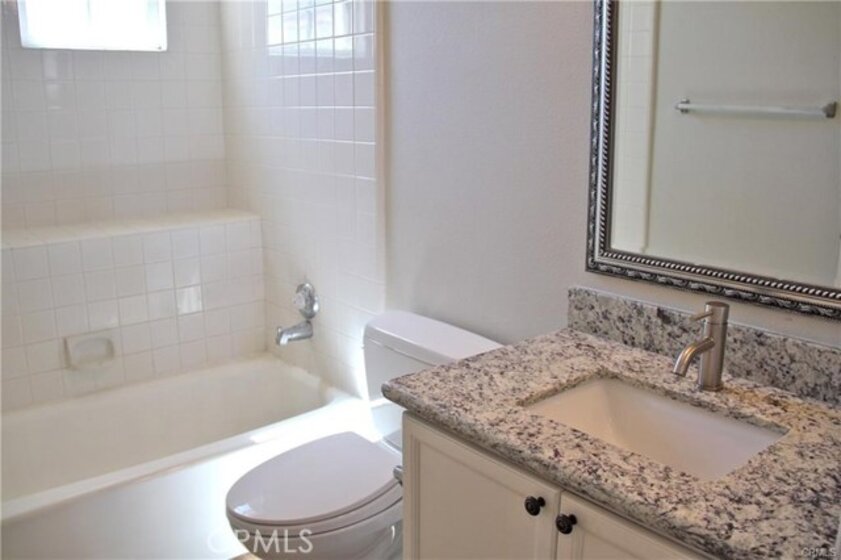 Sophisticated 2 bedrooms, 2 full bath and attached garage with expanded storage area. This light and bright home has been remodeled with neutral designer interior paint, beautiful carpeting, remodeled kitchen with stainless steel appliances, microwave, granite counter tops and plenty of cabinets. Living room and dining room with high ceilings and cozy fireplace with plenty of room for entertaining. Generous sized master bedroom includes ceiling fan, dual closets with remodeled spa like master bath. Secondary bedroom has a separate slider to the balcony and across the is another remodeled bath. The laundry room accommodates a full size washer and dryer and added storage space. Private balcony area is great for enjoying some sun, or BBQ. Short stroll to shopping, schools and the beautiful Rancho Santa Margarita Lake.