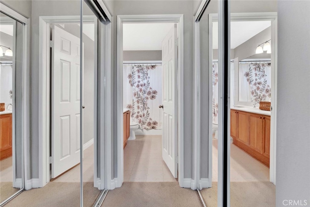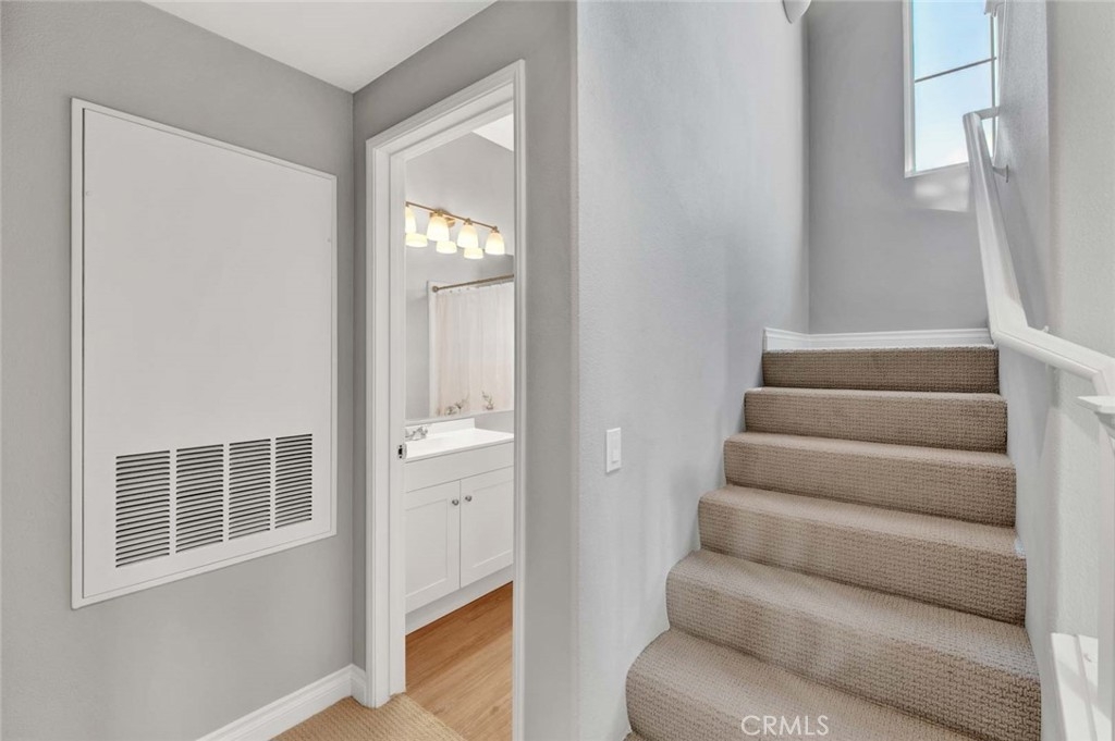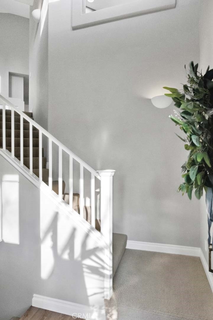 Welcome to the resort style community of Corte Melina. Adorable Tri level, 2 bedrooms (master bedroom on top Floor, 2nd bedroom on main floor) 2 baths, 1 car oversized attached garage with storage cabinets and handyman workbench/desk, double wide entertainers balcony with one side covered, vaulted ceiling, gorgeous community pool, spa and gym. Freshly painted interior Sherwin-Williams Accessible Beige & Whisper White, new light colored carpet, upgraded baseboards, luxury vinyl plank floors, brand new stainless steel appliances, fireplace, new switches and plugs, new lighting & more. Walk to shops, restaurants and more! Rancho Santa Margarita residents enjoy the beautiful RSM lake, beach club, 13 parks, playgrounds, community pools, sports courts, hiking and biking trails. Just a few minutes away from O’Neill Regional Park, nearby top rated schools and easy access to the 241 Foothill Transportation Corridor.