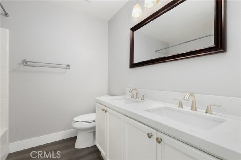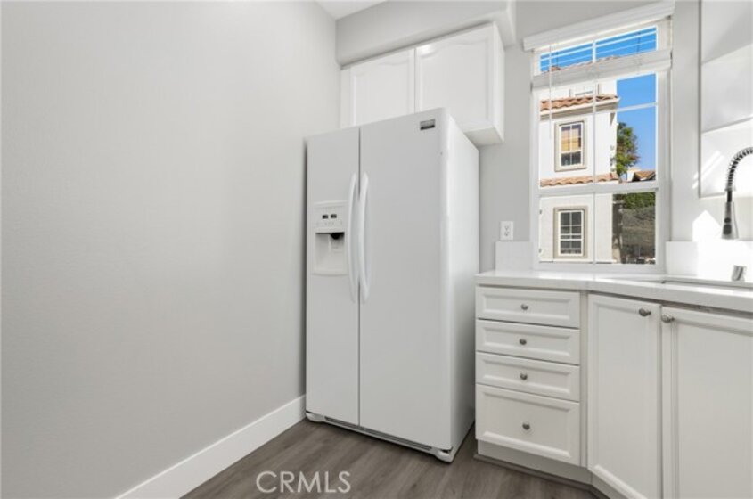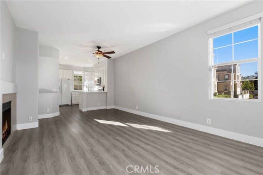 Welcome to this stunning corner-unit condo, perfectly situated in the highly sought-after, resort-style Corte Melina community in the heart of Rancho Santa Margarita. Flooded with natural light, the open and inviting floor plan features waterproof vinyl plank flooring, fresh paint, a cozy fireplace, and expansive windows that create a bright, airy atmosphere. The fully renovated kitchen is a true centerpiece, showcasing crisp white cabinetry, quartz countertops and backsplash, stainless steel appliances and sink, recessed lighting, and a charming garden window. Seamlessly connected to the dining and living areas, it’s perfect for entertaining or everyday living. An in-unit washer and dryer adds everyday convenience. The spacious master suite features a remodeled bathroom with a quartz double-sink vanity, a relaxing bathtub, and a private balcony. Additional highlights include a smart thermostat and direct access to the one-car garage. Enjoy low HOA fees and Mello Roos while taking advantage of premier community amenities, including a sparkling pool and spa, clubhouse, gym, dog park, scenic RSM Lake, Splash Park, Lago Santa Margarita, Beach Club Lagoon, sports courts, hiking and biking trails, and playgrounds. Located in the award-winning school district, this home offers exceptional value. Just minutes from O’Neill Regional Park, shopping, dining, and with easy access to the 241 Toll Road, this rare corner- unit condo is move-in ready and thoughtfully upgraded, combining elegance, comfort, and lifestyle. Schedule your private tour today to experience the finest in Rancho Santa Margarita living!