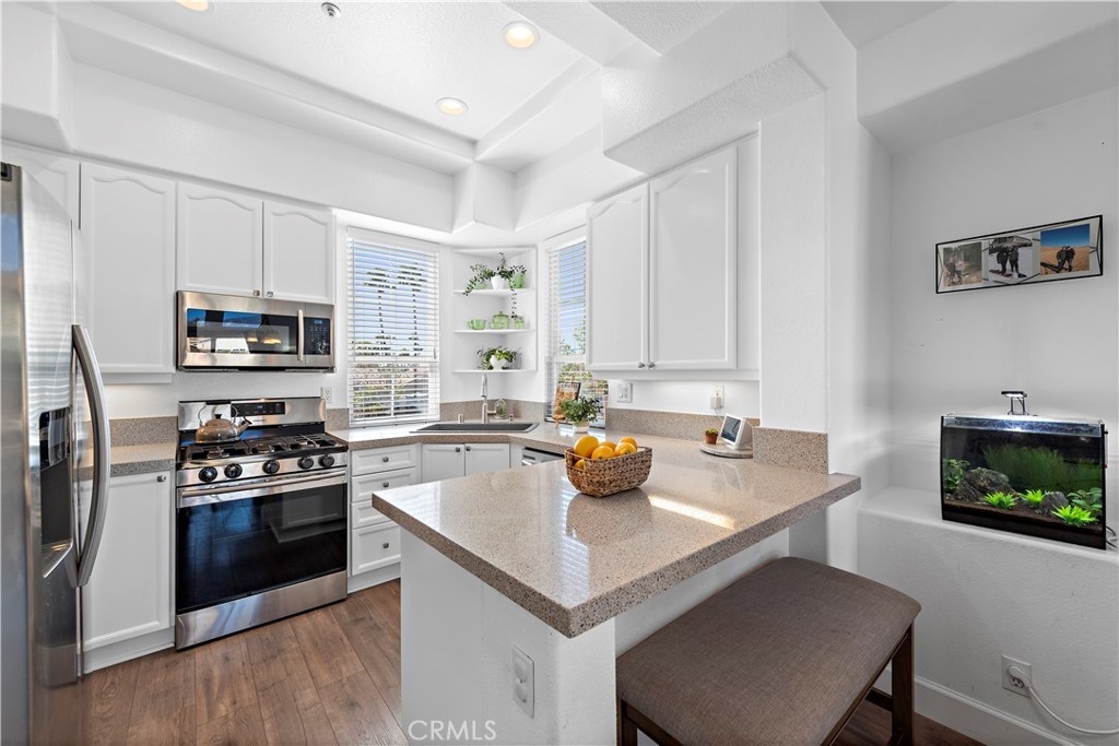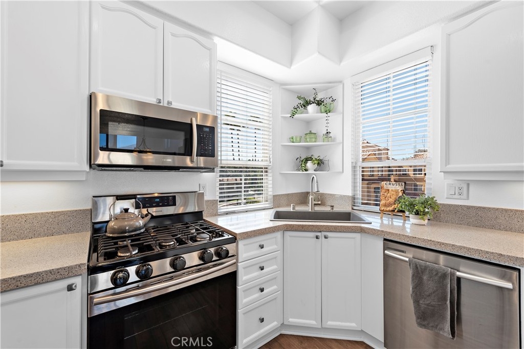 Location, Location, Location! Welcome To The RESORT STYLE COMMUNITY Of Corte Melina - Tri Level, 2 Bedrooms (Master Bedroom On Top Floor, 2nd Bedroom On Main Floor) 2 Baths, 2 Car Tandem Oversized Attached Garage With Laundry Area and plenty of space for 2 cars. View Balcony, Newly Updated Neutral Quartz Counters, White Cabinets, Stainless Steel Appliances, and Adjacent Dining Area with Chandelier. This Open Floorplan with High Ceilings is Light and Airy with Double Balconies and Gas Fireplace with Mosaic Tile Surround and Laminate Floors Throughout the Entire Home. On this Level is also the Secondary Bedroom with Mirrored Closet Doors and Remodeled Bath with New Modern Vanity and Tub/Shower Combo. Upstairs is the Master Suite with Walk-in Closet and Ensuite with Framed Mirrors, Dual Sink Vanity and Soaking Tub with Shower. This Fabulous Location is Walkable To Shops, Luxury Movie Theater, Restaurants And Local Schools! Rancho Santa Margarita Residents Enjoy access to RSM Lake, SAMLARC Beach Club, Parks, Playgrounds, Community Pools, and proximity to O’Neill Regional Park and Easy Access To the 241 and minutes from the 5 FWY. Welcome Home! www.viapamplona.com