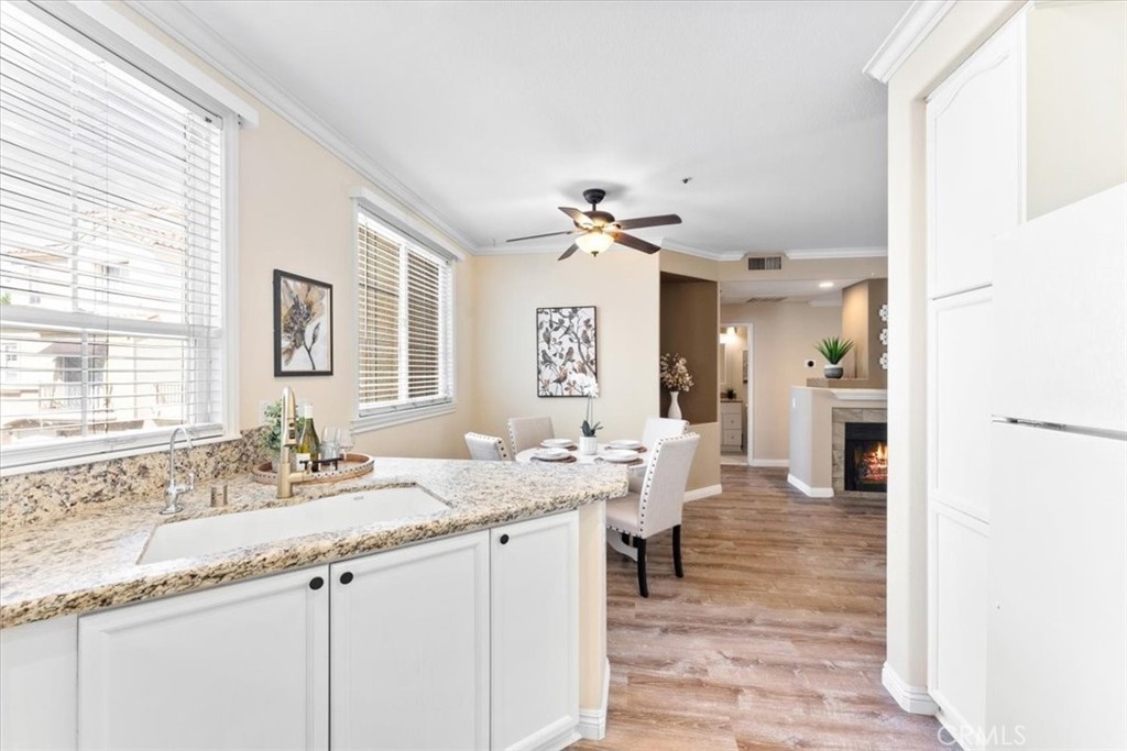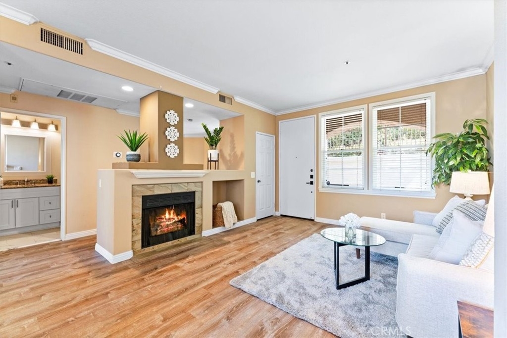 BACK ON MARKET! New HVAC! Buyer couldn’t perform! Welcome Home! This beautiful 2 BR 1 Ba home is located in the highly sought after community of Corte Melina. The open-concept plan has all the main living space on one level. You enter the front door to a family room and dining area with ample windows giving plenty of natural light and newer laminate flooring. Relax in the family room with a gas fireplace or enjoy your meal in the dining space. The kitchen boasts bright white cabinets and granite counter tops, including an eating or serving bar. Directly off the family room is a spacious master bedroom, mirrored wardrobes, and a private balcony. The bathroom has been remodeled tastefully with glass shower doors and new flooring. Downstairs, choose this room as an office or extra bedroom with interior full-size laundry. You cannot beat the location within walking distance to shopping, restaurants, parks, trails and more. Residents of RSM enjoy access to the Lake, Parks, Playgrounds and the SAMLARC Beach Club. Each access to 241 and 5 freeway.