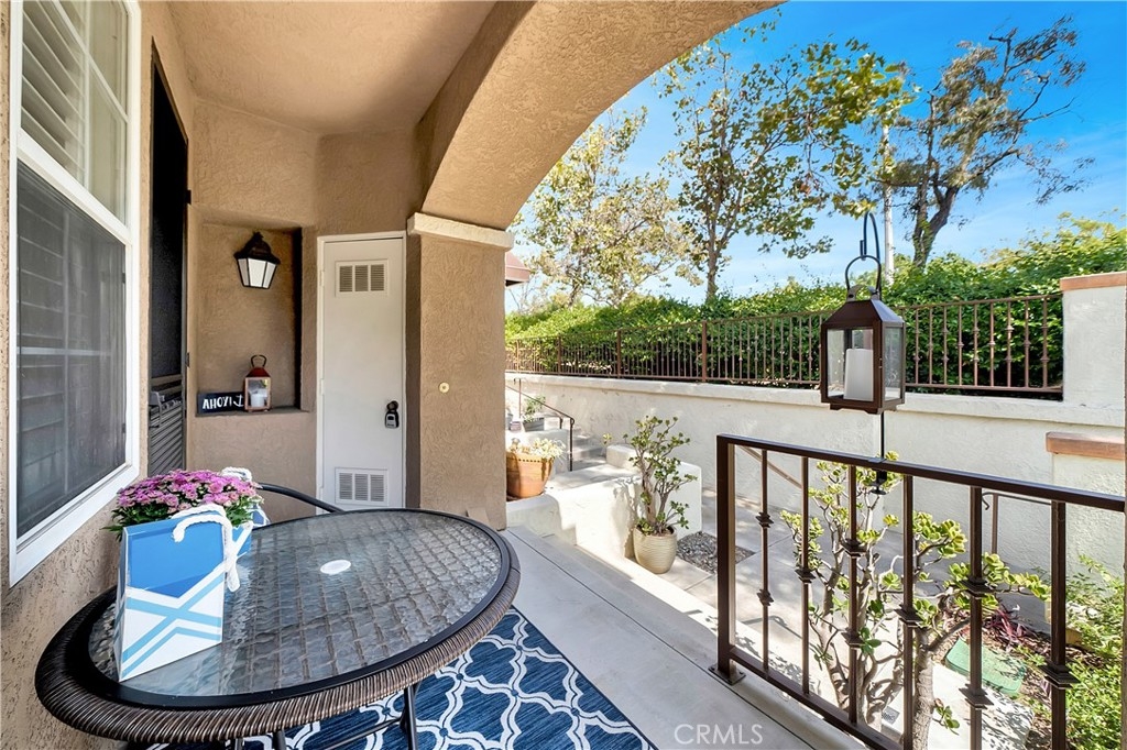 Welcome Home to this Beautiful and Pristine Home! It has been newly painted and upgraded just for you. Located in the highly sought after and well maintained community of Corte Melina. This well appointed end unit has all the main living space on one level. It has a cozy covered front porch, 1 car attached garage, balcony off the master bedroom, fireplace, interior full size laundry, high ceilings, open floor plan with ample windows for natural light all year round, resort style community pool, spa, gym and designated dog area. Located in the heart of Rancho Santa Margarita. You are within walking distance to shopping, restaurants, parks and trails and much more. Rancho Santa Margarita residents enjoy RSM Lake, community parks, playgrounds, and community events throughout the year. This is a must see. The location cannot be beat. This home is move-in ready and waiting for you!!