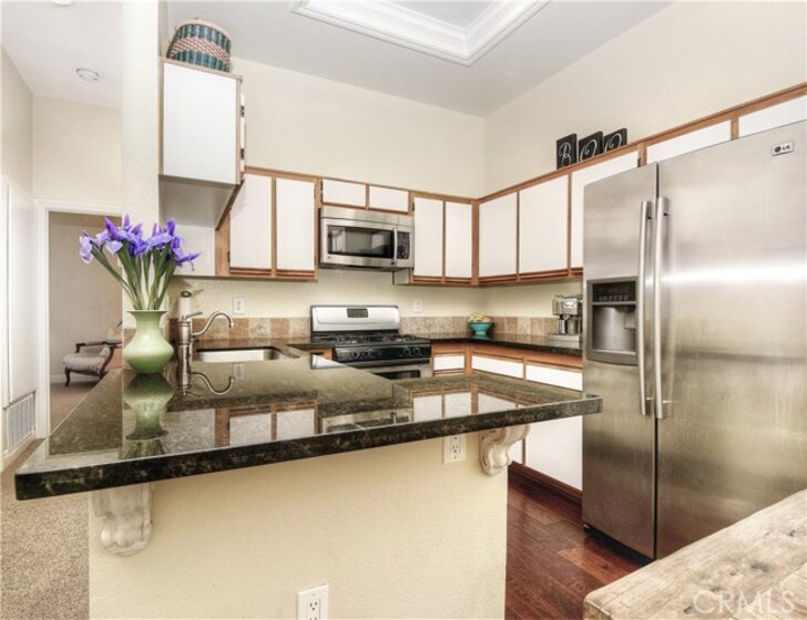 This two bedroom, two bath condo is a great find! Updated master suite with walk-closet, granite kitchen counters and newer tile flooring, plenty of storage, stone-framed gas fireplace in living room, plantation shutters throughout, large private patio; direct access garage with gleaming epoxy flooring! Facing the greenbelt, this home is one of the best locations in the community and just a short walk to the community pool and spa, and park. Enjoy The Beach Club, the beautiful RSM Lake, hiking, biking, tennis, and mountain views. Convenient to shopping and dining. Turn-key and move-in ready!