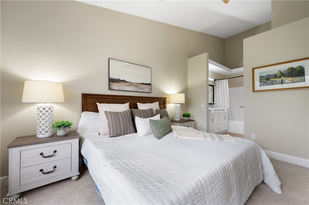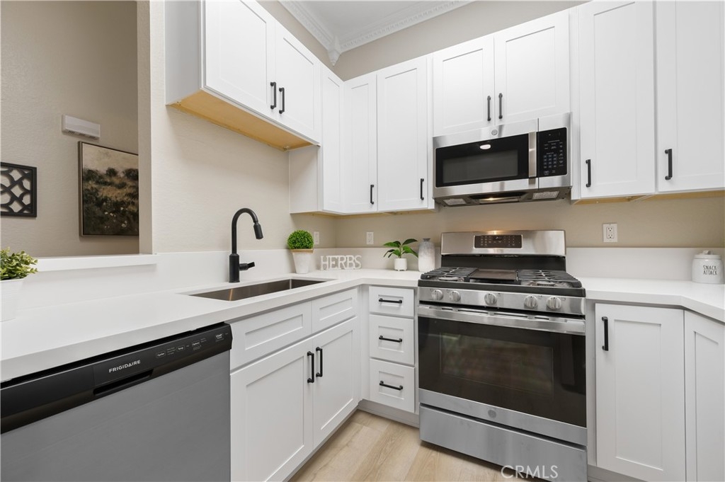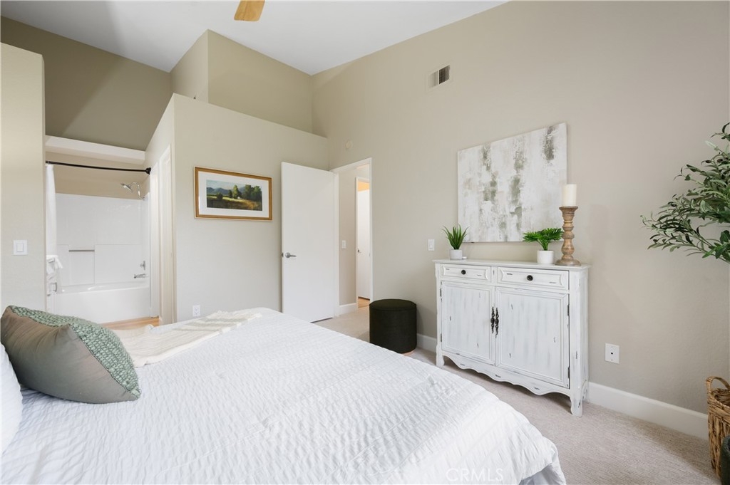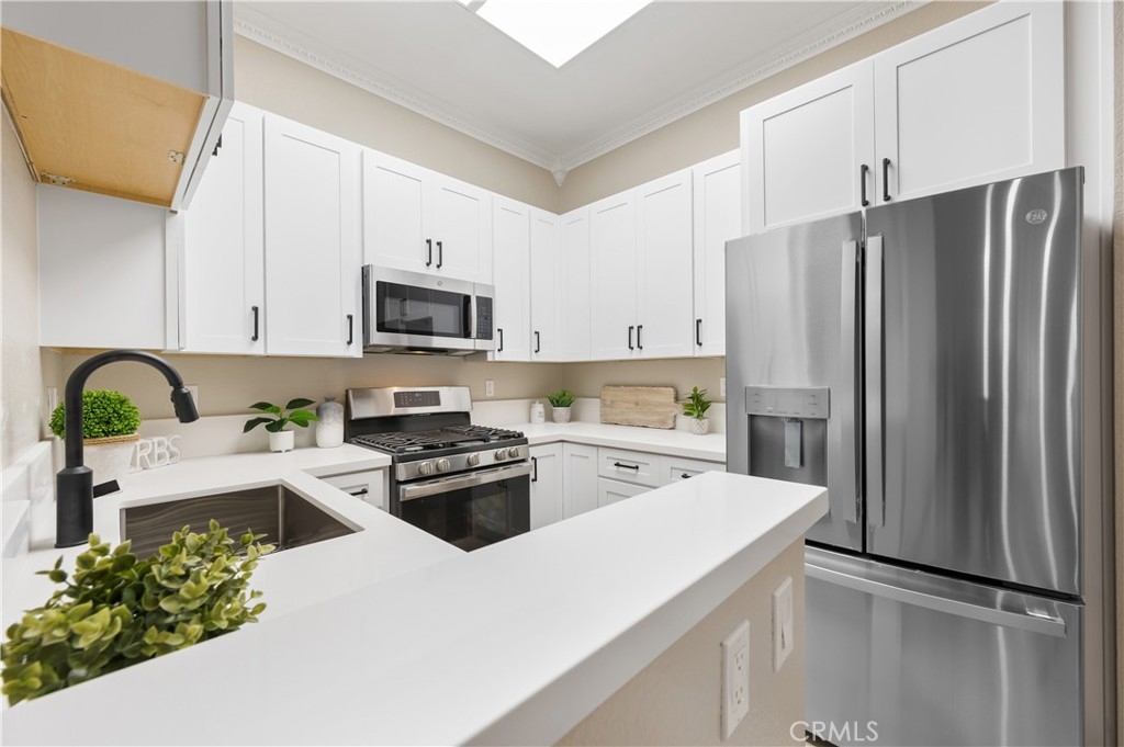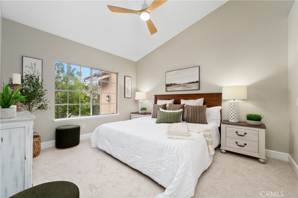 Welcome to this beautifully remodeled and renovated condo in the sought-after area of Rancho Santa Margarita. Every inch of this stunning property has been thoughtfully upgraded from the ground up to offer a modern and comfortable living experience. Walk upstairs to this upper unit, pass through the spacious patio overlooking the greenbelt, and step inside to be greeted by vaulted ceilings offering a feeling of more space and brand new carpeting in the common living areas, providing a fresh and contemporary experience. The kitchen and both bathrooms have been upgraded with new luxury vinyl plank flooring, combining durability with elegance. The heart of this condo is its fully remodeled kitchen. Equipped with new white shaker cabinets and quartz countertops, it exudes sophistication and style. The kitchen is also outfitted with new appliances, catering to all your culinary needs. The entire condo is illuminated with new dimmable recessed lighting, allowing you to create the perfect ambiance for any occasion. Complementing this is the brand new paint throughout, giving the space a bright and airy feel. Both the secondary and primary bathrooms have been refreshed with new flooring and new toilets. This condo is not just about aesthetics; it also offers practicality with ample storage space and a layout that maximizes the use of every square foot. And what sets this 2 bedroom condo apart from the others is a direct access single car garage. Simply exit the living room to ascend down to your spacious garage where your laundry hook ups are also found. Situated in a desirable Rancho Santa Margarita neighborhood, this condo is an ideal choice for anyone seeking a turn-key property that combines modern living with convenience. It's a rare opportunity to own a fully upgraded home in this vibrant community that offers 4 Olympic size swimming pools, tennis courts, basketball courts, splash pad, and parks and hiking trails. Don't miss out on the chance to make this stunning, upgraded condo your own, combining comfort, style, and the allure of lakeside living in the heart of Rancho Santa Margarita.