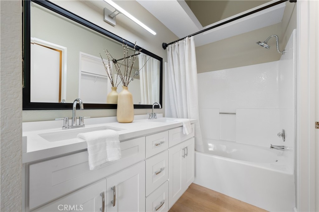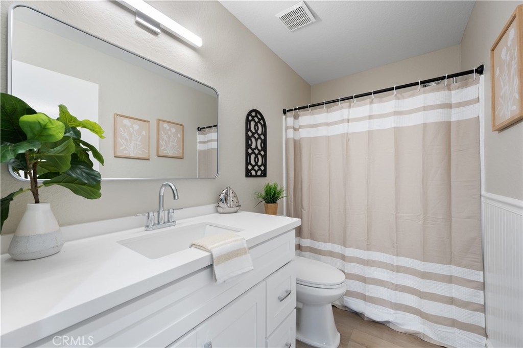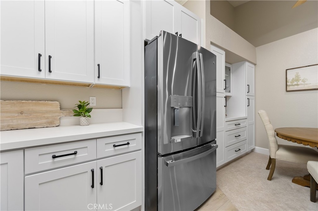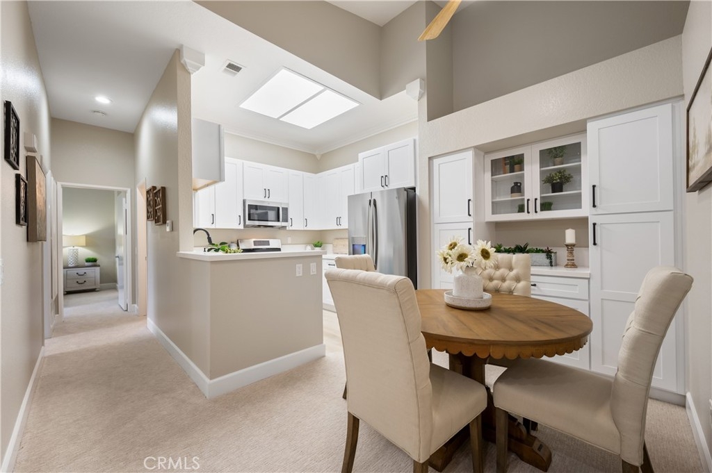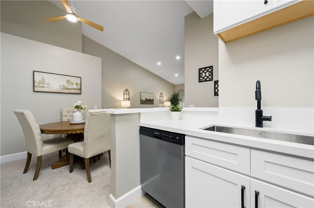 Welcome to this beautifully remodeled and renovated condo in the sought-after area of Rancho Santa Margarita. Every inch of this stunning property has been thoughtfully upgraded from the ground up to offer a modern and comfortable living experience. Walk upstairs to this upper unit, pass through the spacious patio overlooking the greenbelt, and step inside to be greeted by vaulted ceilings offering a feeling of more space and brand new carpeting in the common living areas, providing a fresh and contemporary experience. The kitchen and both bathrooms have been upgraded with new luxury vinyl plank flooring, combining durability with elegance. The heart of this condo is its fully remodeled kitchen. Equipped with new white shaker cabinets and quartz countertops, it exudes sophistication and style. The kitchen is also outfitted with new appliances, catering to all your culinary needs. The entire condo is illuminated with new dimmable recessed lighting, allowing you to create the perfect ambiance for any occasion. Complementing this is the brand new paint throughout, giving the space a bright and airy feel. Both the secondary and primary bathrooms have been refreshed with new flooring and new toilets. This condo is not just about aesthetics; it also offers practicality with ample storage space and a layout that maximizes the use of every square foot. And what sets this 2 bedroom condo apart from the others is a direct access single car garage. Simply exit the living room to ascend down to your spacious garage where your laundry hook ups are also found. Situated in a desirable Rancho Santa Margarita neighborhood, this condo is an ideal choice for anyone seeking a turn-key property that combines modern living with convenience. It's a rare opportunity to own a fully upgraded home in this vibrant community that offers 4 Olympic size swimming pools, tennis courts, basketball courts, splash pad, and parks and hiking trails. Don't miss out on the chance to make this stunning, upgraded condo your own, combining comfort, style, and the allure of lakeside living in the heart of Rancho Santa Margarita.