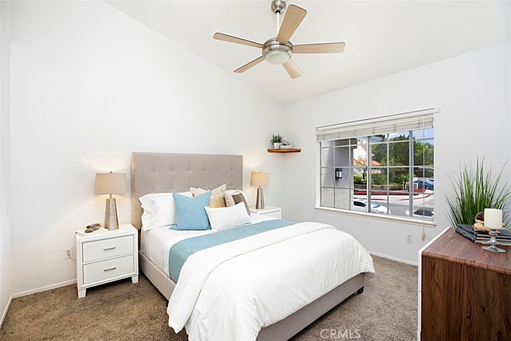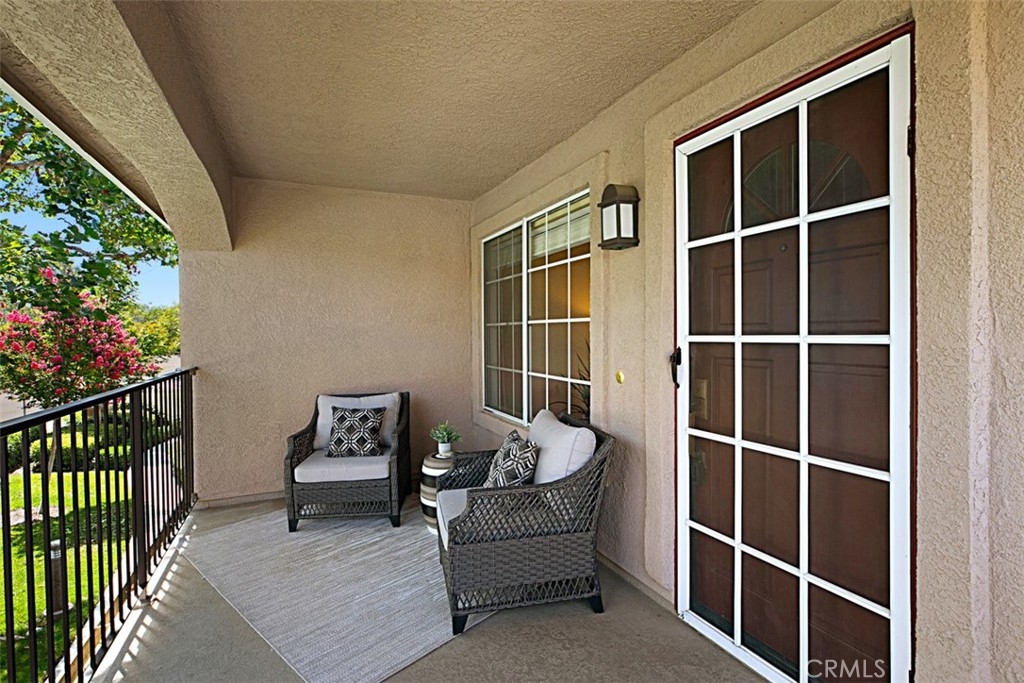 You will be so pleased when you open the door to this property. It is just the place you have been waiting for! This charming 2 bedroom, 2 bath condo is located in the heart of Rancho Santa Margarita where you can enjoy the many recreation centers, lake with fishing and boating, pools, spas, tennis, parks, hiking and biking trails, and so much more. Shopping, restaurants and movies nearby. Great view from the large entry deck which is perfect for BBQ’s. Mountain view from both bedrooms and deck. This property has a romantic fireplace in the living room. High vaulted ceilings, upstairs unit, very bright and sunny. Refrigerator, washer and dryer are included. There is an attached garage with direct access. Play area at end of cul-de-sac Don’t miss this great opportunity.
