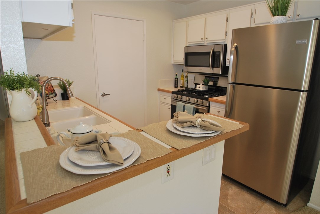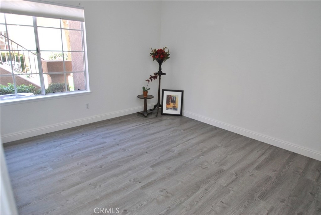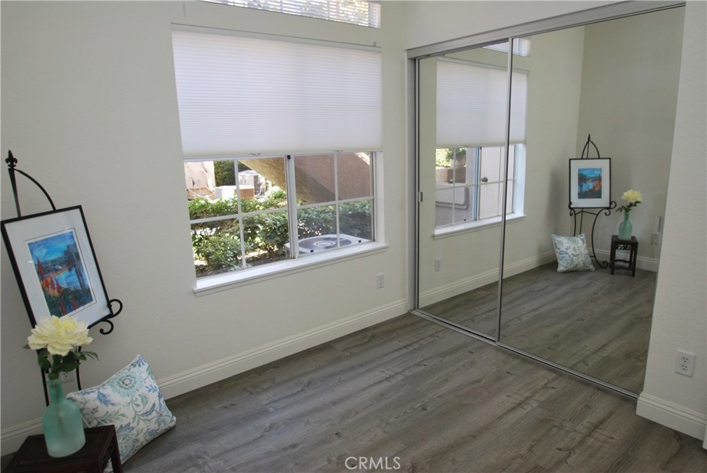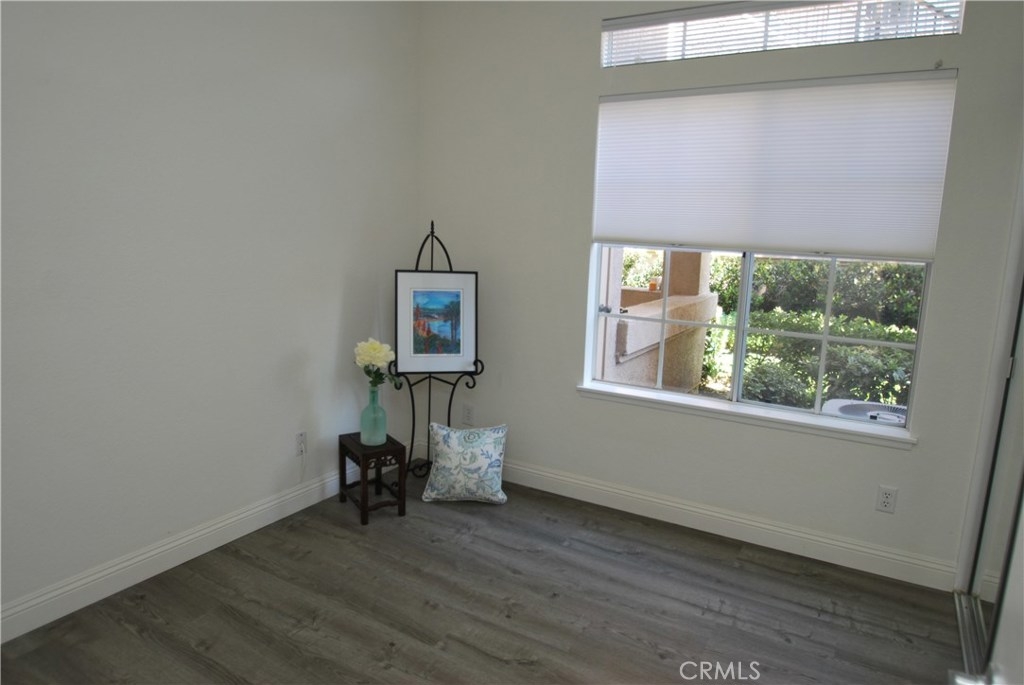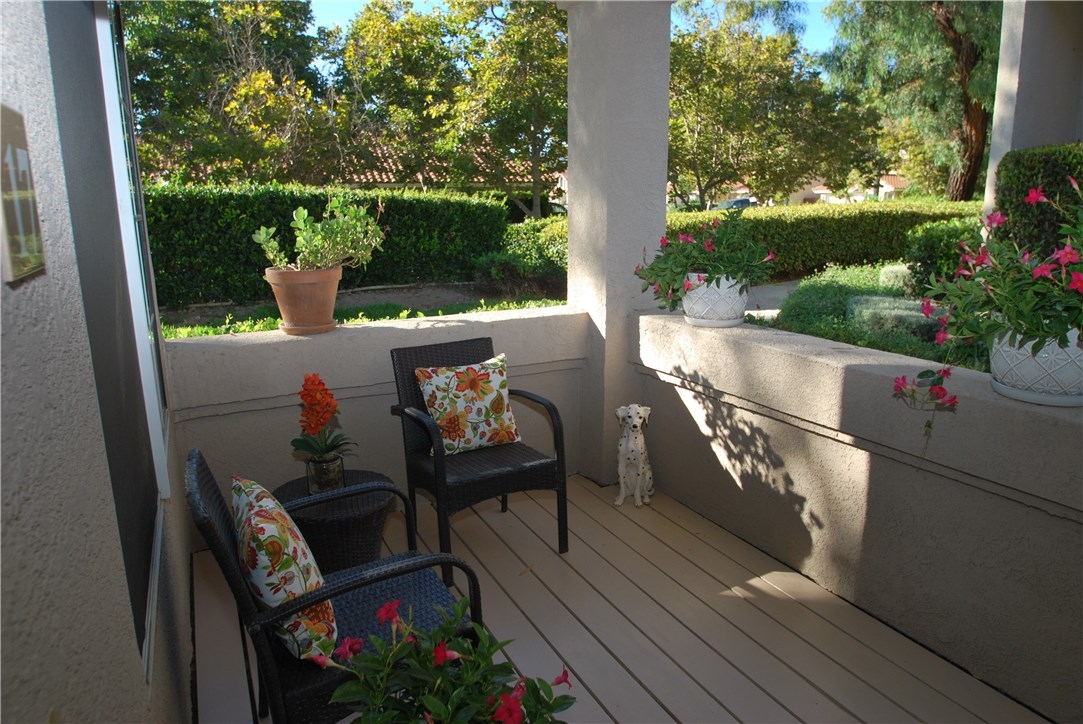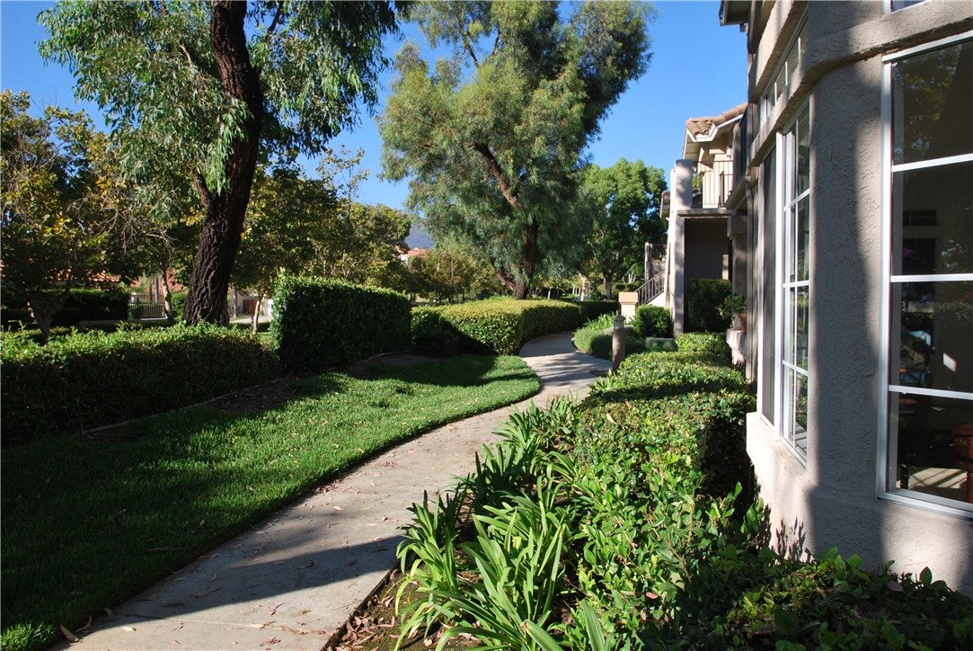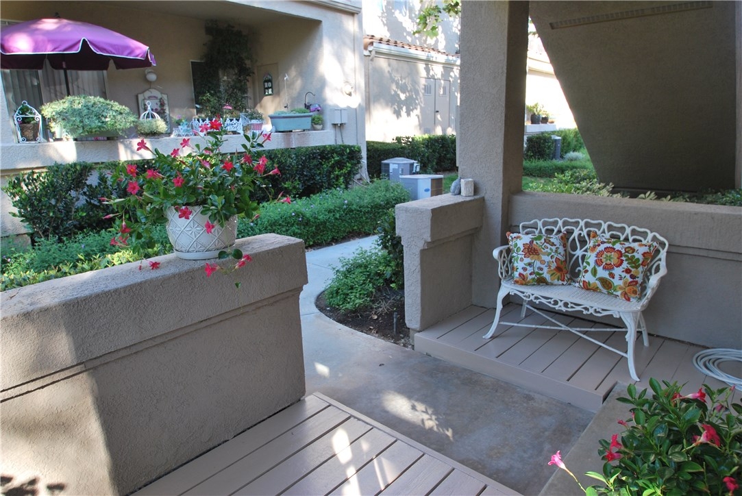 Brand New Luxury Vinyl planked flooring. No more carpet. First Time Buyers or Empty Nesters Look No Further! Turnkey End Unit located in the Belflora Community. Centrally located in Rancho Santa Margarita. Walk only a few minutes to schools, restaurants, library, shopping and to the Lake. Many amenities to enjoy such as a resort like pool/spa, BBQ area, greenbelts and playground. This lower level unit is only on one level, no stairs to climb. Wonderful enclosed front patio over looking a greenbelt. Very quiet and private location. There is a single car garage and a guest parking space. New interior paint, all new faucets, hardware, blinds, pleated shades, screens, all new lighting fixtures (dining room chandelier, recessed lights in kitchen and hallway, and bathroom light fixtures) as well as a new vanity and glass shower door in master bathroom. Kitchen has lots of storage and newer SS appliances. Individual Laundry Room inside. Washer, dryer and refrigerator are included. Beautiful view of the greenbelt and steps away from a path that leads you to the lake as well as to a play area nearby. Prime location in Belflora. This is one not to miss. MOVE IN READY!!