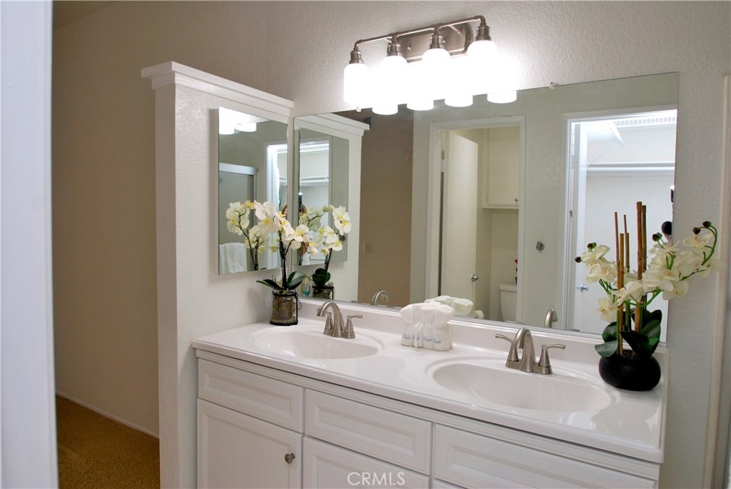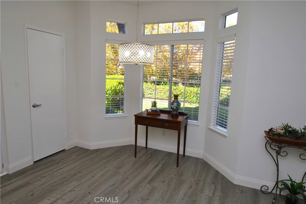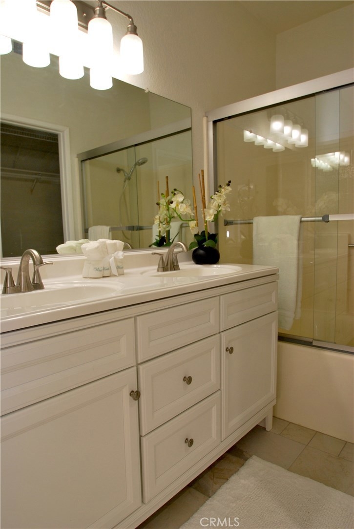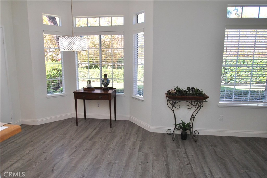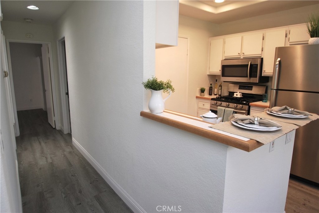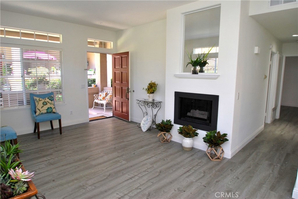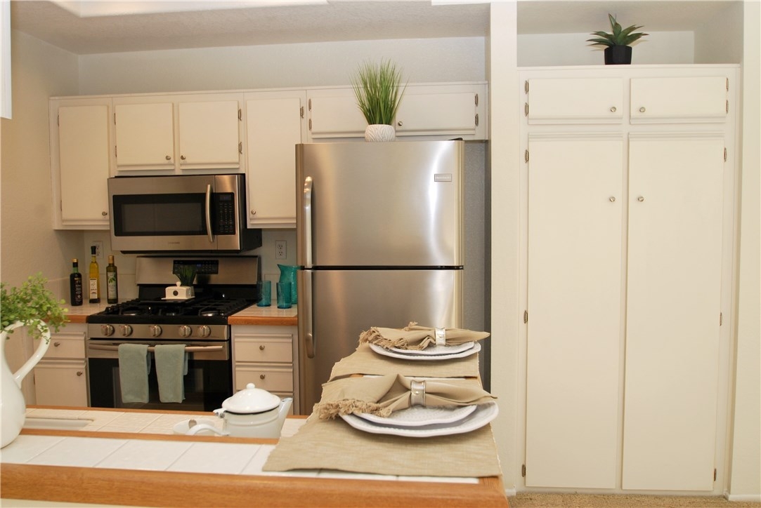 Brand New Luxury Vinyl planked flooring. No more carpet. First Time Buyers or Empty Nesters Look No Further! Turnkey End Unit located in the Belflora Community. Centrally located in Rancho Santa Margarita. Walk only a few minutes to schools, restaurants, library, shopping and to the Lake. Many amenities to enjoy such as a resort like pool/spa, BBQ area, greenbelts and playground. This lower level unit is only on one level, no stairs to climb. Wonderful enclosed front patio over looking a greenbelt. Very quiet and private location. There is a single car garage and a guest parking space. New interior paint, all new faucets, hardware, blinds, pleated shades, screens, all new lighting fixtures (dining room chandelier, recessed lights in kitchen and hallway, and bathroom light fixtures) as well as a new vanity and glass shower door in master bathroom. Kitchen has lots of storage and newer SS appliances. Individual Laundry Room inside. Washer, dryer and refrigerator are included. Beautiful view of the greenbelt and steps away from a path that leads you to the lake as well as to a play area nearby. Prime location in Belflora. This is one not to miss. MOVE IN READY!!