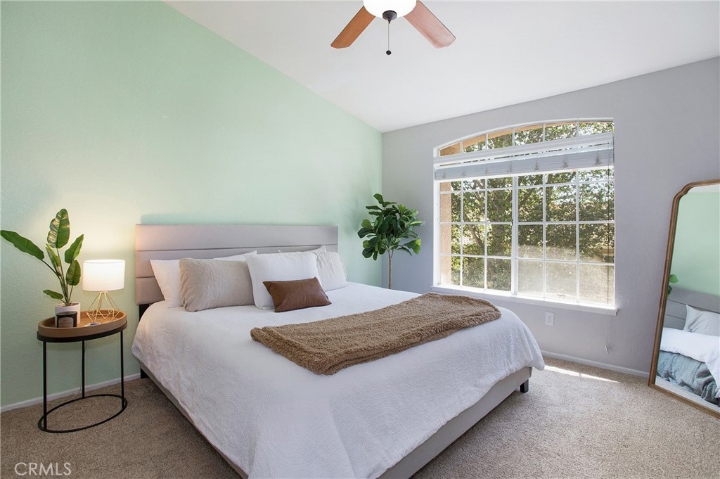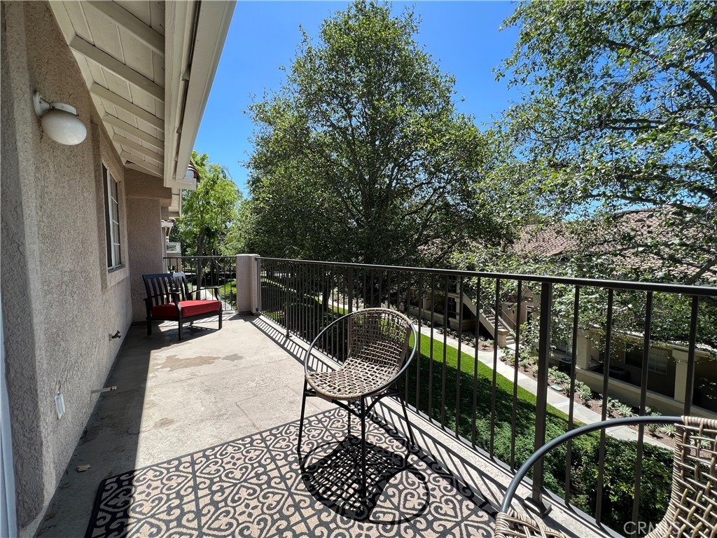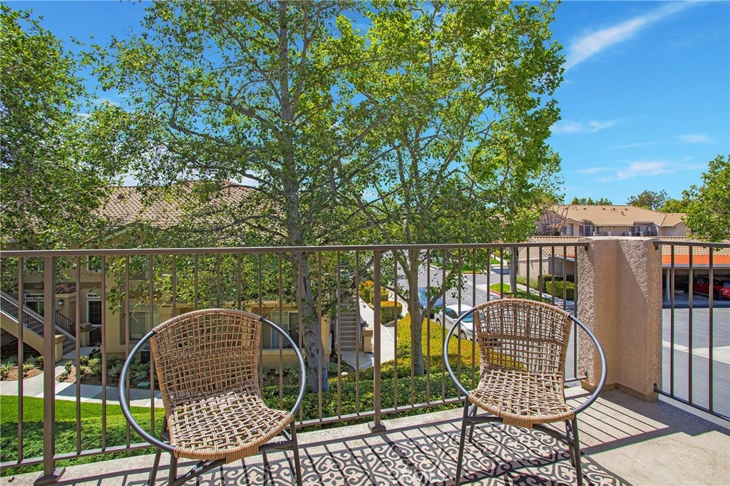 Welcome to 19 Carmesi! This adorable 2 bedroom, 2 full bath upstairs unit is nestled in the popular Belfora complex in the heart of Rancho Santa Margarita. Boasting an open concept, vaulted ceilings in each room and large bedrooms and baths, this home will not disappoint. You are greeted with a nice front patio area with views of the community pool. Step inside to a customized fireplace that is the showpiece of the large family room. A private patio provides plenty of privacy as its surrounded by mature trees..the perfect place to relax outside. The Family room opens to a dining area accented with wainscoting. The adjacent kitchen has white cabinetry, gas stove and plenty of counter and cabinet space. The spacious master suite and en-suite bath has dual sinks and a walk in closet. The expansive secondary bedroom has another full bath with dual vanity. This home has DIECT ACCESS garage for convenience and full size washer and dryer. Ideally located close to pool, spa, playground and amenities. Homeowners enjoy a membership to the Santa Margarita Lake Beach Club featuring a swim beach, paddle boats, fishing, parks, picnic tables, barbecues as well as other city association amenities including basketball courts, tennis courts, volleyball courts and several Olympic size pools. Conveniently located within walking distance to shopping, local restaurants, schools, hiking/biking trails, RSM lake and 241 toll road access.