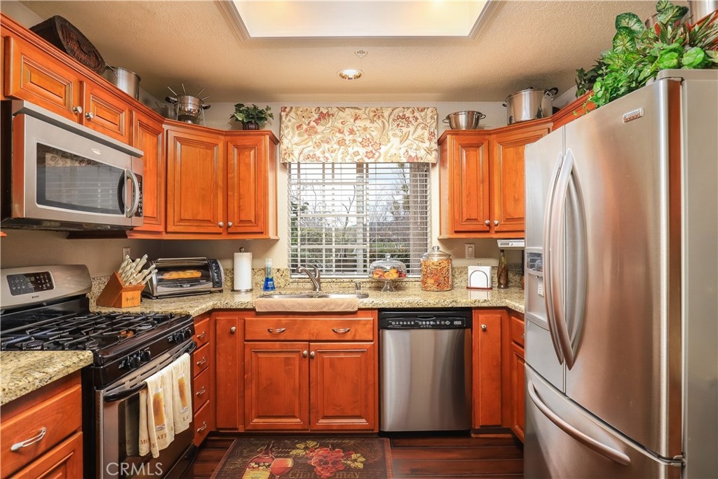 Welcome Home! This beautifully upgraded Condo is minutes from the Association Amenities, such as the Pool, Clubhouse, Tennis Courts, Basketball Court, Park and Tot Lot; not to mention walking distance to RSM Lake, Shops and Restaurants. This Lower Level Unit features 2 Bedrooms, 2 Bathrooms, 1 Car Detached Garage + 1 Additional Permitted Parking Space, Dark Luxurious Laminate Wood Flooring, Custom Paint throughout, a gorgeous kitchen with Granite Countertops and hand crafted cabinetry, including pull out drawers for easy access to items in the cabinets. The spacious Master Bedroom features an on-suite bathroom with dual sinks, a shower, soaking tub and a walk in closet. The enclosed patio is perfect for grilling, or enjoying a glass of wine at sunset. This corner unit is very private and receives hardly any foot traffic. The Refrigerator, Bistro Table on the Patio and Curtains are included in the sale. It is truly a must see property.