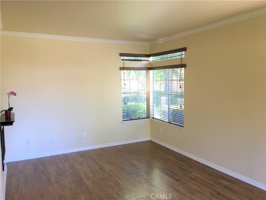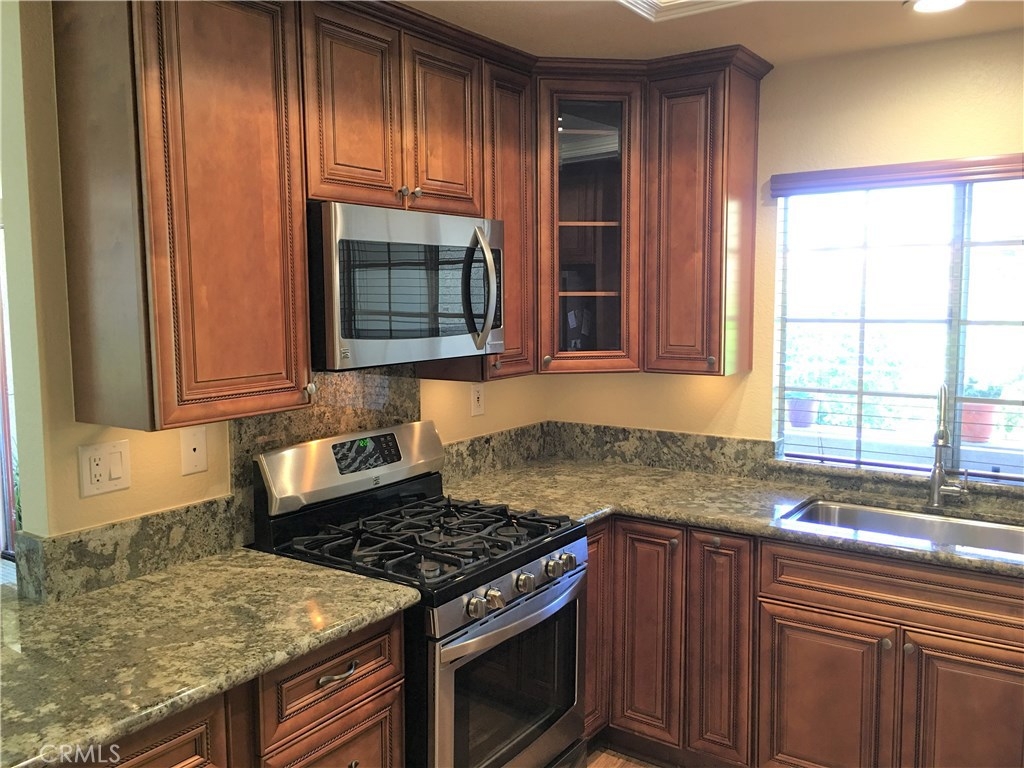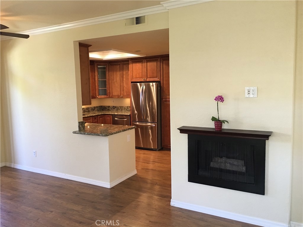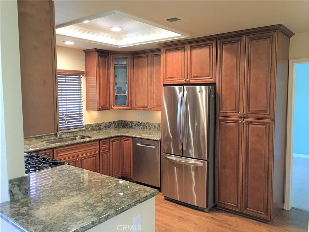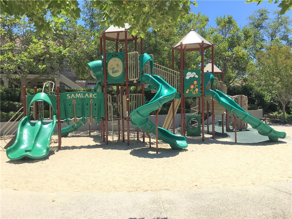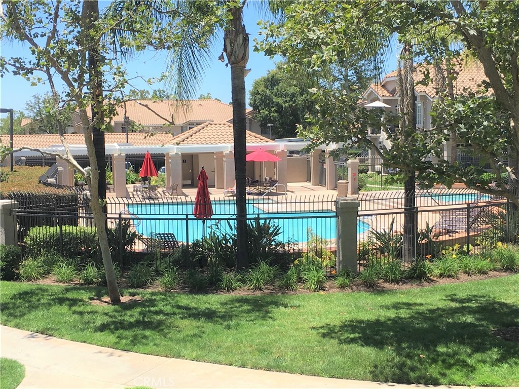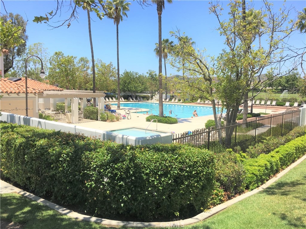 LARGE PRICE REDUCTION!! FABULOUS LOWER LEVEL END UNIT IN VERY PRIVATE LOCATION! Popular 2 bedroom 2 full bath model in a quiet location with view overlooking Monte Vista Park. Floor plan features good sized living room with fireplace, formal dining area, kitchen with breakfast bar, blinds on all windows, inside laundry with full size washer and dryer, 2 big bedrooms with newer carpet. Newer interior paint, laminate wood flooring, crown molding. Completely remodeled kitchen has plenty of pantry space, lots of custom storage cabinets, stainless appliances, including refrigerator and new Bosch dishwasher. Relaxing front patio to enjoy the ambiance and BBQ, storage closet. Unit includes a single detached garage with roll up door and one unassigned parking space. Located very close to Rancho Santa Margarita Lake plus local association has pool, tennis and tot lot. This property is a must see!