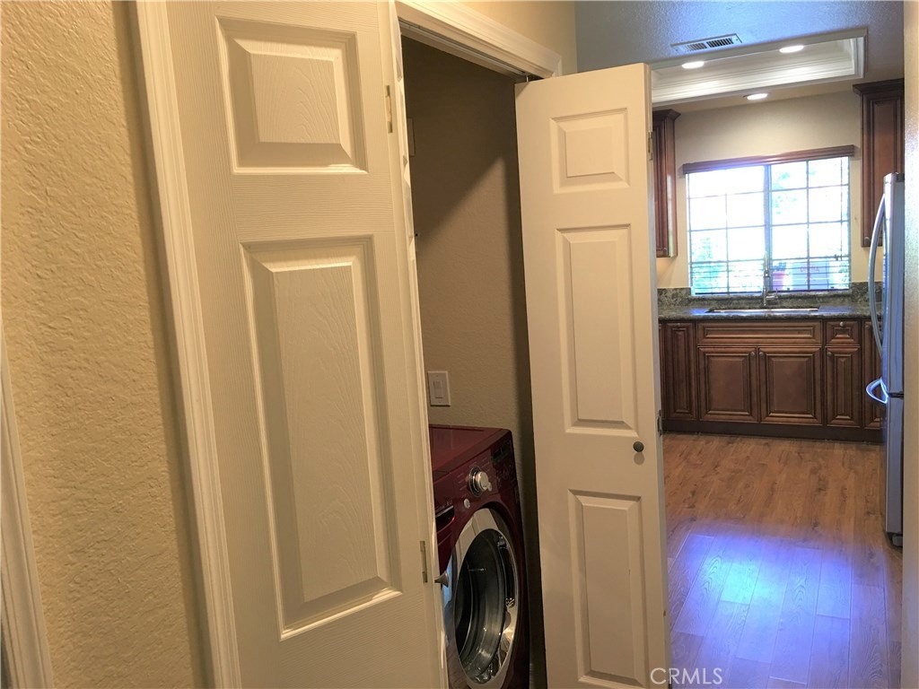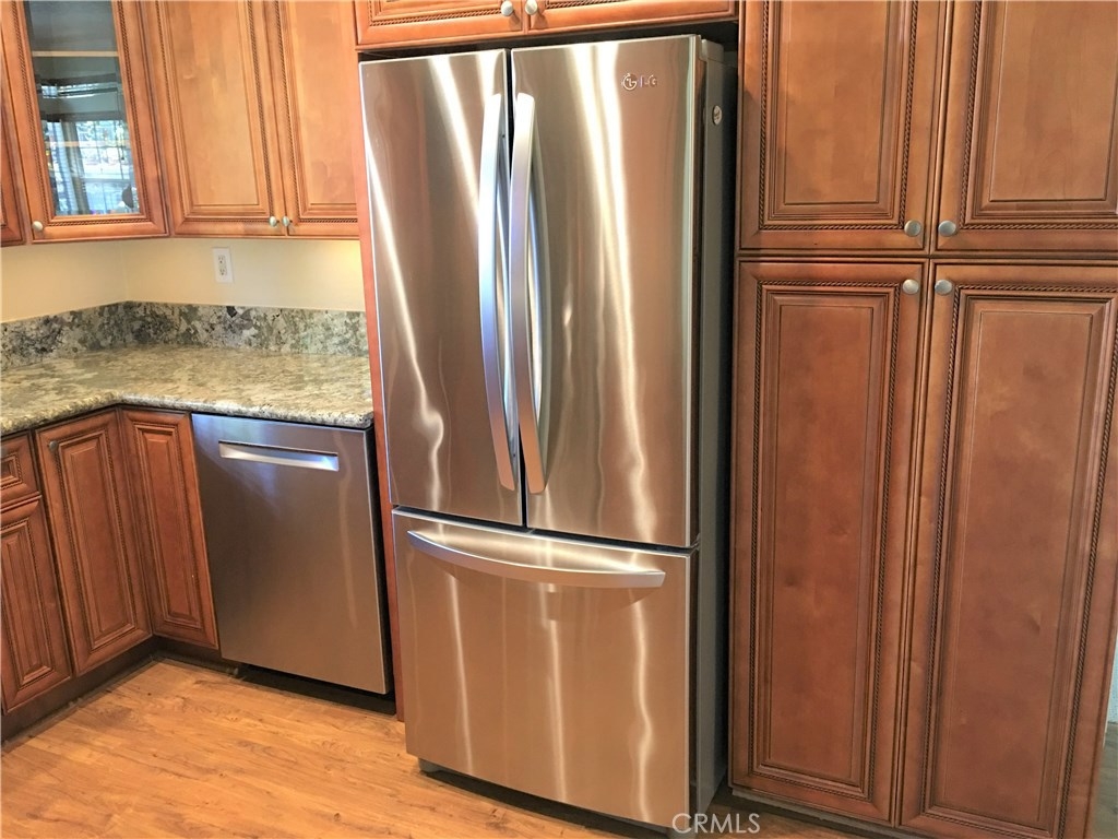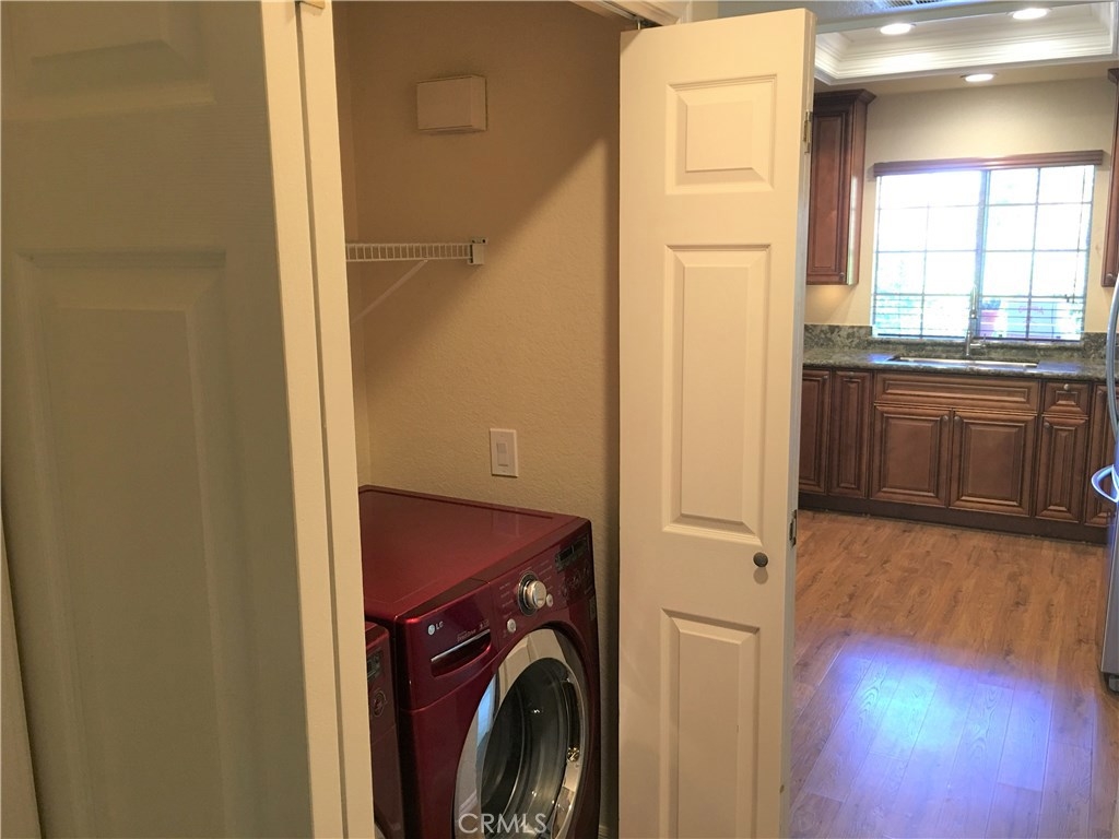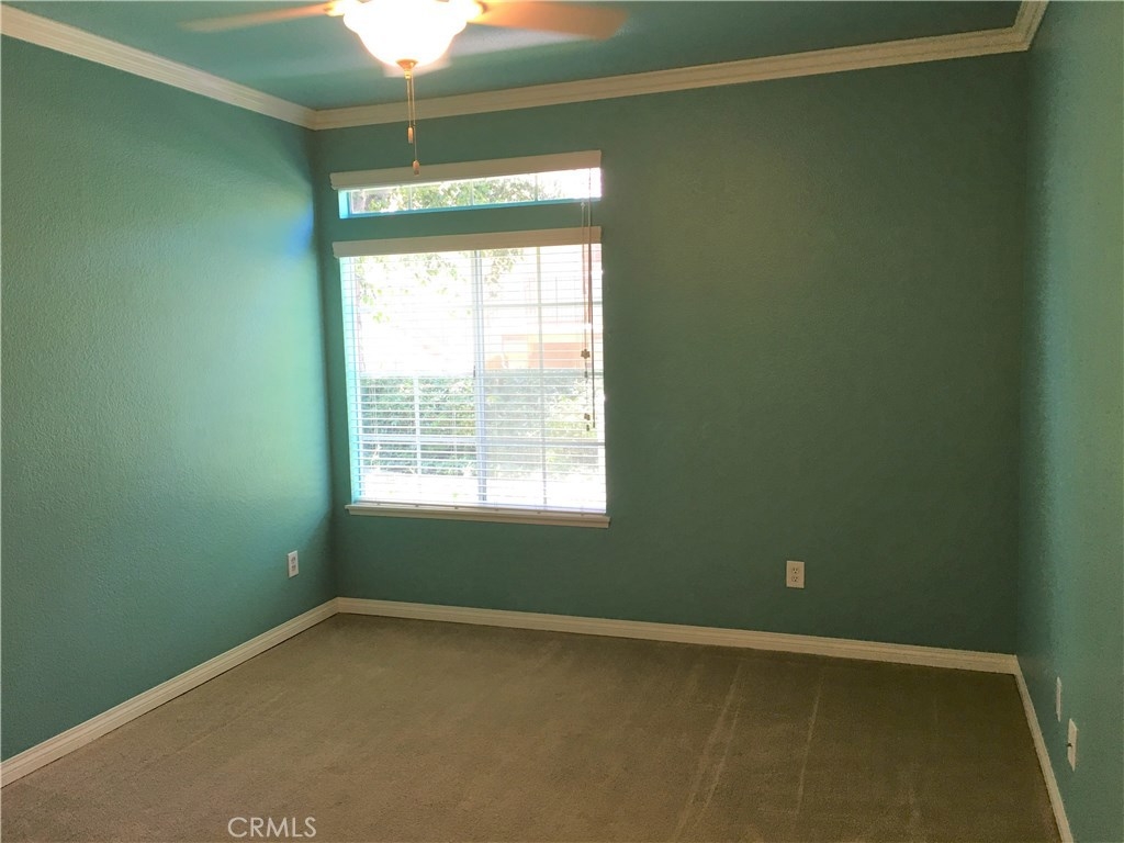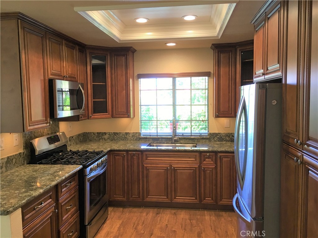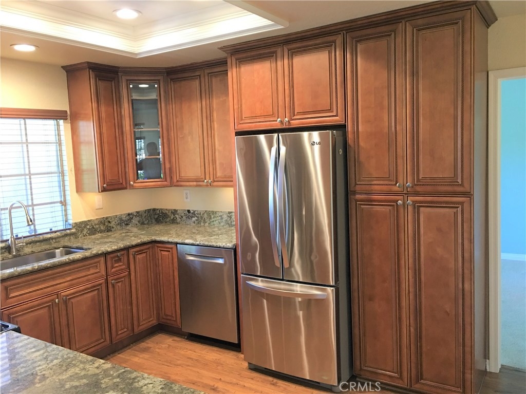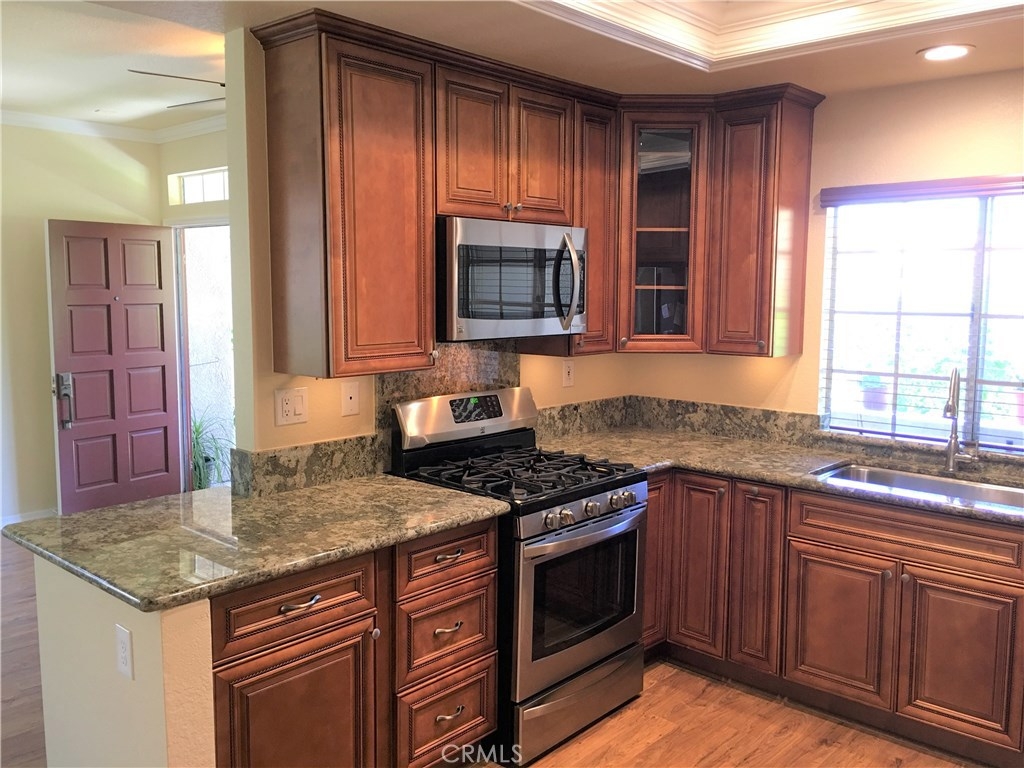 LARGE PRICE REDUCTION!! FABULOUS LOWER LEVEL END UNIT IN VERY PRIVATE LOCATION! Popular 2 bedroom 2 full bath model in a quiet location with view overlooking Monte Vista Park. Floor plan features good sized living room with fireplace, formal dining area, kitchen with breakfast bar, blinds on all windows, inside laundry with full size washer and dryer, 2 big bedrooms with newer carpet. Newer interior paint, laminate wood flooring, crown molding. Completely remodeled kitchen has plenty of pantry space, lots of custom storage cabinets, stainless appliances, including refrigerator and new Bosch dishwasher. Relaxing front patio to enjoy the ambiance and BBQ, storage closet. Unit includes a single detached garage with roll up door and one unassigned parking space. Located very close to Rancho Santa Margarita Lake plus local association has pool, tennis and tot lot. This property is a must see!