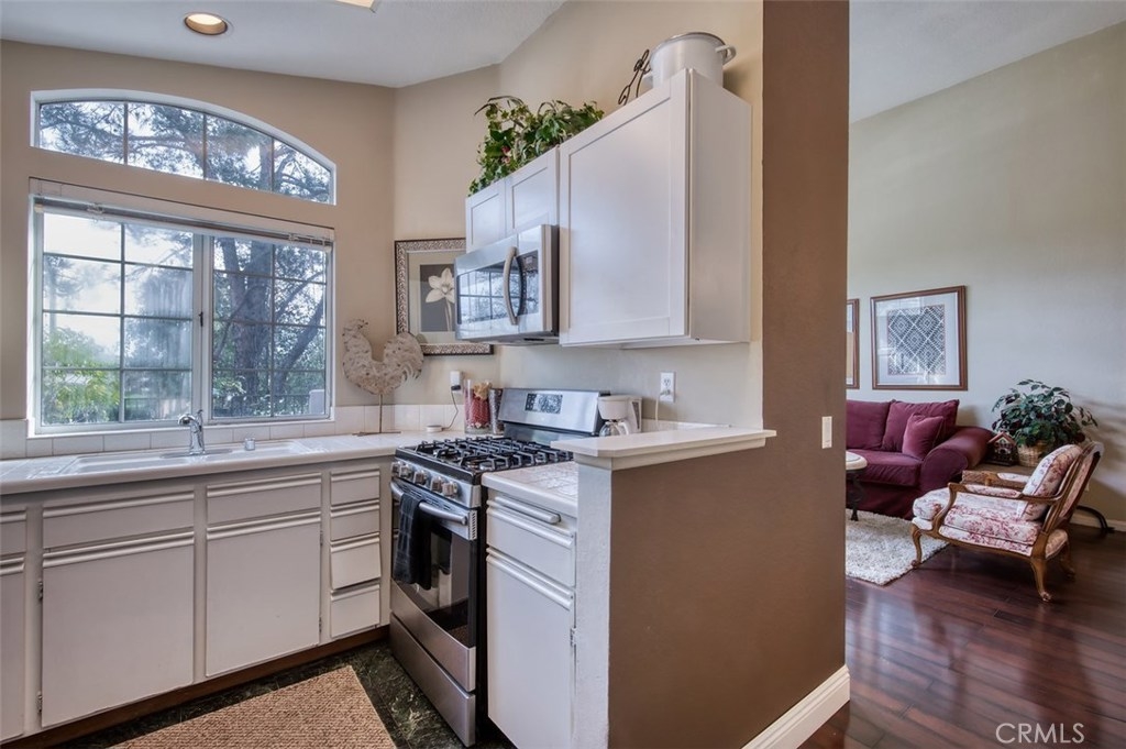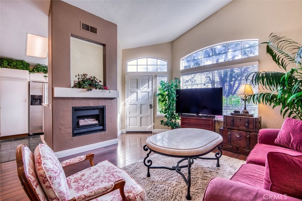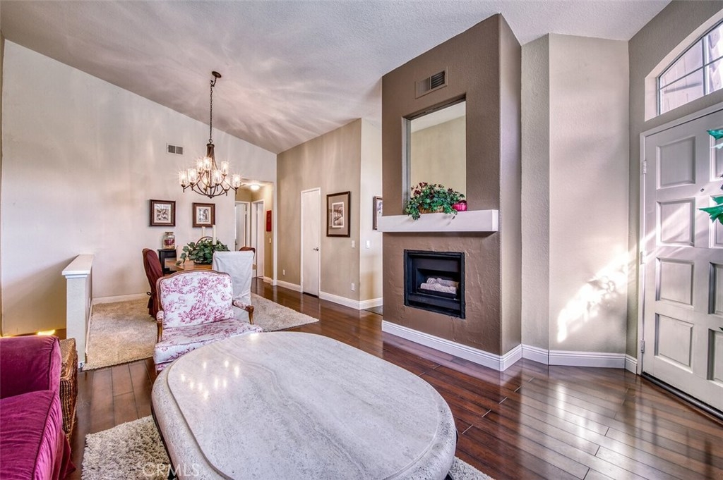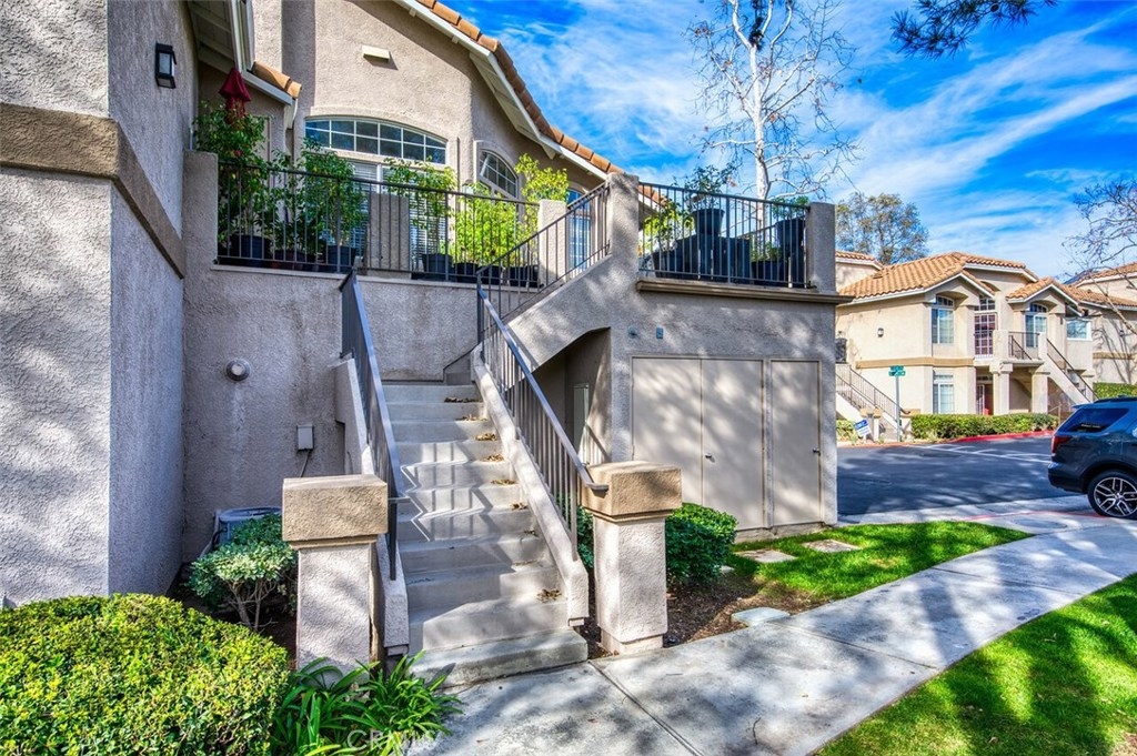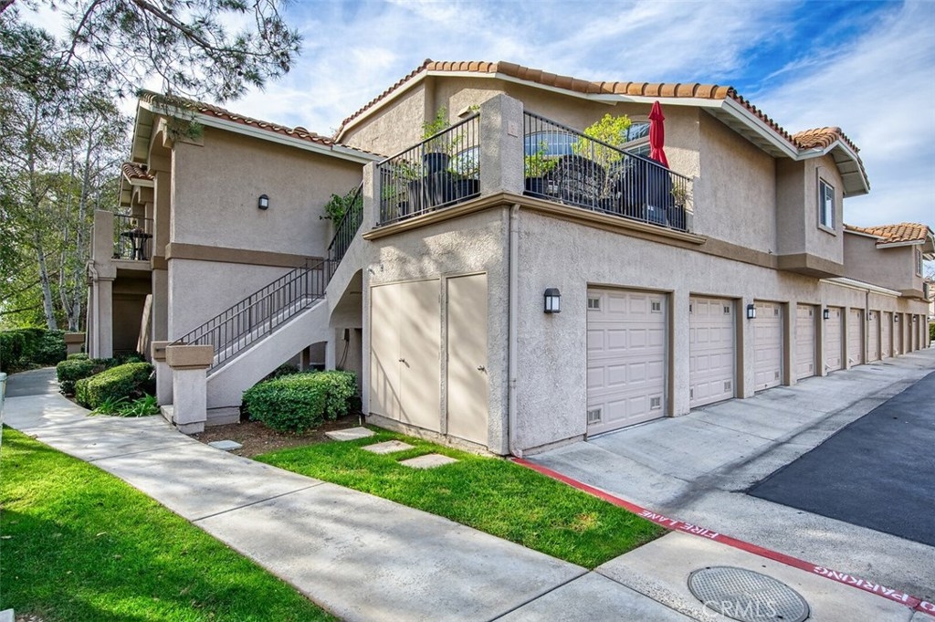 Welcome to the community of Belfora! This is the finest and largest floor plan in the community. "This is a Carriage Unit with No One Above Or Below". Featuring 2 bedrooms, 2 FULL baths, indoor laundry, attached garage and the largest patio. This beautiful home has vaulted ceilings, wood laminate flooring with tile flooring in the kitchen. This sought-after floor plan features a fireplace in the living room which is open to the dining area. When you enter the spacious and private master bedroom (thru double doors) you are greeted with high ceilings, en-suite master bathroom which includes vanity, duel sinks, shower, large oval tub and walk in closet. Belflora Community is a highly sought-after community, with an award-winning school district! And just a short walking distance to community features that include the Rancho Santa Margarita Lake, Beach Club, basketball and tennis courts, walking / hiking trails, wonderful restaurants and shopping districts. Belflora owners have access to a beautiful heated pool & spa and a spacious picnic area with tables and BBQ’s; “perfect for family gatherings and for entertaining friends” and a kid’s playground.