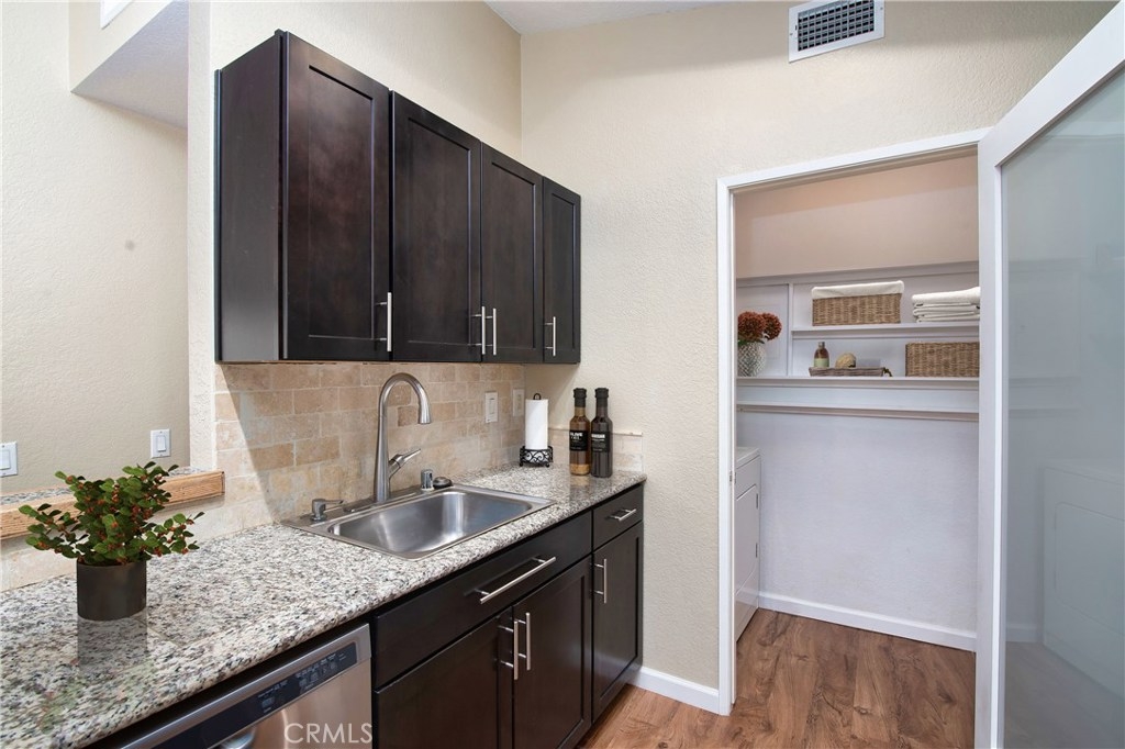 Welcome to your own end-unit with a perimeter location with privacy!!! Scenic tree views envelope this highly upgraded turnkey 2-bedroom, 2-bath 872 sq. ft. Rancho Santa Margarita condo located in the sought-after Belflora community. The living spaces are drenched in natural light. The impressive vaulted ceilings and living room fireplace invite the ultimate in cozy living. carpet flooring (installed after photos) and LED lighting with night-light option are featured throughout the home! There’s even a one-car garage space number is 17 PLUS an extra parking space! The open-concept kitchen features granite counters and exceptional storage. The in-unit laundry room with newer washer & dryer included with purchase. Master bedroom has vaulted ceilings, a walk-in closet and huge soaking tub in the master bathroom. Enjoy summer BBQs on your spacious patio with the lush view of greenery. Entertain friends at Belflora’s pool & spa, just steps away. Talk about an endless walkable amenity list! The RSM Towne Center is walkable for a lovely day of fun! Resort-style living includes private membership to a white sandy beach, Olympic-size pools with adjoining spas, tennis and basketball courts, BBQ area, playground and tot lot. There are endless mountain-view hiking opportunities along with separate skate and dog parks. Location, location, location! The property is located in the highly-acclaimed Saddleback Unified School District. No Mello Roos!