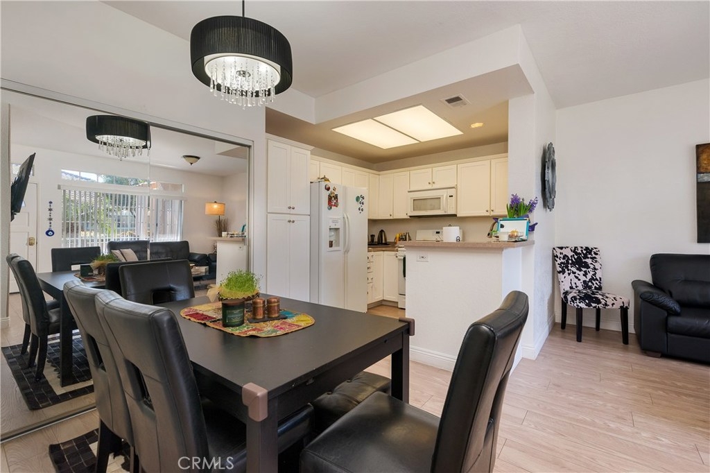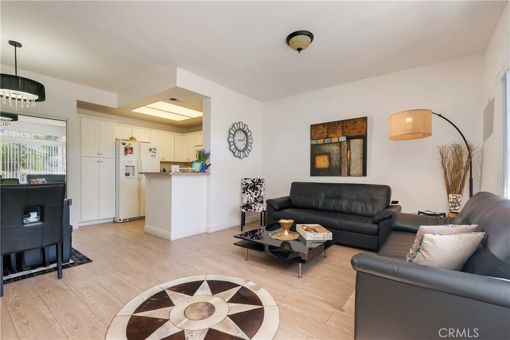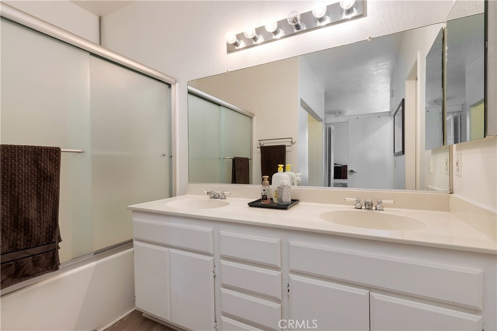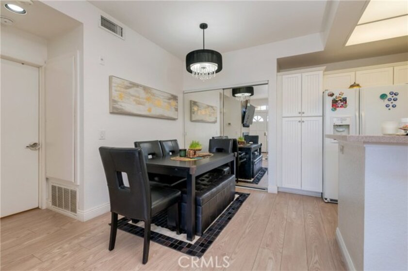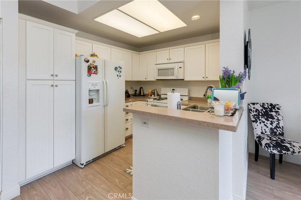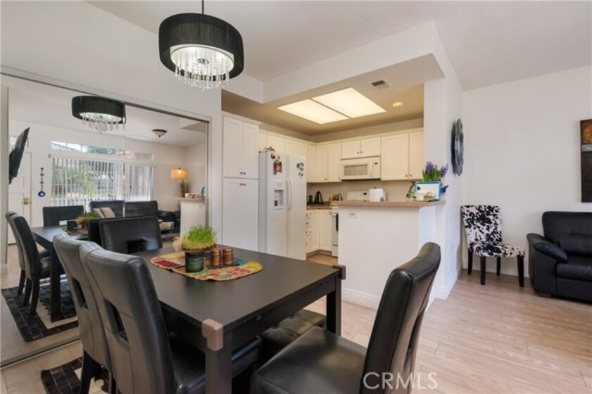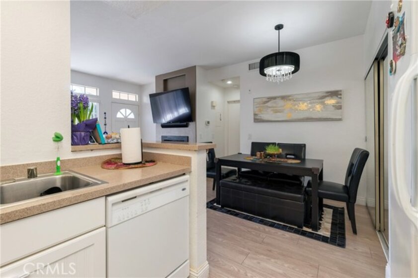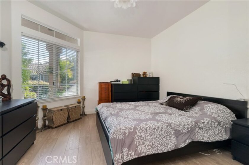 Beautiful, elegant and picturesque 1 bedroom and 1 bath home situated in the Belflora community. Lower level unit with private patio area. Flooring has been updated with sophisticated wood style laminate throughout within the past couple years. A fresh coat of paint was laid down at the same time. As soon as you enter, you immerse into the great room style living area which is attached to the dining area. Near by is the kitchen with modern countertops and gorgeous white cabinetry. Off to the other end, the bedroom with a view to outside of the unit. The ensuite features his and her sinks and a bathtub to soak in after a long day. The Belflora community is nice and quiet, features a pool area with plenty of space to lay out during the warmer months. Nice and close is a playground to take the little ones to. Reap the benefits of SAMLARC, which include tennis courts, parks, playgrounds, pools and most notably the Beach Club Lagoon just a few blocks away. Nice and close to major shopping areas and restaurants of RSM and apart of the Saddleback Unified School district. Welcome to your new home!