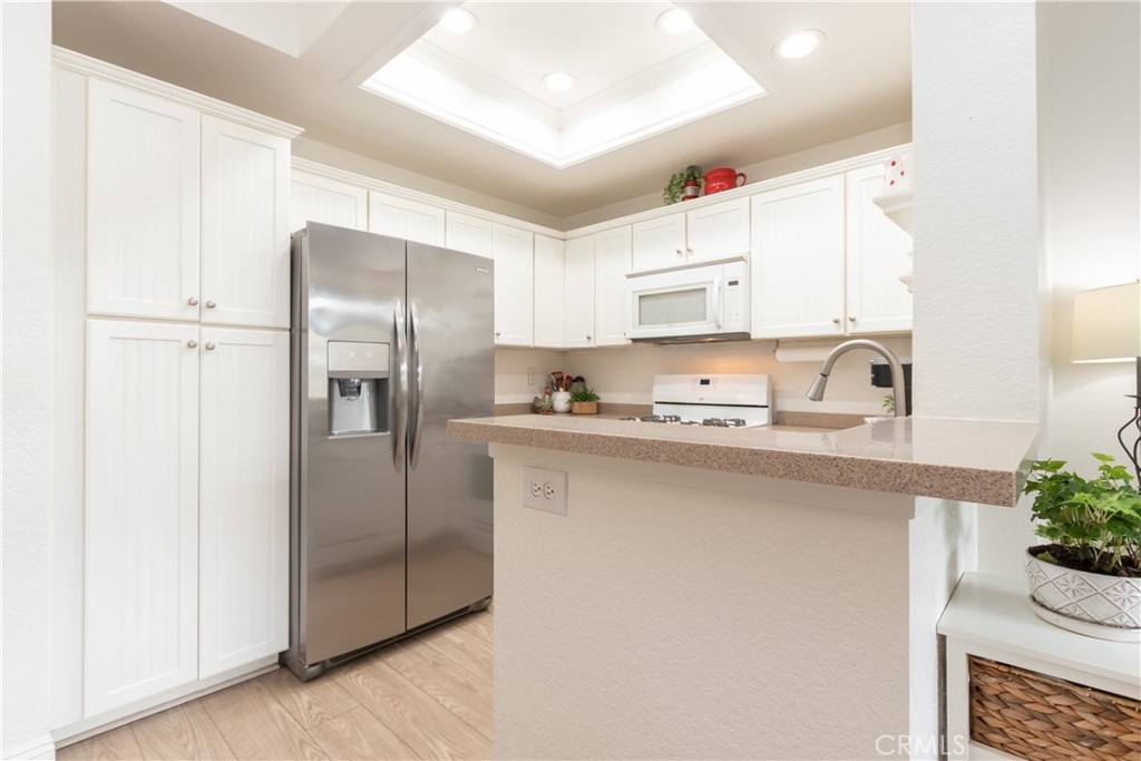This turnkey, lower level, one bedroom, one bath condo located in the highly desirable Belfora community in the heart of Rancho Santa Margarita is the one you have been waiting for! Enclosed front patio area with gate, wood laminate flooring throughout, a cozy fireplace in the living room, upgraded kitchen with recessed lighting, white cabinetry, breakfast counter and a separate dining area. Master bath includes dual sinks, a large vanity, a shower/bath combo, and a barn door for additional privacy. The master bedroom is spacious and shows light and bright. There is also a bonus area which is currently being used as a crafter's work space but could easily be used as a nursery, reading nook, relaxation space, or home office area. Enjoy all that Belfora and the city of Rancho Santa Margarita have to offer. Association Amenities Include: Pools, Spas, Parks, Sport Courts, Tennis Courts, BBQs, Tot Lots, RSM Beach Club and Lagoon, Community Events, and so much more!