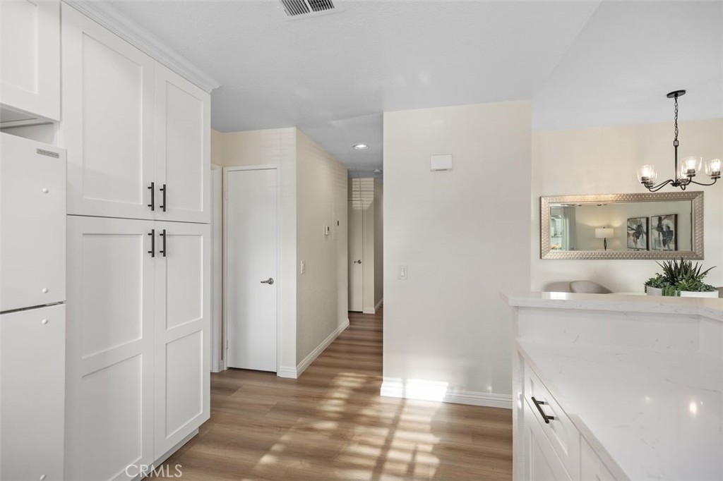 Welcome to this beautifully remodeled single-level (no stairs) 2-bedroom, 2-bathroom condo in the heart of Rancho Santa Margarita. This light-filled home features an open floor plan with new luxury vinyl plank flooring, fresh paint, and elegant new baseboards throughout. The spacious living room boasts a cozy fireplace and direct access to a private covered patio, perfect for relaxing or entertaining. The newly remodeled kitchen showcases brand-new shaker white cabinets with sleek black pulls, quartz countertops, an oversized stainless steel sink, and stainless steel appliances, offering both style and functionality. The generously sized primary suite includes a large closet and a remodeled ensuite bathroom with dual sinks, quartz countertops, and a tall storage cabinet for added convenience. The second bedroom is also spacious, with easy access to the recently updated second full bathroom featuring quartz countertops, white cabinetry, and modern fixtures. This home has been freshly repiped with new PEX piping and includes an inside laundry area with beautiful wood cabinets for extra storage. A one-car garage with direct access and an additional parking permit for a second vehicle provide ample parking options. Located in a prime spot within the community, this unit is away from busy streets while still within walking distance to the swimming pool, spa, and RSM Lake, where you can enjoy lakeside dining, scenic walks, and summer fun at the Lagoon. Don't miss this opportunity to own a beautifully upgraded home in a desirable location close to parks, shops, and all that Rancho Santa Margarita has to offer.