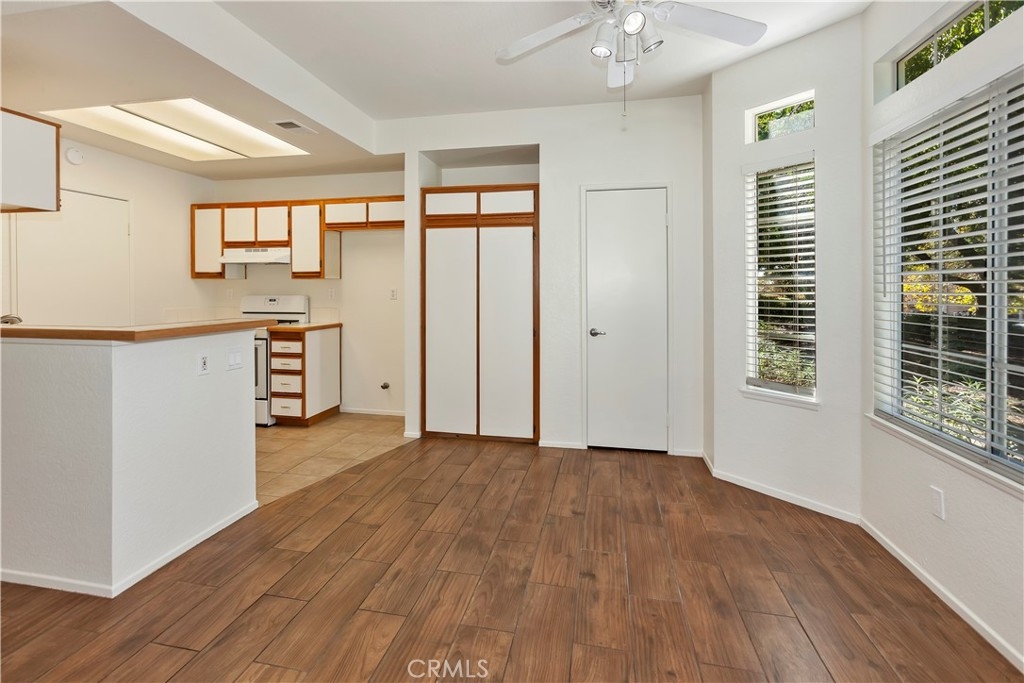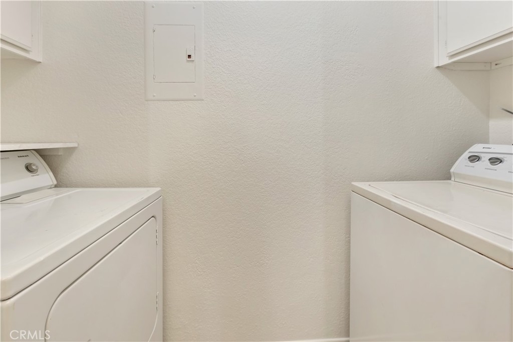 Desirable corner downstairs condo (no steps) in the Heart of Rancho Santa Margarita. 2 Bedrooms and 2 Full baths. Bottom corner unit in quiet location with front patio. Condo comes with detached 1 car garage and extra permitted parking space. Kitchen includes washer and dryer in a laundry closet. Master bath has dual sinks and a walk-in closet. Secondary bedroom is spacious with closet. Newer wood look tile floors throughout. neutral paint, newer LED lighting, newer bathroom fixtures, newer outlets and switches throughout. Close to shopping, schools, restaurants, entertainment and Rancho Santa Margarita community amenities.