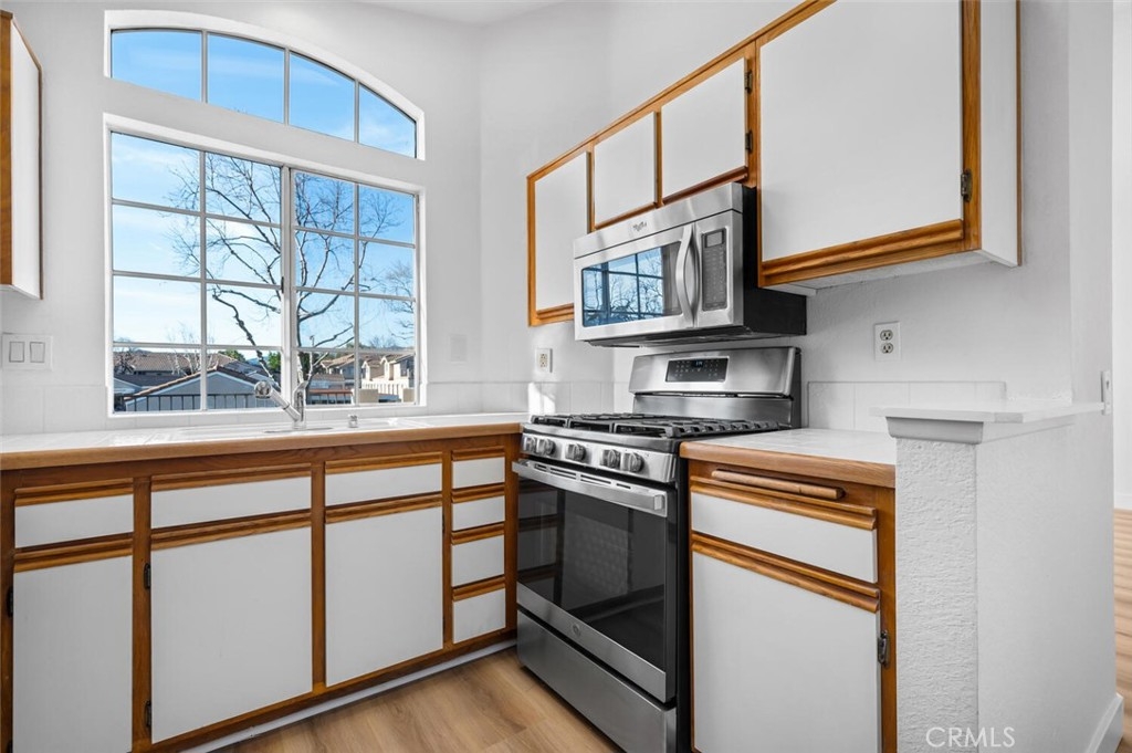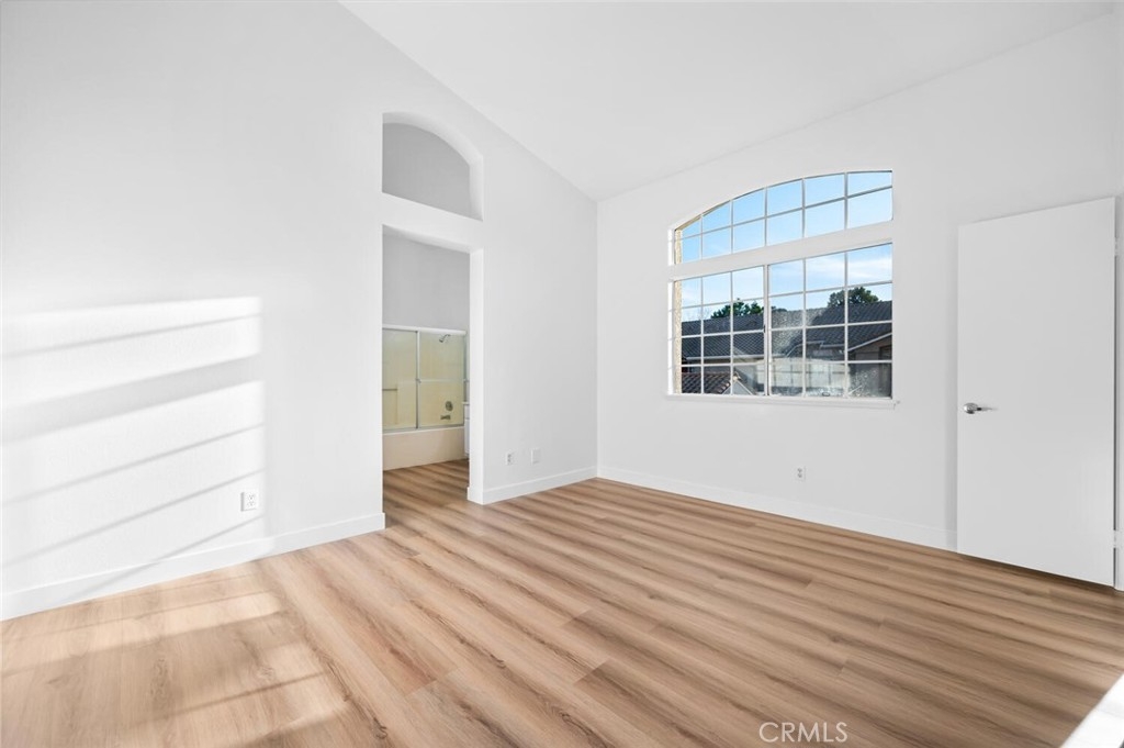Welcome to this newly renovated home located just across the street from Town Center and Main Park and adjacent to Monte Vista Park. This very spacious bright and cheerful upper unit offers plenty of privacy, as well as an open floorplan with high vaulted ceilings, providing a fresh and contemporary aura. New Vinyl Plank Flooring throughout and New Paint. Barbeque out on the Large Patio. Enter into the Large Living Room with a fireplace, perfect for entertaining with the large Dining Area. The Kitchen has newer Stainless Steel Appliances. The new Gas stove even has a griddle. There is a utility room off of the kitchen large enough for full size W&D. The Primary Bdrm. with En Suite has double sinks, Large Walk-in Closet and Large Tub with Shower. Walk downstairs to the attached garage. Rancho Santa Margarita has been named one of the safest cities in America, offering the best in public and private schools, dining, shopping, entertainment, and epic views of Saddleback Mountains. This beautiful community with 4 Olympic Size Swimming Pools, Pickle Ball, Spas, Tennis courts, Basketball Courts, Fishing Horse Trails, Club Room Beautiful Lake, A Private Lagoon with White Sand Beach, along with more Belflora HOA amenities. O'Neil Park and the Cleveland National Forest border this beautiful, masterplanned community of RSM.