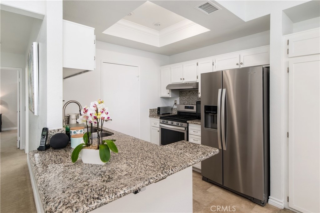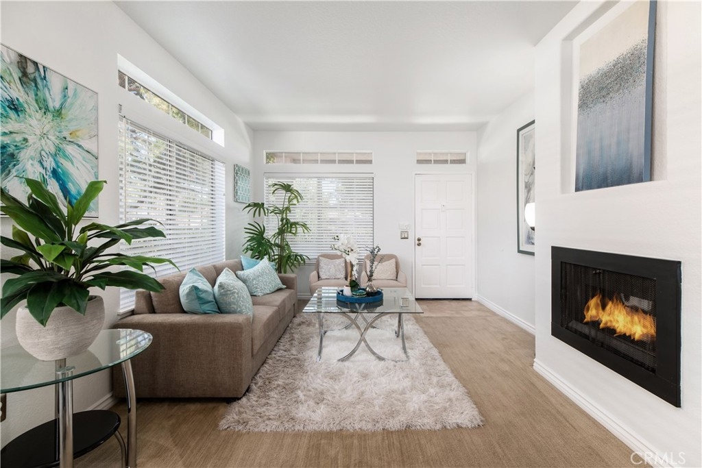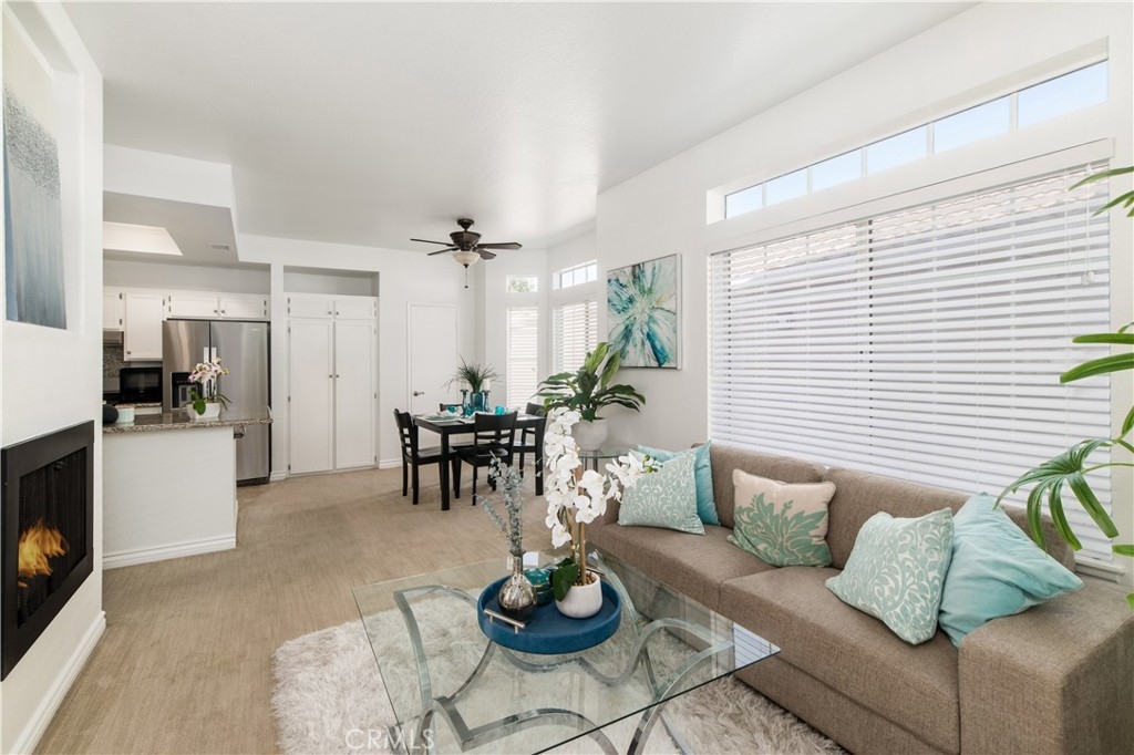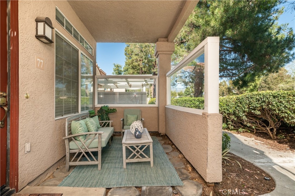 Turnkey 2 bed, 2 bath in Rancho Santa Margarita’s coveted Belaflora community. Turnkey end unit, and in ready home with all the upgrades, including a fully SMART home! Fully renovated kitchen with granite countertops, stainless steel appliances included, ample designer cabinetry, and a breakfast bar connecting to the open floor plan of the living/dining/kitchen. Great flow for entertaining and spacious living. Clean and bright for HGTV style living, complete with a cozy enclosed front patio. A gas fireplace in the living room, Nest A/C and heat unit less than 3 years old, lots of natural light, custom flooring, recessed lighting, ceiling fans, and a great layout. Large master bedroom to fit all your biggest furniture pieces, with a stunning designer dual sink master bath area with granite countertops and modern fixtures, and a sizeable walk-in closet with built-ins. Second bedroom is directly across the hall from the second fully upgraded full bathroom. Inside laundry room and a detached extended one car attached garage (plus an additional permit for extra parking) with plenty of extra space. Ground level unit with no stairs, in an incredible community with swimming pool, spa, outdoor BBQ area, tennis courts, playgrounds, basketball court, large grass areas perfect for dog walking, and all in the heart of RSM with award winning schools, dining, shopping, hiking, parks, and close to the 241 toll road and the 5 fwy.