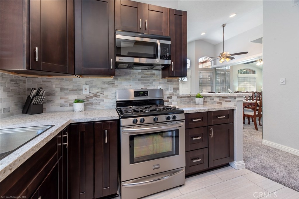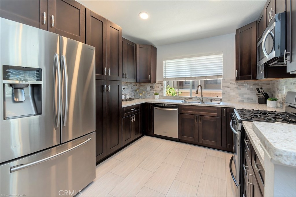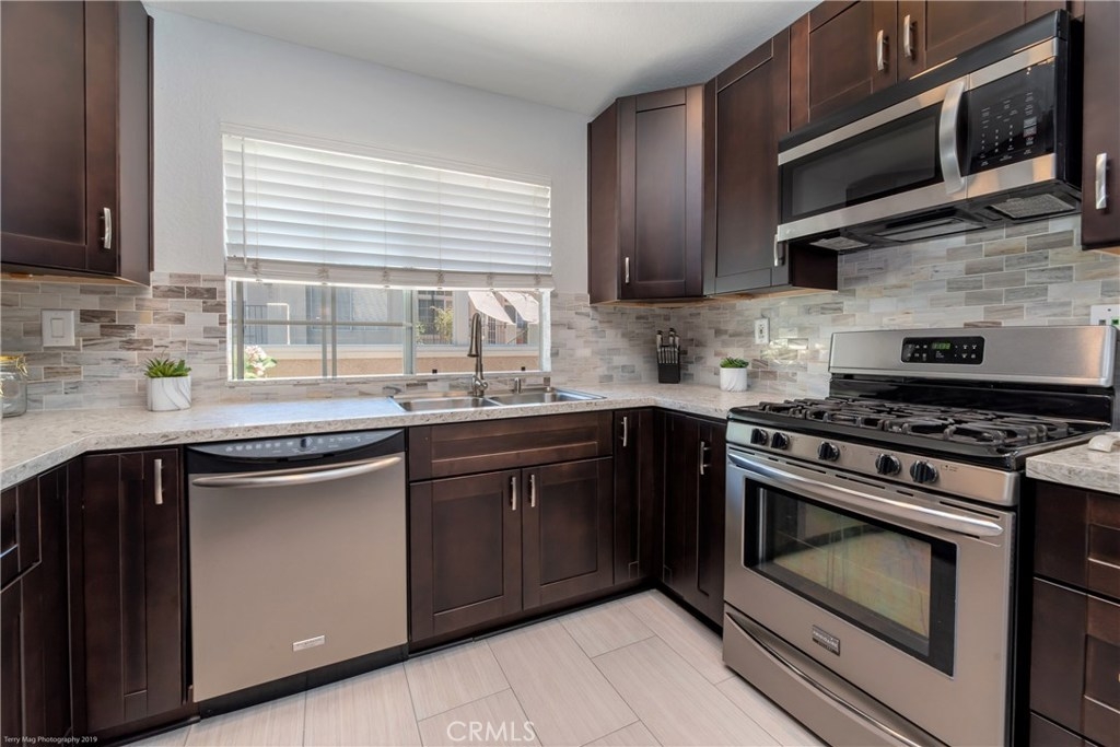 Nestled in the Quaint and Scenic City of Rancho Santa Margarita in Orange County, Ca, this NEWLY REMODELD Belflora Community END UNIT is Turn Key. The Open Floor Plan is Light & Airy w/ Vaulted Ceilings throughout, 2 Bed, 2 Bath, 1050 Sq. Ft, Inside Laundry & Attached Direct Garage Access. Enter though breezy front porch. Once inside be Enveloped by the High Ceilings & Natural Light. There is a Separate Dining Room, Separate Living Room w/ Fireplace, Built In Cabinet & Sliding Door Access to Private Balcony. The Newly Remodeled Kitchen offers Upgraded Solid Wood Mahogany Cabinets, Quartz Counters, Tile Backsplash, High End Stainless Steel Appliances, Sink & Faucet. The Master Suite features a Walk In Closet, Master Bath w/ Newly Refinished Cabinets, Dual Sinks, New Custom Tile Shower, Tub, & Energy Efficient Toilet. Down the Hall is a 2nd Spacious Bedroom w/ Mirrored Closet Doors, Hall Bath w/Newly Refinished Cabinets & Inside Laundry. Additional Interior upgrades include, New High Grade Carpet throughout, New Tile Floors, New Designer Two Tone Paint throughout, Custom Baseboards, New Ceiling Fans, New Panel Doors & Hardware, Recessed Lighting, Upgraded Window Treatments & More. Outside, enjoy the endless amenities of the community, including Swimming Pools, Spas, Tennis & Basketball Courts, Tot lots, Rancho Santa Margarita Lake Access, Walking & Bike Trails & more. + Enjoy Award Winning Schools & being within walking distance to all Shopping, Dining & Entertainment.