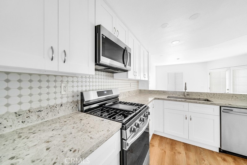 LOWER LEVEL ,NO STAIRS WITH DIRECT GARAGE ACCESS! Completely remodeled – 2 bedroom, 2 bathroom in La Ventana. Welcome to one of the most private and bright Plan 3 locations within the community. Upon walking in, you’ll be greeted by an abundance of light, freshly painted bright white walls, new vinyl floors, upgraded kitchen with an open and airy floor plan. The kitchen boasts crisp white cabinets, Quartz counter tops, stainless steel appliances, recessed lights and opens to the dining and living areas. The living room features a fireplace, recessed lighting in the ceilings with a wrap-around patio. Both bathrooms are highly upgraded with new vanities, upgraded floors, remodeled showers and newer fixtures. The master bedroom is spacious. The single car garage has direct access to the interior laundry room. In addition, you have an assigned carport. This property is located within walking distance of the pool, tennis courts, playground, walking and hiking trails. Additionally you’ll have access to the SALMARC amenities which include the Beach Club, additional pools, parks, trails, clubhouses and tons more! Very close to award winning schools, shopping and restaurants.