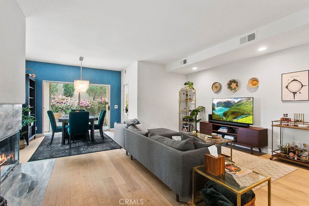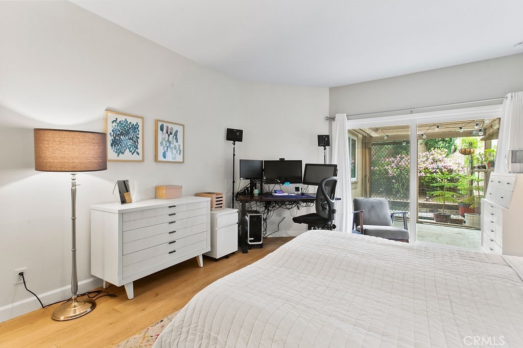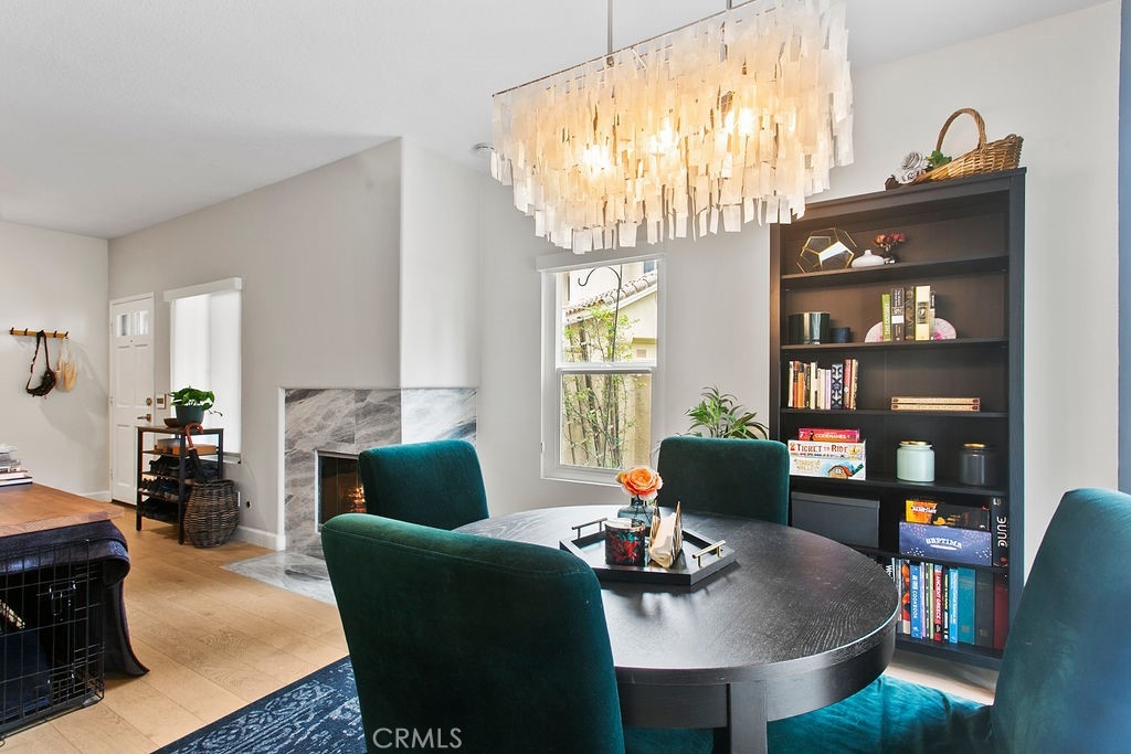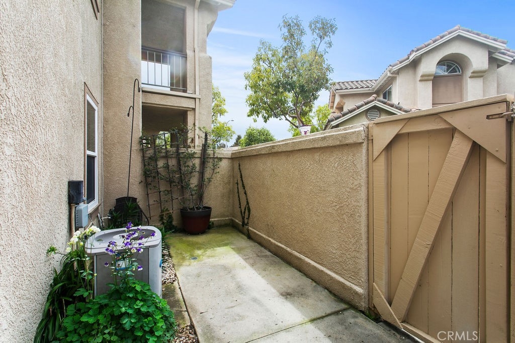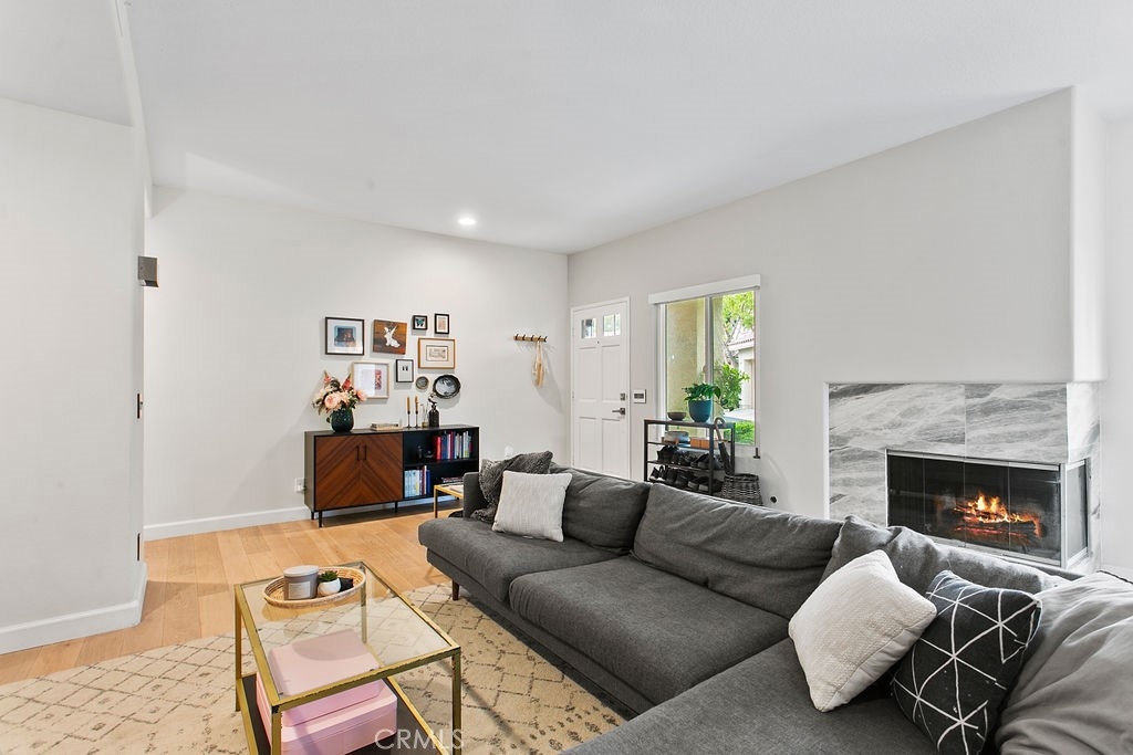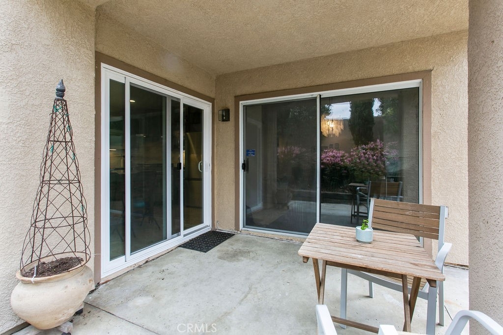 Private corner ground floor unit with an incredible outdoor living space, overlooking an open greenbelt. 2 bedroom and 2 bath unit has an open floor plan with a lot of natural light. French oak engineered wood flooring and vinyl windows throughout. Kitchen features Quartzite countertops with a custom floating island showcasing modern kitchen cabinetry. Open living room with a marble fireplace and office nook, overlooking the dining area. Both bathrooms have been beautifully updated. The master bath is appointed with floating Cerused marble vanity, marble floors, oval soaking bathtub, along with designer lighting and cabinetry. Nestled next to the Tijeras Creek Golf Course, this home has lovely indoor/outdoor spaces. The oversized covered patio is perfect for outdoor entertaining and gardening. The low maintenance garden expands the length of the unit with mature roses, flowering shrubs and cypress trees. There is a screened-in patio area off of the master bedroom. Additional features include: attached laundry area, plenty of storage and 2 garage spaces - one car garage is attached with direct access and a one car detached garage with drop down ladder to attic area for extra storage. Close to many outdoor activities: bike riding and hiking in Trabuco Canyon and Whiting Ranch trails, approximately 30 minutes to Laguna Beach and Dana Point. Additional amenities include membership to SAMLARC, a resort-style membership that offers 13 community parks, 4 pools, a beach club lounge and lagoon. Close to transportation, shopping and restaurants.