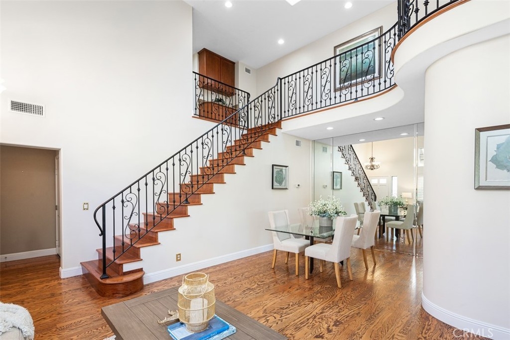 Stunning Golf Course and Sunset View 3 Bed, 2 Bath End Unit in Highly Sought After Community of Belterraza. Situated on a quiet interior cul-de-sac this gorgeous home has it all! Enter to an open living and dining great room with soaring vaulted ceilings allowing great natural light from skylights and windows. Immediately grabbing all the attention is the custom designer wrought iron stair rail and balcony railing which sets the tone for the entire residence. With hardwood floor that continue throughout the downstairs into the more formal living spaces to the open kitchen and spacious family room. Featuring a warm focal point fireplace, the family room opens to a perfectly updated chef’s kitchen. With a breakfast counter bar and a large casual eat-in area the kitchen is ready for family/friend get togethers! Updated cabinets and hardware, granite counters, inset kitchen sink, recessed and task lighting with a matching tumbled travertine floor and backsplash! The counter wraps all the way through the eat-in area so there is plenty of great storage. The kitchen and family room open onto a wonderfully finished custom hardscape patio. With room for multiple seating areas to take in the breeze and the view there is a generous amount of room to entertain or for the kids to play. An updated guest bath completes the lower level. Upstairs the master occupies its own wing at the back of the home and features a private balcony overlooking the entertainer’s deck with amazing golf course and sunset views -the perfect spot to relax with a glass of wine. The master includes a gorgeous fully updated spa-like ensuite complete with a soaking tub under a golf course view window, step in shower, a dual sink vanity, a privacy water closet door and a large walk-in closet with custom built ins. Opposite the master are two guest bedrooms, one featuring a walk-in closet with California Closet custom built-in’s as well. An updated guest bath completes the upper level. With numerous upgrades beyond what can be seen at the surface know that the HVAC system has been updated and custom insulation and sun shielding were added as well. With stylish window treatments including roller shades and plantation shutters, a very functional floor plan, attached direct access two car garage and panoramic views, this home is ready! Enjoy access the SAMLARC and everything gorgeous RSM has to offer!