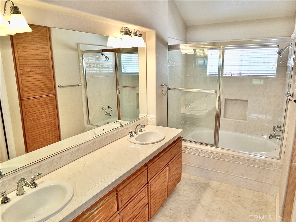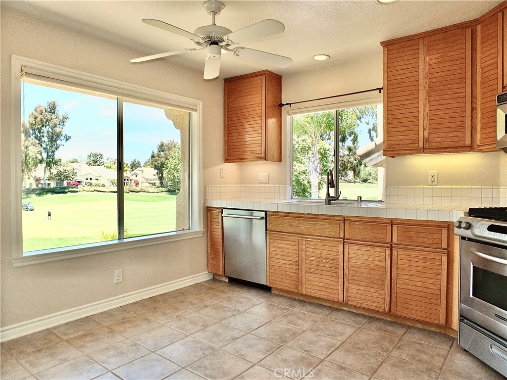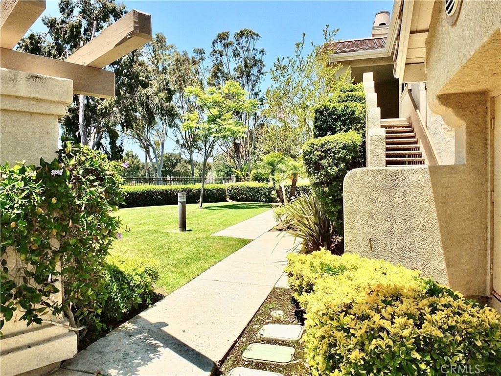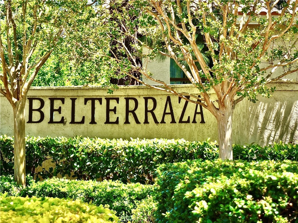 Location,Location,Location!!! Private corner upper unit with beautiful Golf Course views from both patios and almost every window in the unit... this unit has a wonderful floor plan, a spacious primary bedroom with en suite, large bathtub/shower w/glass enclosure, double mirrored wardrobe closets , a huge picture window that boasts one of the magnificent golf course views!!!...there is a private second bedroom with a built-in work space...a separate laundry room w/loads of storage in the unit that is the access point to your private attached garage, and that is only one of the two garages spaces that belongs to this unit ... there is recessed lighting throughout plus custom moldings, a sunlit kitchen with views out every window plus under the counter lighting as well ...all windows and sliders are double paned... there is a spacious living room with corner fireplace, built in hallway cabinets, lit alcove for artwork , additional amenities include membership to SAMLARC which offers 13 community parks, 4 pools, a beach club lounge and lagoon... a spectacular view property like this one is a rare find in the Belterraza complex and they don't come on the market that often ...grab this one while you can !!!