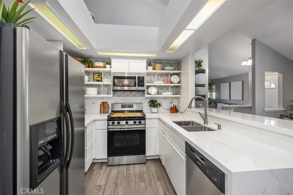 From the time you enter the front door you will see the attention to detail spent by these Sellers. So incredible! Spacious living room w/fireplace and deck. Enjoyable dining room w/open kitchen and serving bar. Remodeled kitchen is a delight. Primary bedroom on this on this level w/access to deck and private bath. Another bedroom on this level w/second bath and laundry closet. Upstairs is the loft which is used as a bedroom. Here is another private deck w/partial lake view through the trees. Don’t miss this special home. Detached 2-car garage below. This property is located at Rancho Santa Margarita Lake. You can enjoy the fireworks on 4th of July. Restaurants and shops are right next door, and you have access to the SAMlARC Recreation Centers nearby. Hiking and biking trails abound.