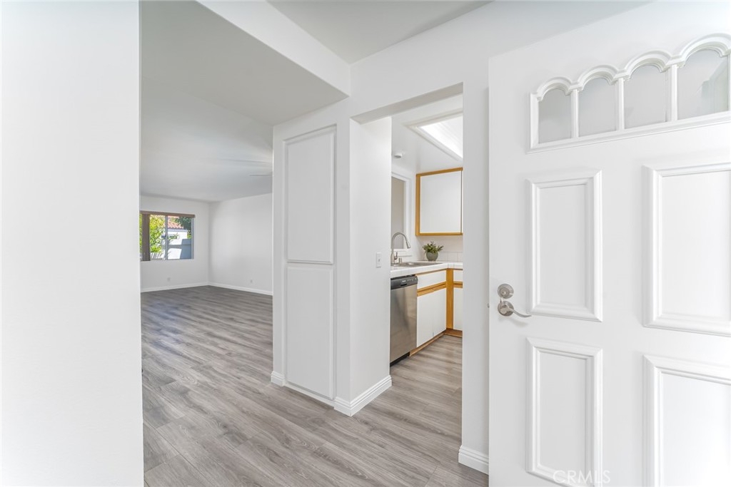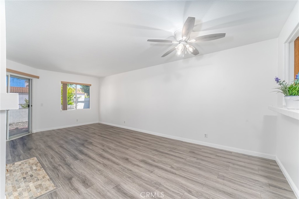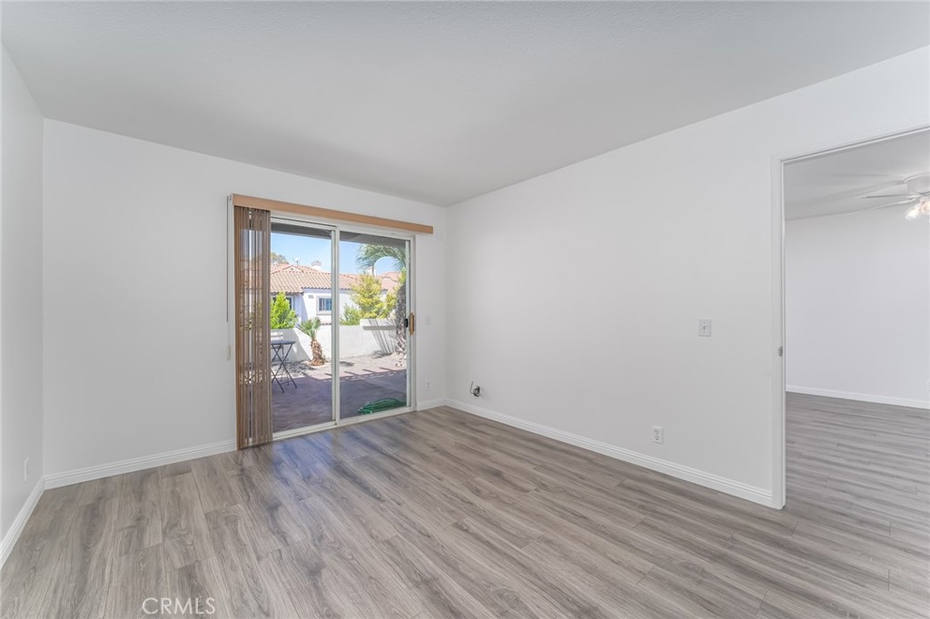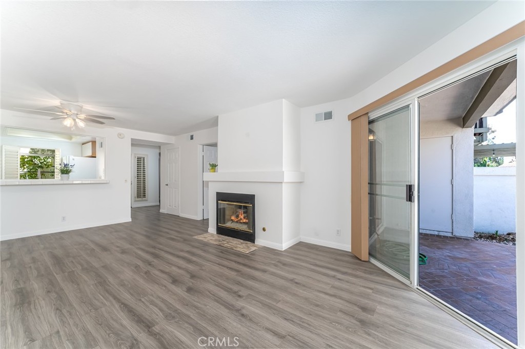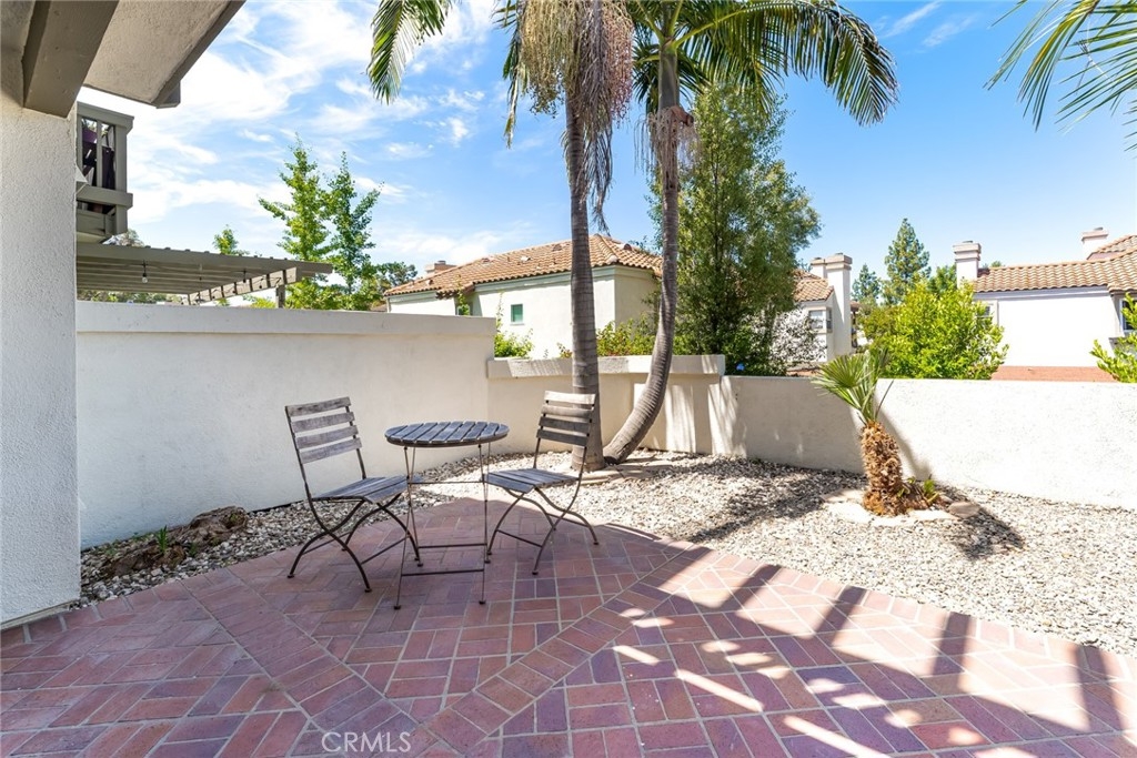 This charming one-level one Bedroom, one Bathroom is lovely. It seems extremely large due to the amazing layout! The entire home has Fresh Paint & gorgeous Laminate Pergo Flooring, 6 Panel Doors & lovely Baseboards. The Kitchen has a Stainless Steel Gas Range, Dishwasher & Sink. There is also a Refrigerator & a built-in Microwave & lovely overhead added Lighting! Over the sink is a wide opening to the vast Living Room giving it an open-concept feel. The Living Room has an ample Eating Area, Gas Log Electric Fireplace and a Slider to the big Backyard Patio for resting, child's play, Barbeques or gardening. The Living Room also has access to the Primary Bedroom. The roomy Primary Bedroom also has a Slider to the Patio. There are also 2 wardrobe closets in the Bedroom. The Primary Bathroom is an En-Suite Bathroom with Tub & Shower. Down the Hall is a generous sized Niche perfect for an Office or Play Room. Smooth textured Ceilings also! This Home has direct access to the good size Garage with Laundry hookups. The neighborhood has an exceptional amount of guest parking. Besides the one car garage parking, if you have another car you are given another spot to park. This home is just up the street to the neighborhood Pool, Spa AND to Lake Rancho Santa Margarita which is stunning and a great place to walk around. In addition it is just a few minutes away the Lago RSM Beach Club, Shopping & Restaurants, 13 RSM Parks, hiking and biking trails, pickle ball courts & community pools. It also has nearby great schools & even the 241 Toll Road! The Rancho Santa Margarita lifestyle has a lot to offer!! This property has a low tax rate and no Mello Roos! Don't miss a golden opportunity!