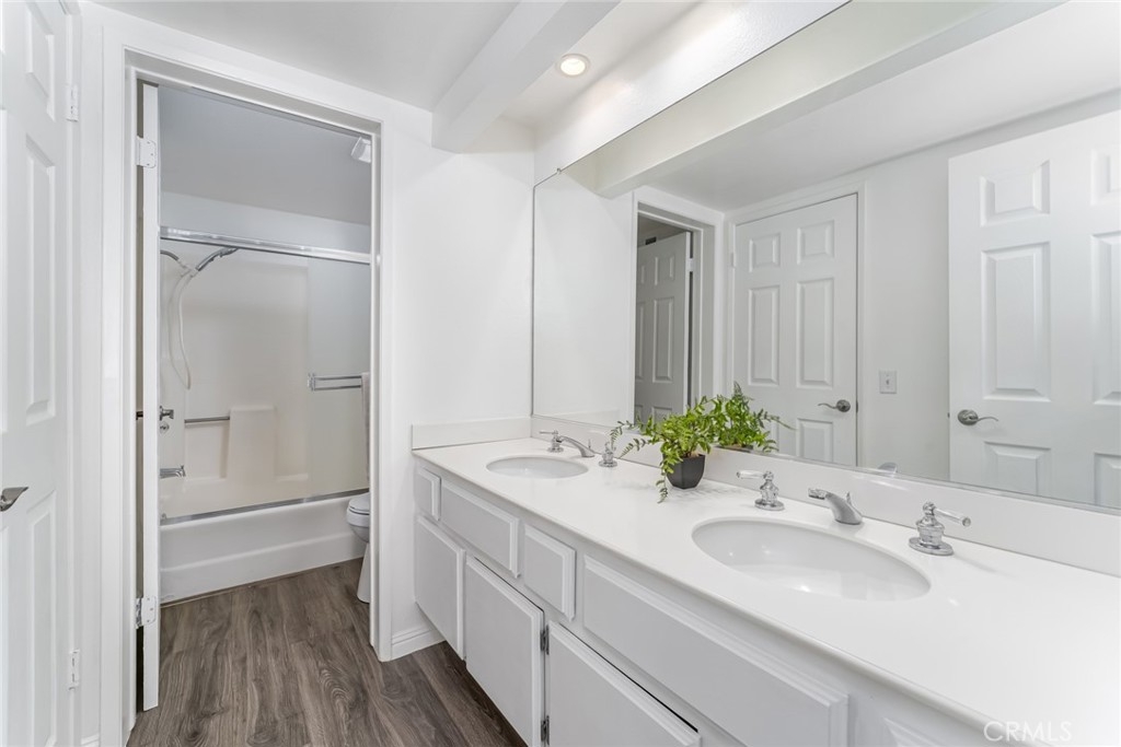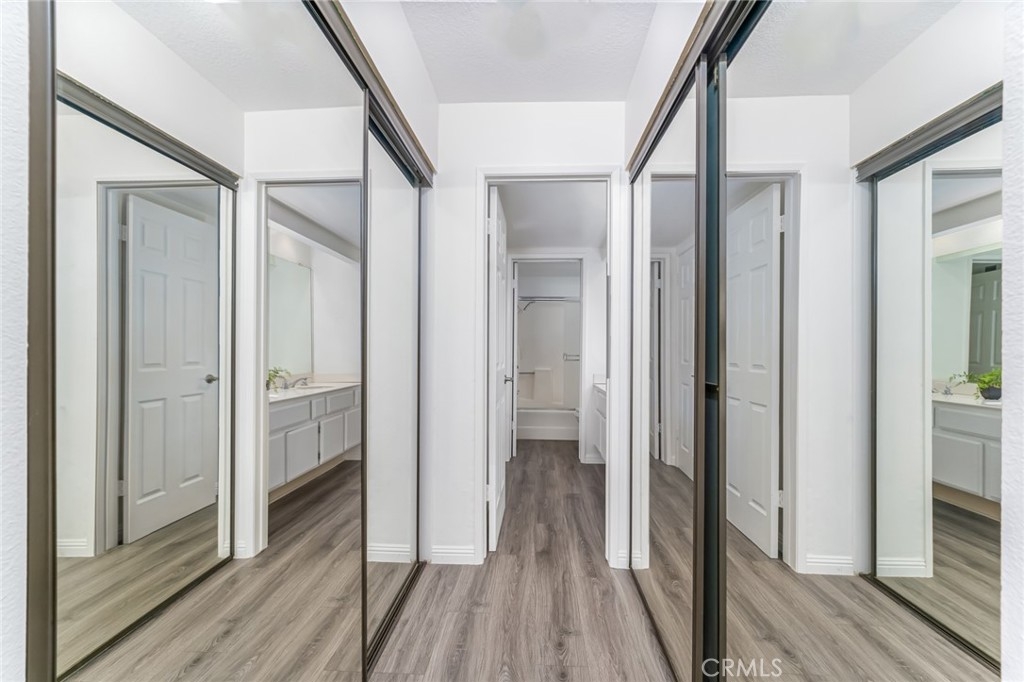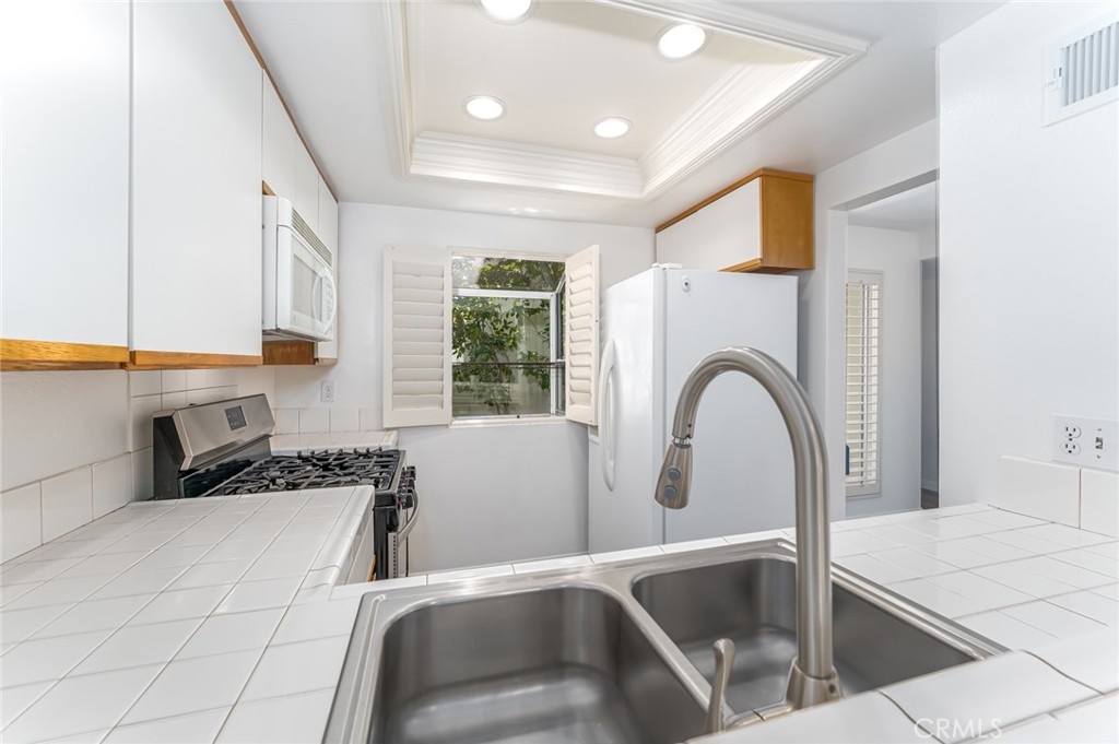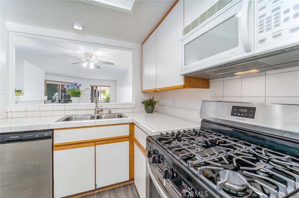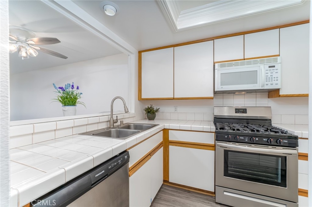 This charming one-level one Bedroom, one Bathroom is lovely. It seems extremely large due to the amazing layout! The entire home has Fresh Paint & gorgeous Laminate Pergo Flooring, 6 Panel Doors & lovely Baseboards. The Kitchen has a Stainless Steel Gas Range, Dishwasher & Sink. There is also a Refrigerator & a built-in Microwave & lovely overhead added Lighting! Over the sink is a wide opening to the vast Living Room giving it an open-concept feel. The Living Room has an ample Eating Area, Gas Log Electric Fireplace and a Slider to the big Backyard Patio for resting, child's play, Barbeques or gardening. The Living Room also has access to the Primary Bedroom. The roomy Primary Bedroom also has a Slider to the Patio. There are also 2 wardrobe closets in the Bedroom. The Primary Bathroom is an En-Suite Bathroom with Tub & Shower. Down the Hall is a generous sized Niche perfect for an Office or Play Room. Smooth textured Ceilings also! This Home has direct access to the good size Garage with Laundry hookups. The neighborhood has an exceptional amount of guest parking. Besides the one car garage parking, if you have another car you are given another spot to park. This home is just up the street to the neighborhood Pool, Spa AND to Lake Rancho Santa Margarita which is stunning and a great place to walk around. In addition it is just a few minutes away the Lago RSM Beach Club, Shopping & Restaurants, 13 RSM Parks, hiking and biking trails, pickle ball courts & community pools. It also has nearby great schools & even the 241 Toll Road! The Rancho Santa Margarita lifestyle has a lot to offer!! This property has a low tax rate and no Mello Roos! Don't miss a golden opportunity!