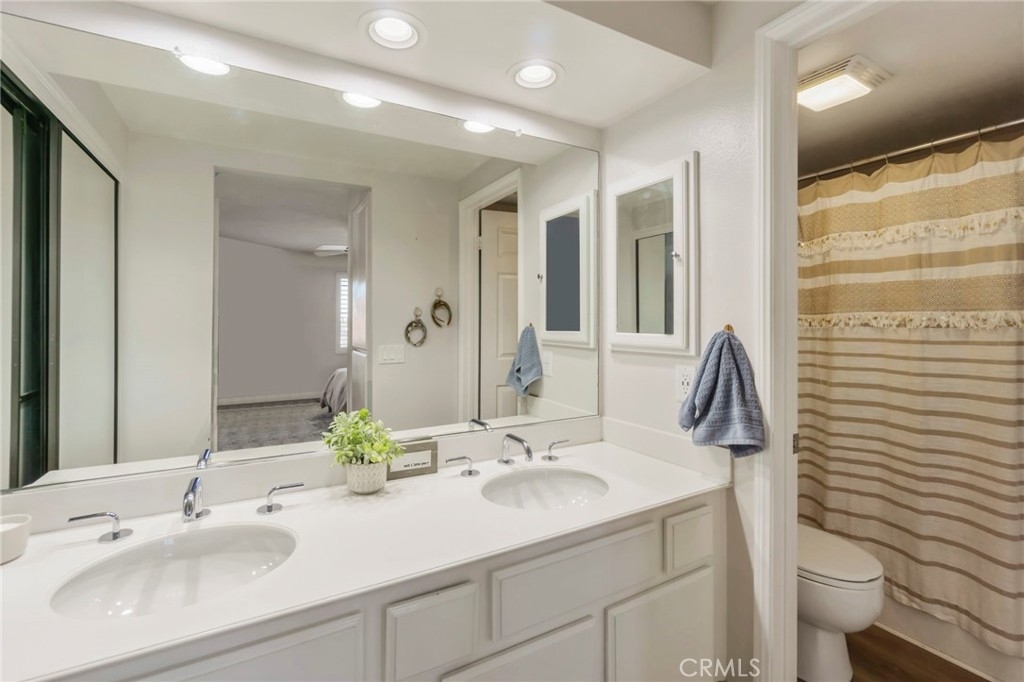 This property is a dream come true for buyers seeking a beautiful home with a fantastic location and incredible sunset views! Nestled in the desirable Brisa Del Lago community, it's just steps away from the RSM Lake. This inviting home offers 3 bedrooms, 2 full baths & a 2 car garage. There are also two balconies, perfect for a BBQ & enjoying sunset views! When you enter, you are greeted with soaring ceilings and windows allowing lots of natural light. This floor plan is open and spacious and has been tastefully updated with gorgeous vinyl plank flooring throughout the entire downstairs. A beautifully upgraded fireplace with a custom mantel and gorgeous chandeliers adds a designer's touch. The lovely kitchen has updated cabinets, countertops & appliances. The primary bedroom has French doors leading to the deck, two closets & a convenient linen closet for lots of storage. New A/C & heating, shutters, ceiling fans in all the bedrooms, dual sinks in the primary bathroom, recessed lighting & inside laundry with a stackable washer & dryer. Location, location, location... steps away from RSM Lake, restaurants, fishing, shopping & RSM Beach Club. The sellers have enjoyed all RSM offers, including all of the year-round activities. Fourth of July is one of their favorites because they can enjoy the spectacular Fireworks from the comfort of their home. Trabuco Mesa Elementary is less than half a mile away.