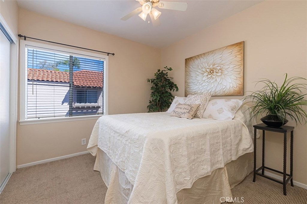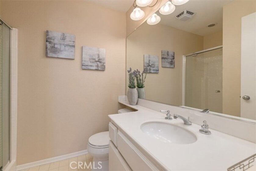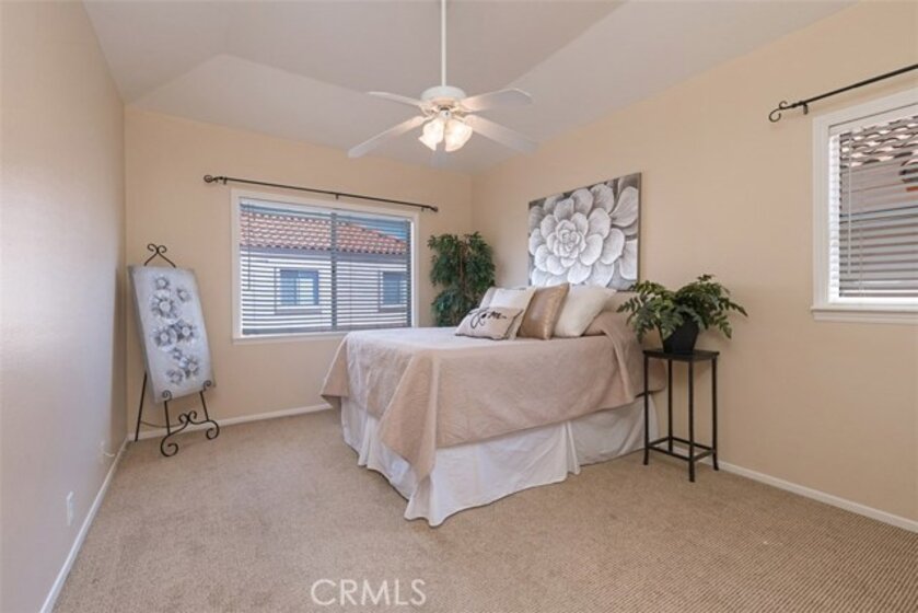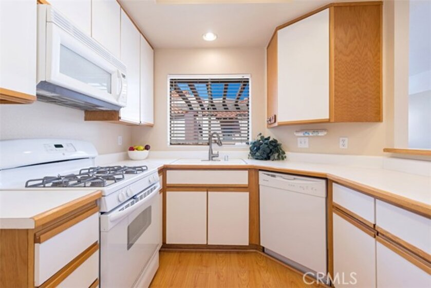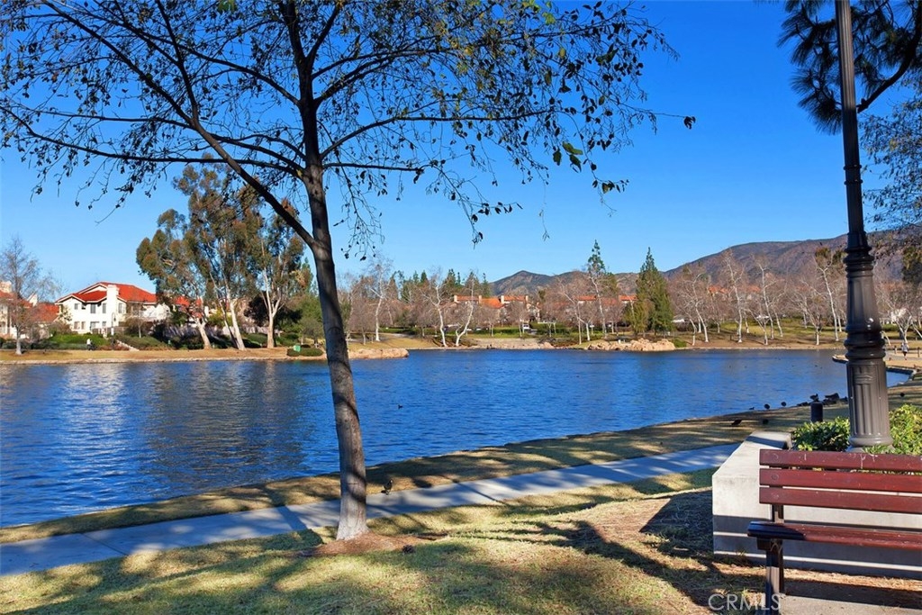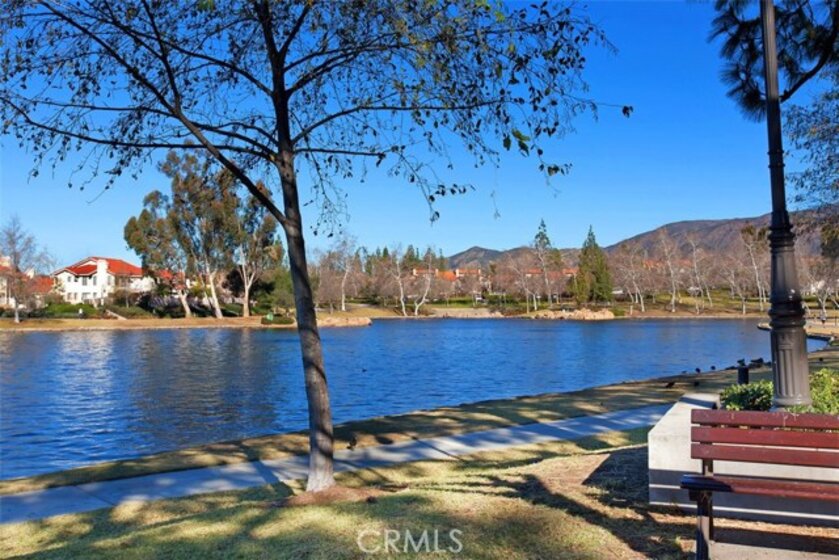 Super cute carriage unit with no one above or below. Open floor plan with vaulted ceilings in the living/dining room and master bedroom. Cozy wood burning fireplace. Master suite with walk-in closet, dual vanities and compartmentalized bath. Guest bedroom with full wall length, mirrored closet. Linen cabinet conveniently located in the hall. Four years new full size stackable laundry. Nicely upgraded with wood laminate flooring throughout the living room, dining room kitchen and hall way. Tile flooring in the entry & kitchen. Newer loop pile carpet in both bedrooms. Pretty beige paint with bright white baseboards and cased windows, faux wood blinds, updated lighting fixtures & ceiling fans. New Furnace and AC unit installed 2017. New water heater installed 2017. One car garage directly in front of unit plus carport #50. Enjoy 4th of July fireworks from your private patio in the lake front community of “Brisa del Lago I” with lake front Community Pool & Spa. Adjacent to the Mercado Del Lago shopping center with grocery store, drug store, boutiques shops, restaurants, gas station, and much more. Membership to the Rancho Santa Margarita Beach Club with access to a swim lagoon, boating, fishing, fiesta room, covered picnic areas, tennis courts, sport courts, four pools, 13 parks, nine trails, and numerous sports fields. Approximately 1 block to the Trabuco Mesa (K-6), 1 mile to RSM IS (7-8) and 5 miles to Trabuco Hills HS. This is a great place to call home.