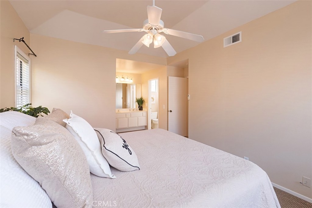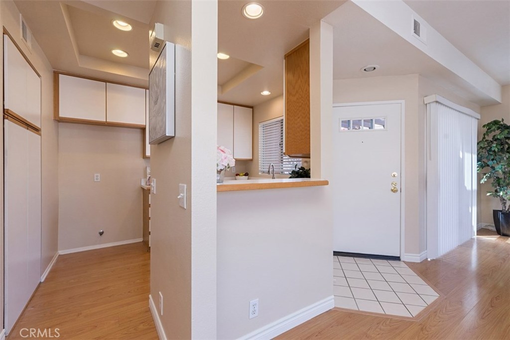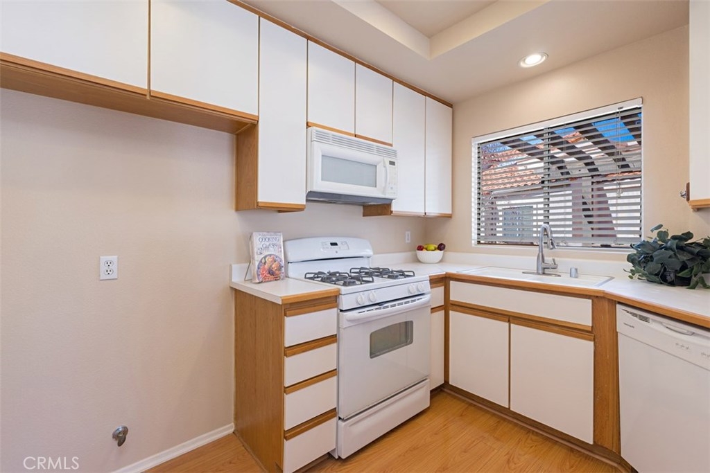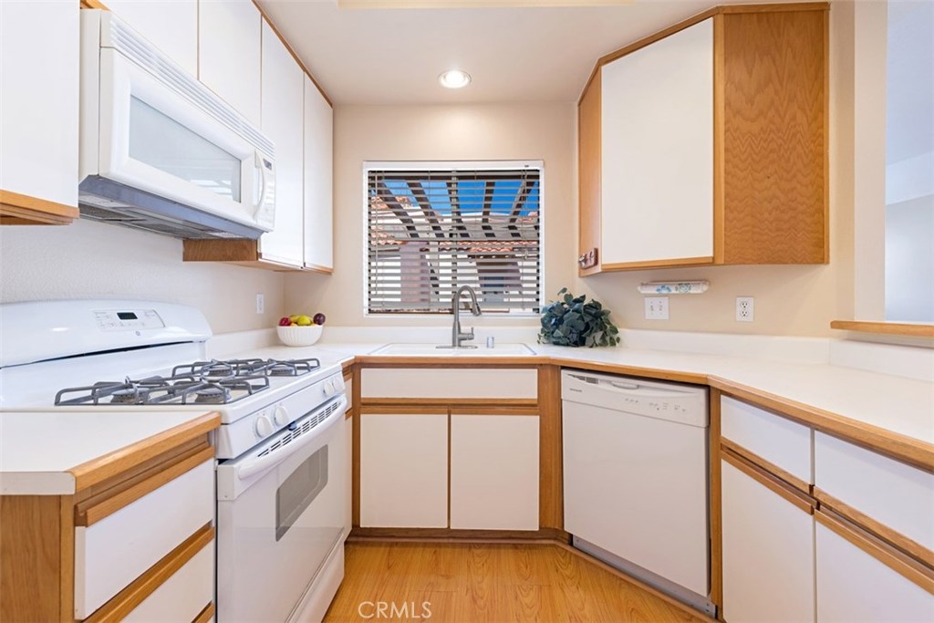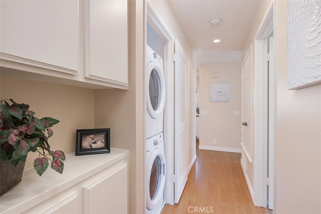 Super cute carriage unit with no one above or below. Open floor plan with vaulted ceilings in the living/dining room and master bedroom. Cozy wood burning fireplace. Master suite with walk-in closet, dual vanities and compartmentalized bath. Guest bedroom with full wall length, mirrored closet. Linen cabinet conveniently located in the hall. Four years new full size stackable laundry. Nicely upgraded with wood laminate flooring throughout the living room, dining room kitchen and hall way. Tile flooring in the entry & kitchen. Newer loop pile carpet in both bedrooms. Pretty beige paint with bright white baseboards and cased windows, faux wood blinds, updated lighting fixtures & ceiling fans. New Furnace and AC unit installed 2017. New water heater installed 2017. One car garage directly in front of unit plus carport #50. Enjoy 4th of July fireworks from your private patio in the lake front community of “Brisa del Lago I” with lake front Community Pool & Spa. Adjacent to the Mercado Del Lago shopping center with grocery store, drug store, boutiques shops, restaurants, gas station, and much more. Membership to the Rancho Santa Margarita Beach Club with access to a swim lagoon, boating, fishing, fiesta room, covered picnic areas, tennis courts, sport courts, four pools, 13 parks, nine trails, and numerous sports fields. Approximately 1 block to the Trabuco Mesa (K-6), 1 mile to RSM IS (7-8) and 5 miles to Trabuco Hills HS. This is a great place to call home.