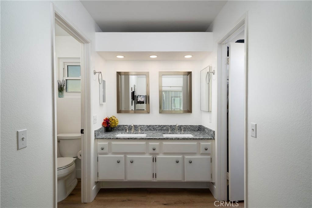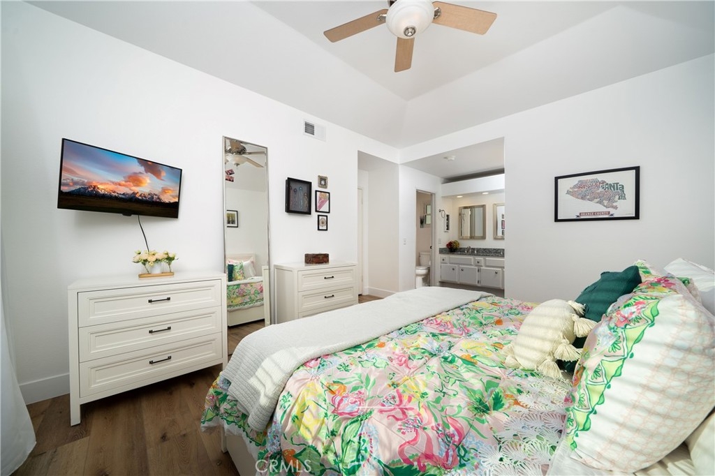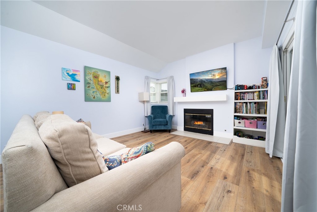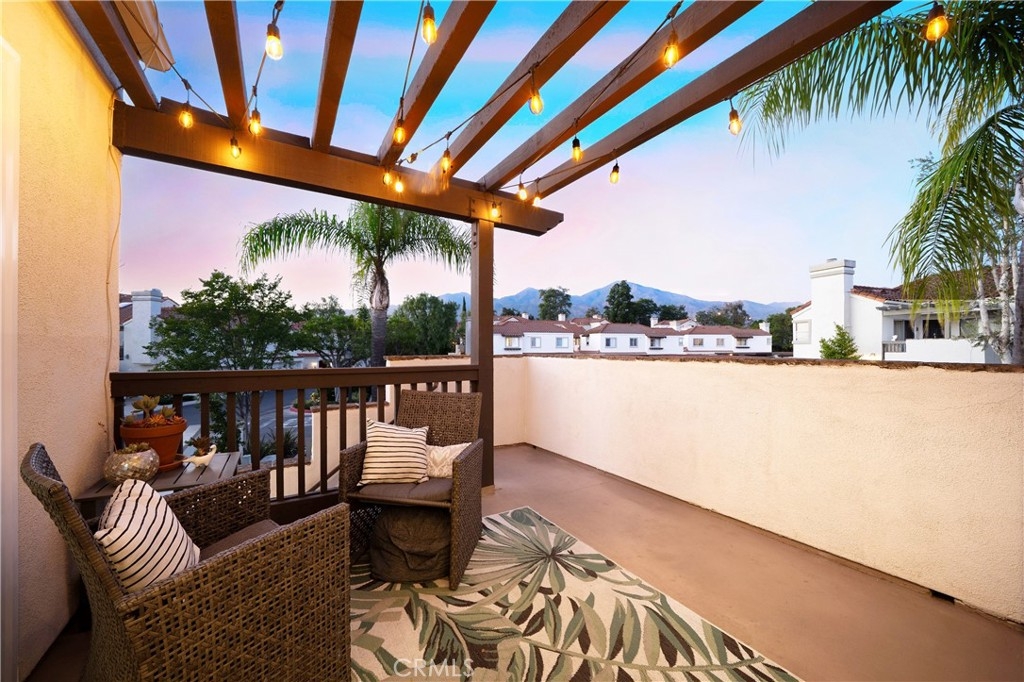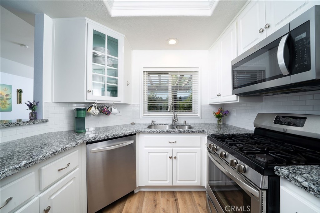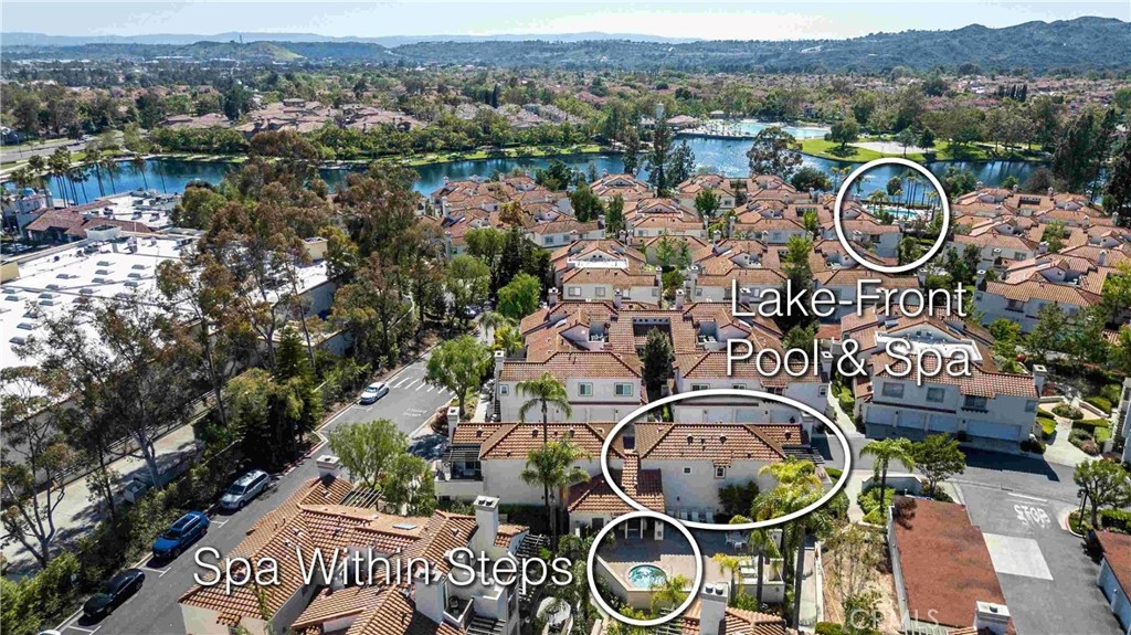 Discover elevated living in the sought-after lakefront enclave of Brisa Del Lago I, a Spanish villa-inspired community where timeless architecture meets serene mountain vistas. This upgraded end-unit carriage home offers rare privacy with no shared walls, no one above or beneath, except garage below. Experience peace-of-mind with the Vivint security system and private gated entry with intercom equipped with an interior remote buzz-in. As you step in, an expansive, light-filled interior awaits, showcasing soaring vaulted ceilings, brand new luxury vinyl plank flooring, fresh designer paint, and a charming fireplace anchoring the open-concept living space. The remodeled chef’s kitchen is a culinary delight with granite countertops, a gas range, stainless steel appliances (newer refrigerator included with purchase), breakfast bar, and breathtaking mountain views. The king-size primary suite features a walk-in closet, bath/tub combo, and elegant dual-sink vanity. Spacious secondary bedroom and bathroom with a walk-in shower is perfect for guests and loved ones. The hallway laundry closet includes washer and dryer. An inviting office nook in the dining area adds versatile function, while new dual-pane vinyl windows and sliding glass doors enhance comfort and energy efficiency. Enjoy tranquil outdoor living on the large private patio or indulge in resort-style amenities including a spa just steps away, and an additional pool and spa with panoramic views of Rancho Santa Margarita Lake. An extra-large two-car attached garage provides ample storage. Ideally located just 2 blocks from the highly rated Trabuco Mesa Elementary School and Trabuco Mesa Park’s playground & tennis court. Named the safest city in Ca, Rancho Santa Margarita is also one the most amenity-rich cities in Orange County. Residents enjoy access to the Beach Club, a splash pad, four Olympic-sized pools, fishing, 13 parks, picnic areas, sports courts, soccer fields, baseball diamonds, tennis courts, multiple playgrounds, and a vast urban trail system. The community hosts various events throughout the year, including spectacular 4th of July fireworks over the lake. With the 241 tollway just minutes away, you'll enjoy quick access to Irvine and surrounding areas. It’s extremely rare to find a property this affordable that has no common walls, views, a high walk score and so many upgrades. Make it yours!