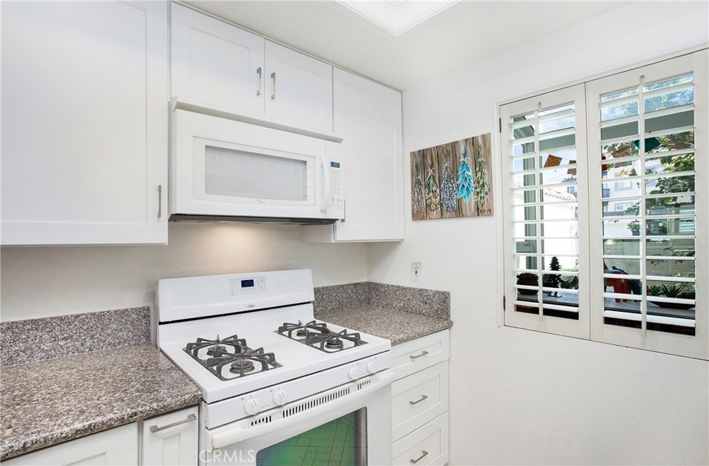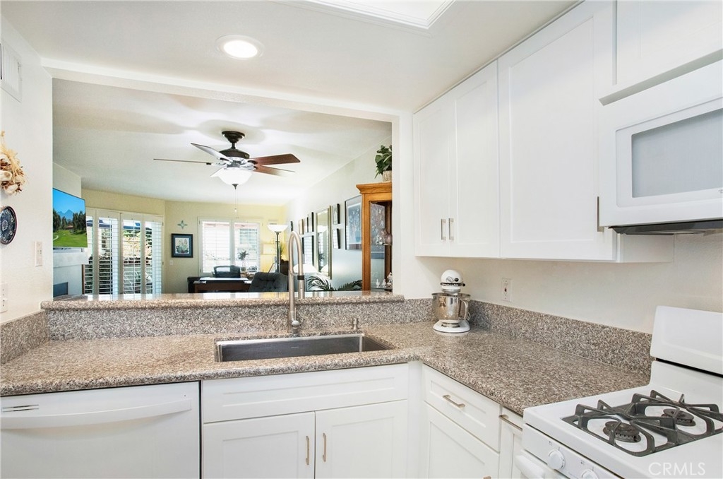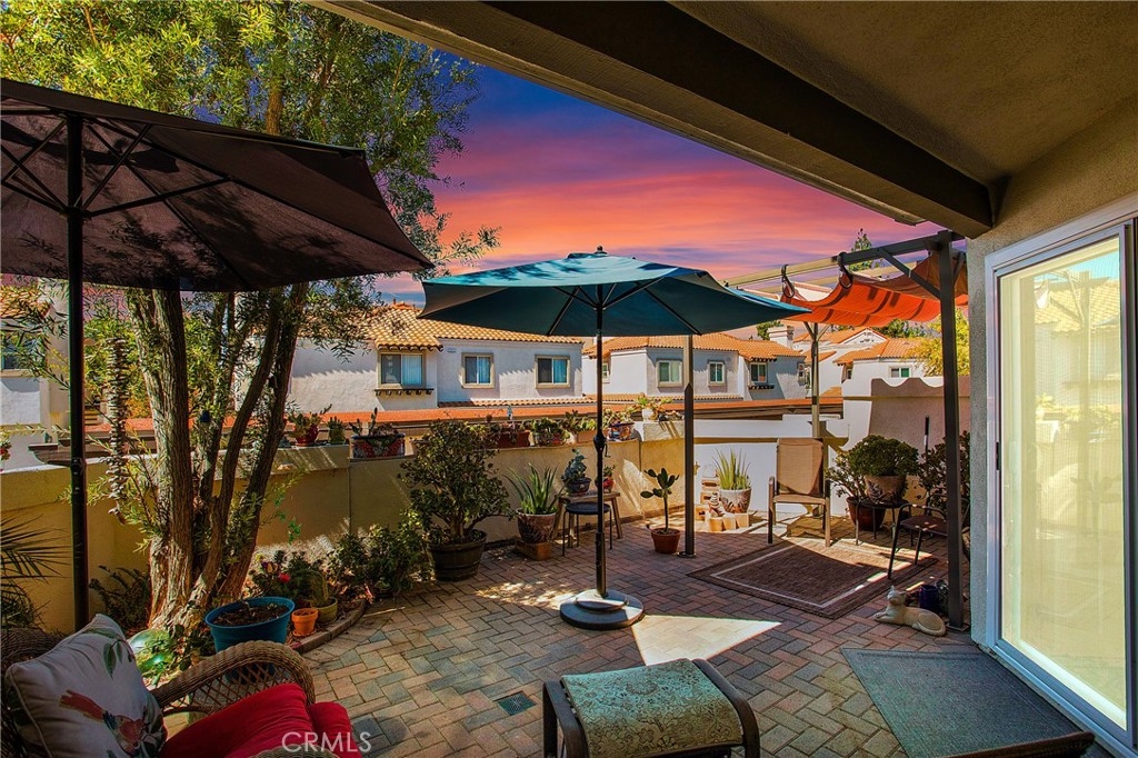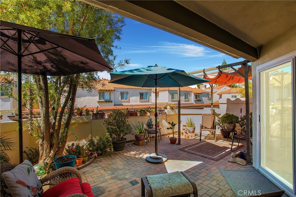 Bright and inviting ground floor single story in the exclusive community of Brisa del Lago 1! This airy home has an open floorplan and is located within walking distance to the Lake in Rancho Santa Margarita and is adjacent to shopping and restaurants at Mercado del Lago. Property features include an updated kitchen with white cabinetry, granite countertops, recessed lighting, a breakfast bar, and a bay window. The living/dining has a fireplace for cool evenings and direct access to the expansive patio. A large bedroom with two mirrored wardrobe closets has sliding glass doors that open to your outdoor entertaining area. Master bath with dual vanities. Desirable neutral palette and plantation shutters. The mudroom could be used as a home office. The home has double paned windows and accommodates a stacked washer/dryer. There is direct access to the attached one car garage. A detached pergola is included in the sale. HOA amenities include lakeside pool and spa and Rancho Santa Margarita offers 13 community parks, 4 pools, the Beach Lagoon, and sports courts. Enjoy outdoor concerts at Central Park in RSM and a library undergoing renovations. Close to hiking and biking trails Brisa del Lago features views of the twin peaks of Saddleback Mountain. Easy access to the 241, Alicia Parkway, and the 5 Freeway.