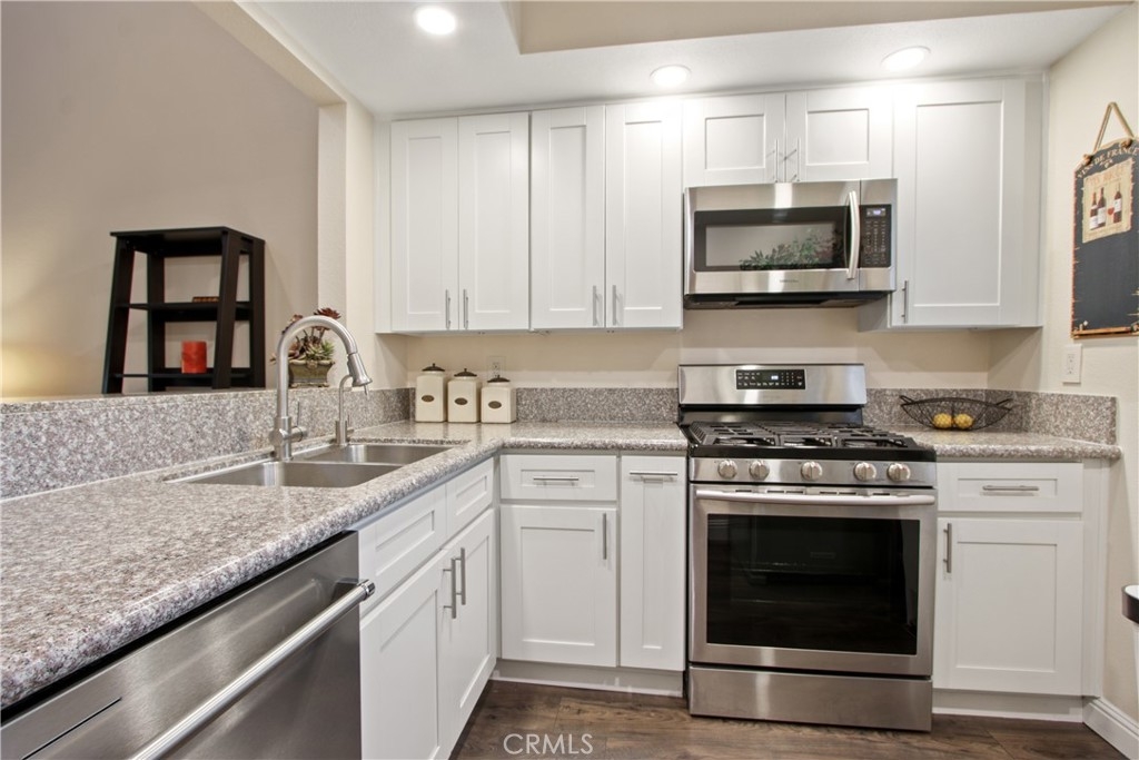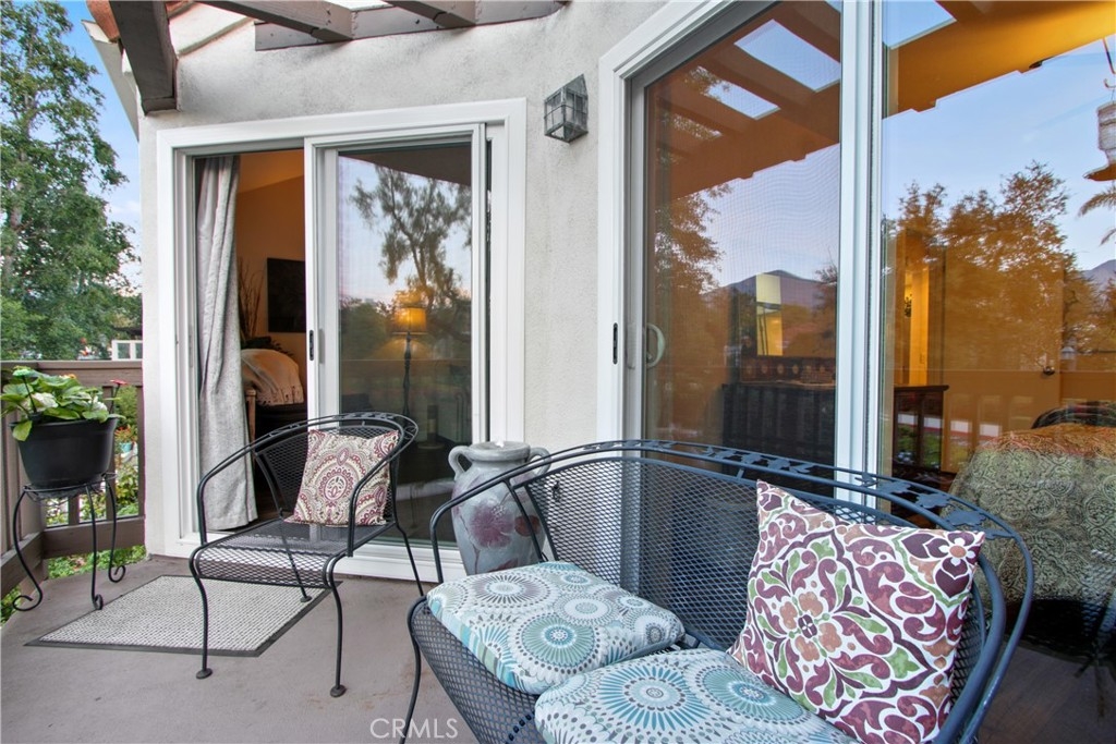 Location! Location! Location! This Spanish Villa Inspired home is nestled in the Scenic and Tree Lined Community of “Brisa Del Lago”, adjacent to Rancho Santa Margarita Lake. This Meticulously Maintained & Renovated Home features an Open Floor Plan offering 2 Bedrooms, 1 Full Bath, 869 Square Feet, 2 Balconies, Oversized, Adjacent 1 Car Garage and 1 Additional Carport Parking Space. As you enter the 1st floor, be Enveloped by the Radiant Natural Light and the Beamed Vaulted Ceilings. The Formal Entry looks out into the Elegant Living Room with Fireplace & Sliding Door Access to the 1st Balcony. The Living Room opens to the Dining Area. The Gourmet Kitchen offers White Shaker, Self-Closing Cabinets with Pull Out Drawers, Polished Nickel Hardware, Granite Counters with Custom Sink & Faucet, Breakfast Bar & Newer Stainless Steel Appliances. To the left is the Tasteful Primary Suite offering His & Hers Closets, Ceiling Fan, and Sliding Door Access to Balcony. The Ensuite Bath features a White Shaker Vanity with Granite Counter, His & Hers Sinks and Tub & Shower. Adjacent is the Laundry Closet with Stackable Washer & Dryer. Upstairs is the 2nd Bedroom offering an Upgraded Ceiling Fan and Sliding Door Access to the 2nd Private Balcony. Additional Interior Upgrades include, Newer Anlin Soundproof & Energy Rated Windows & Sliding Doors, Newer Lennox Signature XC1617 Seer Rating & Pure Air Purification HVAC System, New Shutters, Two Tone Paint, Newer Wood Laminate Floors, Recessed Lighting, Upgraded Baseboards, Upgraded Door Casings, Panel Doors & more. Outside, enjoy the breezy afternoons in the Balcony as you Soak in the Natural Beauty of the Luscious Community Grounds and nearby mountains. Or, enjoy the endless amenities of the community, including Swimming Pool, Spa, Sport Courts, Tot lots, Rancho Santa Margarita Lake Access, Walking & Bike Trails and more. + Enjoy Award Winning Schools & being within walking distance to all Shopping, Dining & Entertainment.