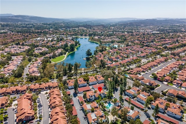FHA, VA, conventional loan approved sparkling & modern 2 level condo with garage and carport located directly across from the lake in Rancho Santa Margarita and immediately adjacent to O'Neill Regional Park. Configured as 1 bedroom and bath on the main level and loft room upstairs with a private panoramic view balcony. Open concept with soaring ceilings, fireplace, 2 large balconies, nobody above you. Kitchen upgraded with quartz counters, stainless steel appliances including refrigerator and recessed lighting. The great room has two story ceilings, wainscoting, features a fireplace, a spacious dining room and access to the main balcony. The primary bedroom is on the main-floor and offers access to the balcony with pool and mountain views. It has two closets and a large bathroom with dual sinks, quartz counters, recessed lights. 1 car garage at the entrance to the home plus one carport right across from it and pllenty of guest parking. Community pool/spa and BBQ plus four SAMLARC pools, tennis courts, baseball and soccer fields, basketball, playgrounds, picnic areas, parks, trails and RSM's Beach Club Lagoon and fishing. Walk to shopping and restaurants.