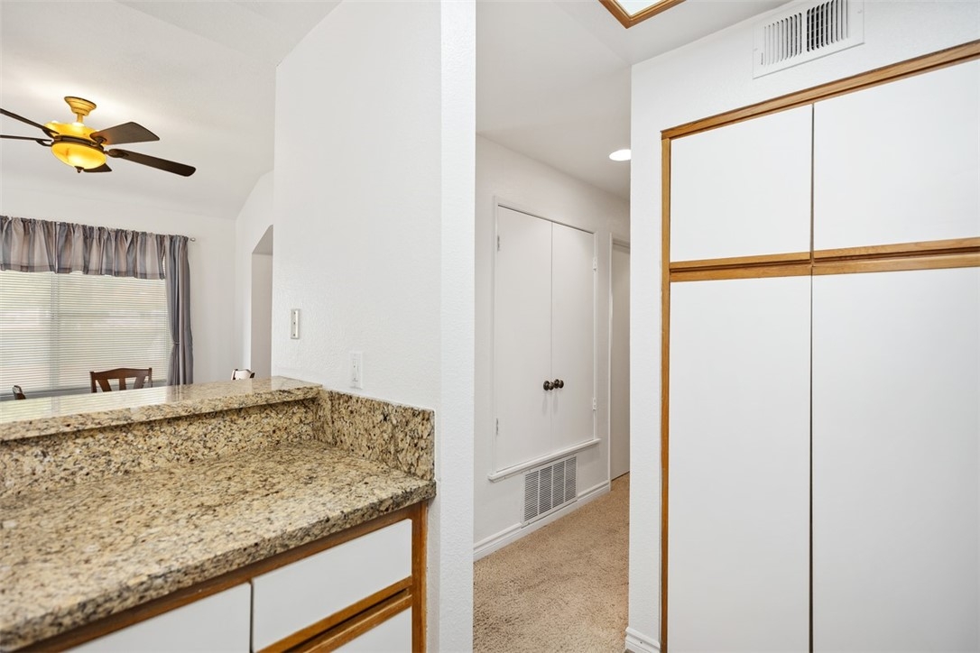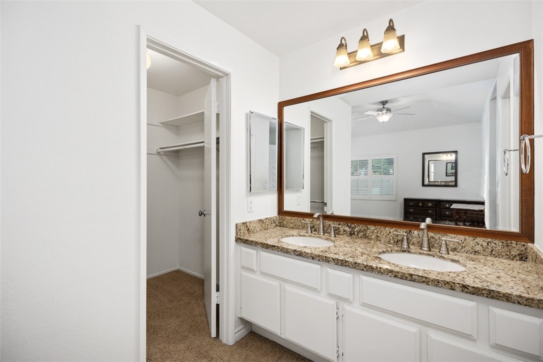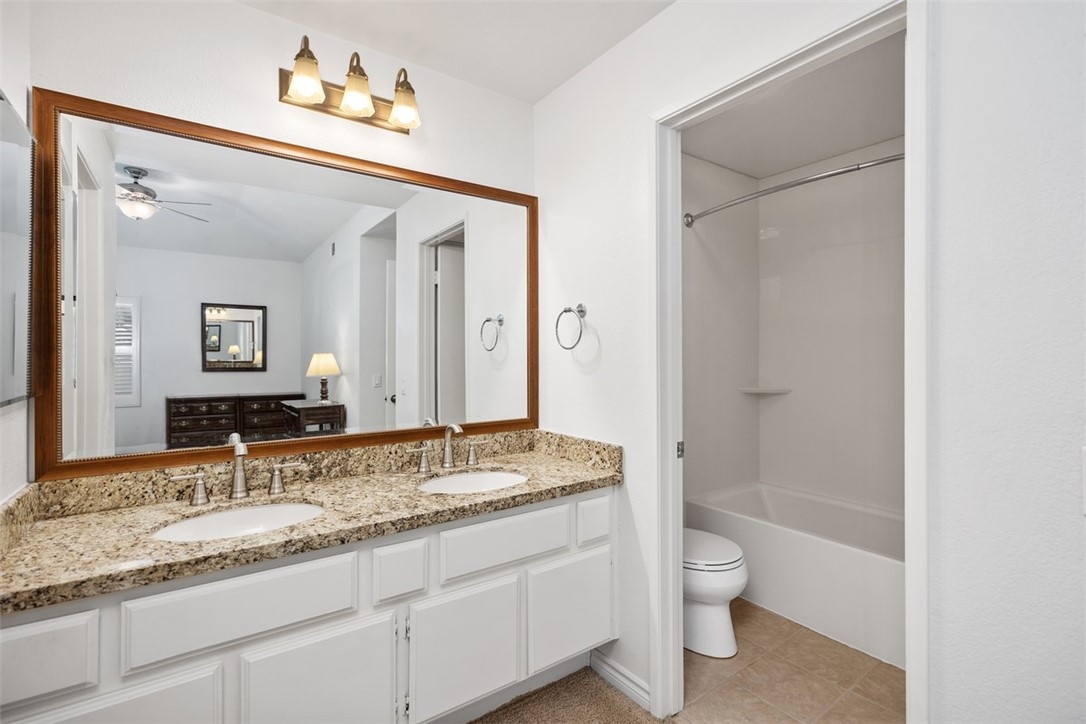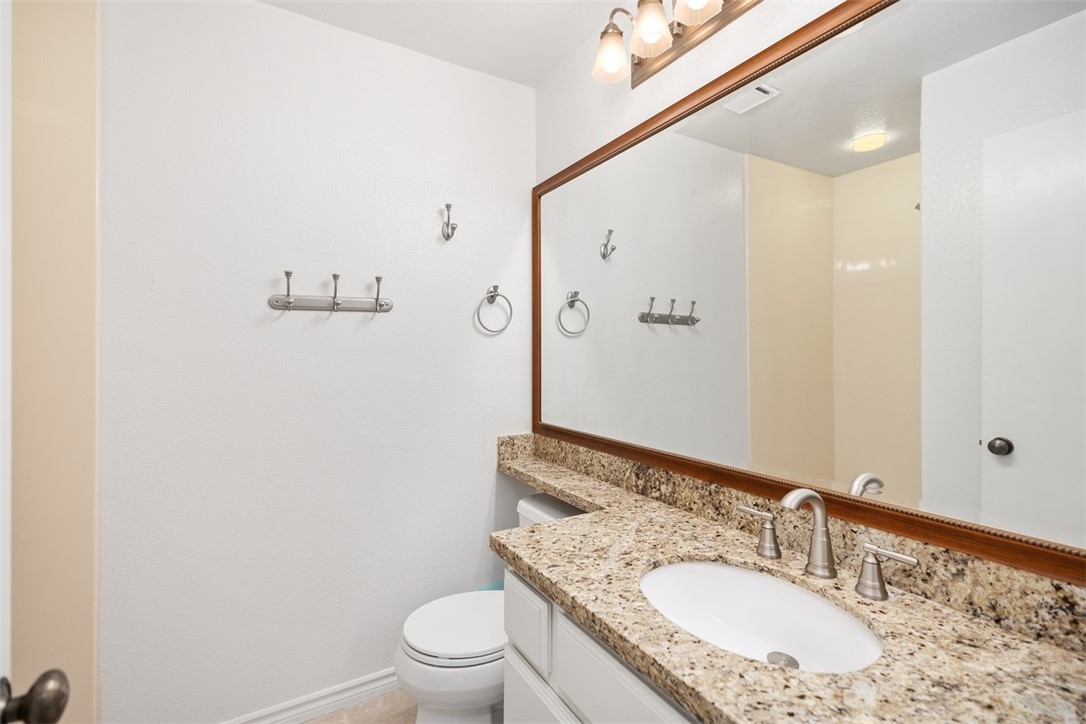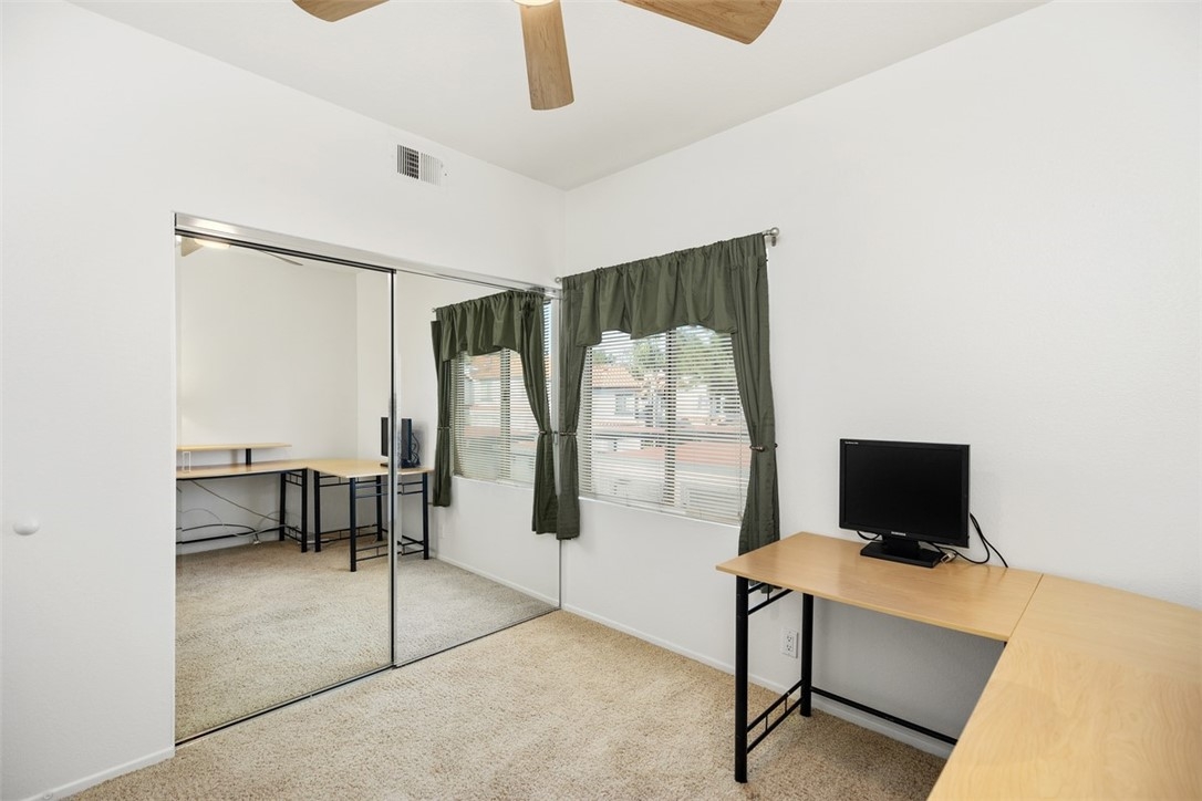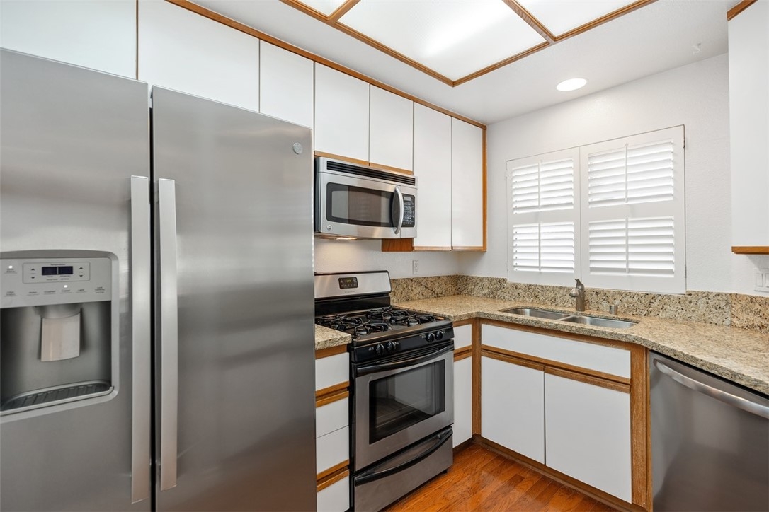 Welcome home to 6 Dianthus. An open floor plan with vaulted ceilings, and windows throughout bringing in natural light to create a warm and inviting home. The kitchen is open to the dining area for ease of entertaining. Amenities of the kitchen include granite counters, stainless steel appliances, a breakfast bar, and a window over the sink provides natural light. The sliding door in the living room leads to the spacious balcony, and the fireplace in the living room provides extra warmth on those chilly nights. The dining room and each of the bedrooms have lovely ceiling fans. The primary bedroom is an ensuite with a walk-in closet. In the primary bathroom, the shower/tub has brand new fiberglass, and a dual vanity with granite counters. The secondary bedroom is currently being used as an office, and has a mirrorred wardrobe. In the secondary bathroom a brand new fiberglass enclosure, plus a brand new glass shower door. A closet in the hallway provides a stackable washer and dryer for the new homeowner. A detached one car garage, with new garage door opener, completes the home. The Homeowners enjoy a well maintained community with an Association pool and spa and recreational area. Brisa Del Lago II is close to beautiful Rancho Santa Margarita Lake, Trabuco Mesa Park, Monte Vista Park, and O'Neill Regional Park. During the year there are numerous events around the lake and park. The community is located close to shopping, restaurants, and entertainment. All furnishings shown in the photos are included in the sale. Do not miss seeing this great opportunity!