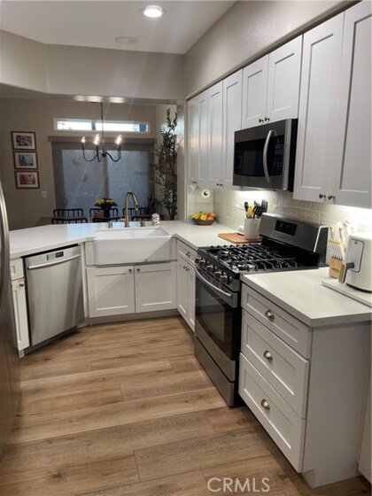 Beautifully maintained and ideally situated in a quiet neighborhood, this 2-bedroom, 2.5-bath condo backs to a tranquil greenbelt, offering rare privacy and peaceful views of lush greenery rather than neighboring homes. Large windows throughout the home frame the natural surroundings and fill the space with abundant natural light, creating a bright and inviting atmosphere. The thoughtfully designed layout features an updated kitchen with quartz countertops, new cabinets and appliances, as well as luxury vinyl plank flooring throughout the first floor. The kitchen and living spaces are meticulously maintained and in excellent condition, making the home truly move-in ready. Additional upgrades include a new A/C and furnace, all new double-pane vinyl windows, and energy-efficient LED lighting throughout the downstairs. The primary suite features a spacious walk-in closet and an en-suite bathroom with dual vanities, offering both comfort and functionality. Everyday convenience is enhanced with an in-unit washer and dryer, while a direct-access one-car garage provides added ease and practicality. The HOA replaced the tile roof approximately five years ago, providing additional peace of mind. Residents of Cabo Vista enjoy access to a private community pool and spa, along with the many amenities that make Rancho Santa Margarita such a desirable place to live. The community offers access to Lago Santa Margarita, the popular Beach Club and Lagoon, multiple swimming pools, and 13 parks featuring playgrounds, picnic areas, and sports courts. A network of scenic trails runs throughout the city, ideal for walking, running, and biking. Rancho Santa Margarita is also consistently recognized as one of California’s safest cities, offering residents both peace of mind and an active, resort-inspired lifestyle.