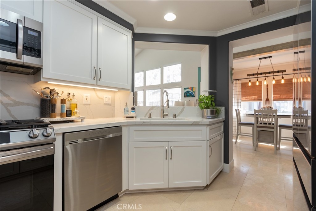 Welcome to Melinda Heights! This 2-bedroom, 2-bathroom home offers the ultimate in privacy, with no neighbors above or below, along with the convenience of an attached garage. You'll be captivated by the beautiful upgrades throughout, including brand new quartz counters and Bamboo wood flooring. Custom Stone built-ins for TV mounting adds both style and functionality to the living space. The copper plumbing has been replaced with Pex piping. The master bedroom, thoughtfully situated on the main level, ensures ease of access and comfort. Ascend to the third level to discover the second bedroom, complete with its own bathroom. Above the dining room is an additional space featuring a loft, currently utilized as an office area. Although the loft addition is not to code, it is a must-see. It can always be used for houseplants or storage instead of an office space. Conveniently located near Solano Park and Altisima Park, where residents can enjoy an Olympic-sized pool and sports fields, and just a short drive away from the distinguished Melinda Heights Elementary School, this home offers both recreation and educational opportunities. Additionally, the Cabo Vista Community amenities, including a pool, spa, showers, and bathrooms, offer relaxation and convenience right at your doorstep. Nestled in the serene setting of this desirable neighborhood, this home offers a prime location and an exceptional living experience for its fortunate residents.
