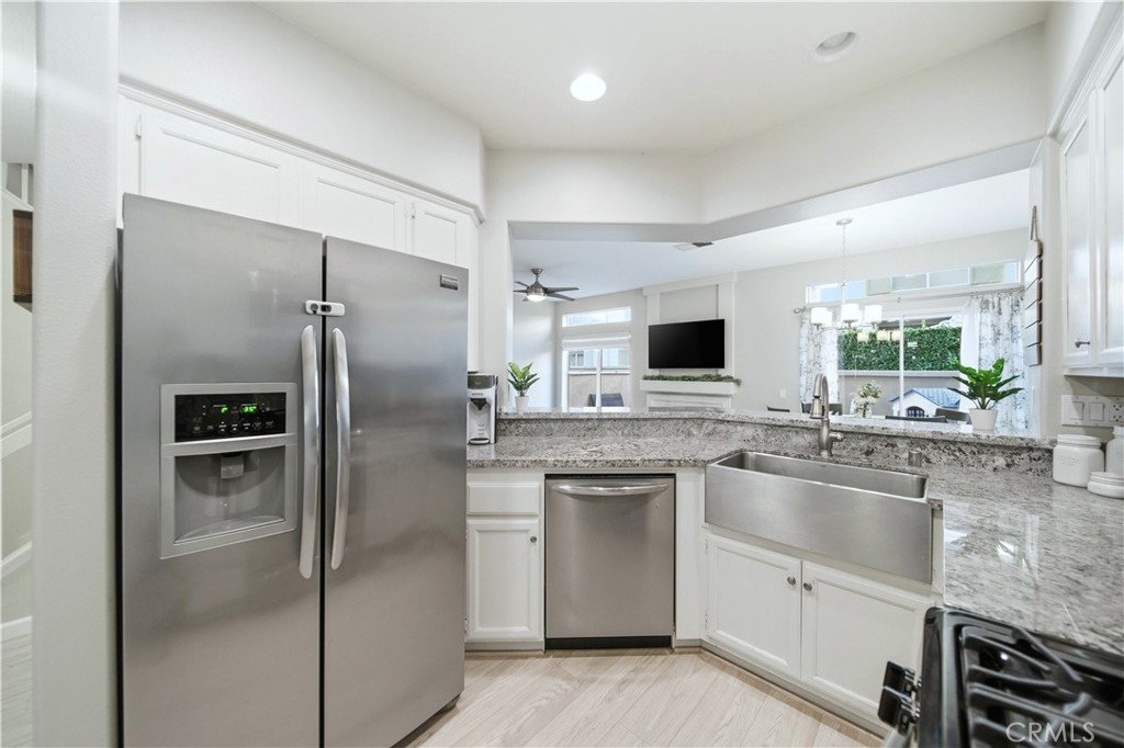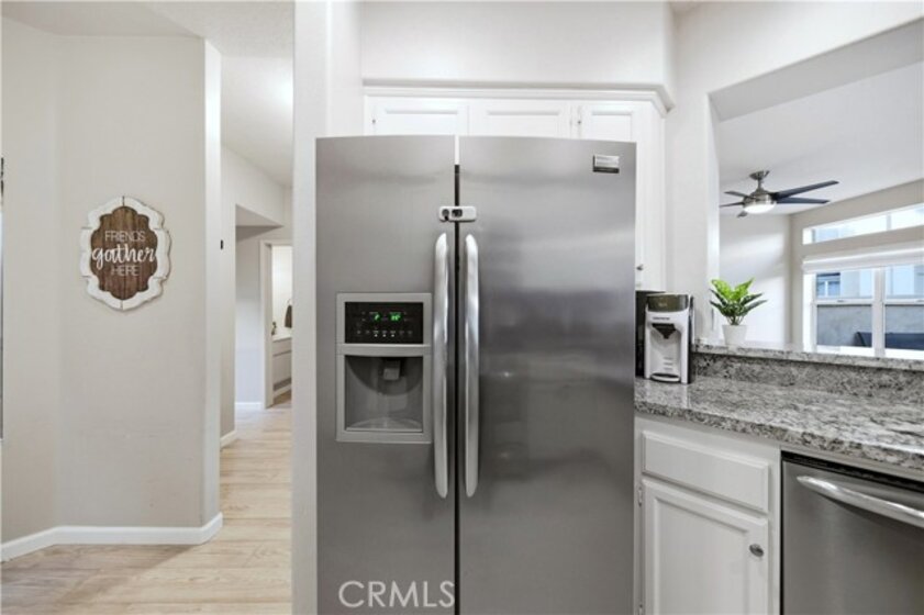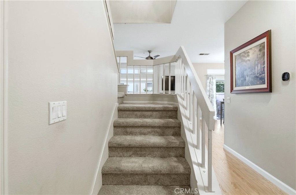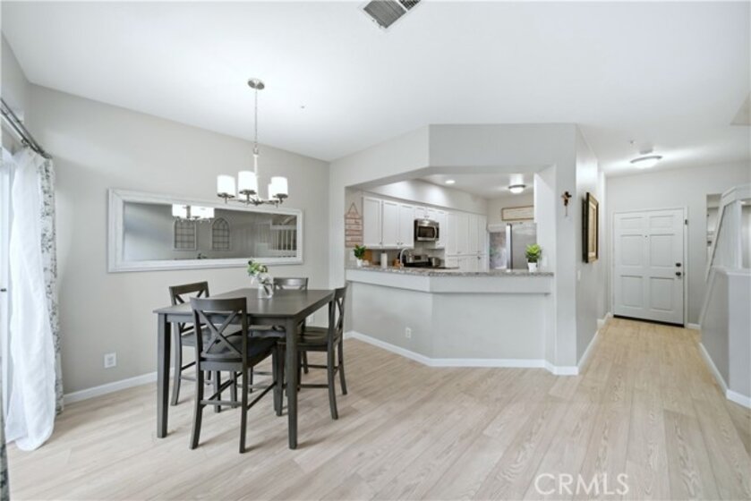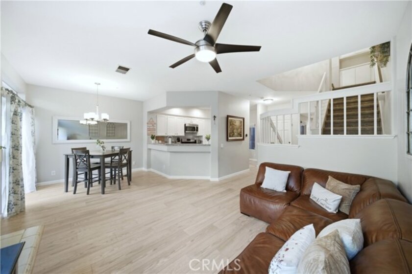 According to SafeWise, welcome to the safest city in all of California; Rancho Santa Margarita. The Cabo Vista Tract of homes is located in the highly sought after section of town known as Melinda Heights. Enjoy neighborhood amenities that include a pool, spa and clubhouse. City wide opportunities include the carefully planned SAMLARC features such as pools, pickleball courts, tennis courts, picnic areas, playgrounds, softball fields, hiking trails, biking trails and membership to the Lago Santa Margarita Beach Club with its massive swimming area. Award winning schools and access to nearby toll roads are all included. This particular home has plenty of natural light, employs the popular great room concept, has no one living above or below and a direct access garage. Textured ceilings, bull-nosed corners, Decor Plugs/Switches, raised panel doors, brand new carpeting, brand new luxury vinyl flooring and oversized baseboards are featured throughout. The renovated kitchen has granite counters/backsplash and stainless steel appliances including the dishwasher, the stove/oven, barn style sink, microwave and faucet. The handy breakfast bar will make casual meals a snap, or you can use the convenient nook area off the kitchen with its ample storage. Both upstairs bedrooms have their own self-contained bath. The primary suite has a walk in closet, dual sinks, a walk in shower and a privacy door to the commode area. Both bedrooms have mirrored closet doors. The rear patio is perfect for firing up the bar-b-q, relaxing or entertaining. When I asked the owners what they most enjoyed about their home, I was told they appreciated the peace and quiet, how friendly the neighbors were and how safe they felt. Those are exceptional qualities for any home in any price range.