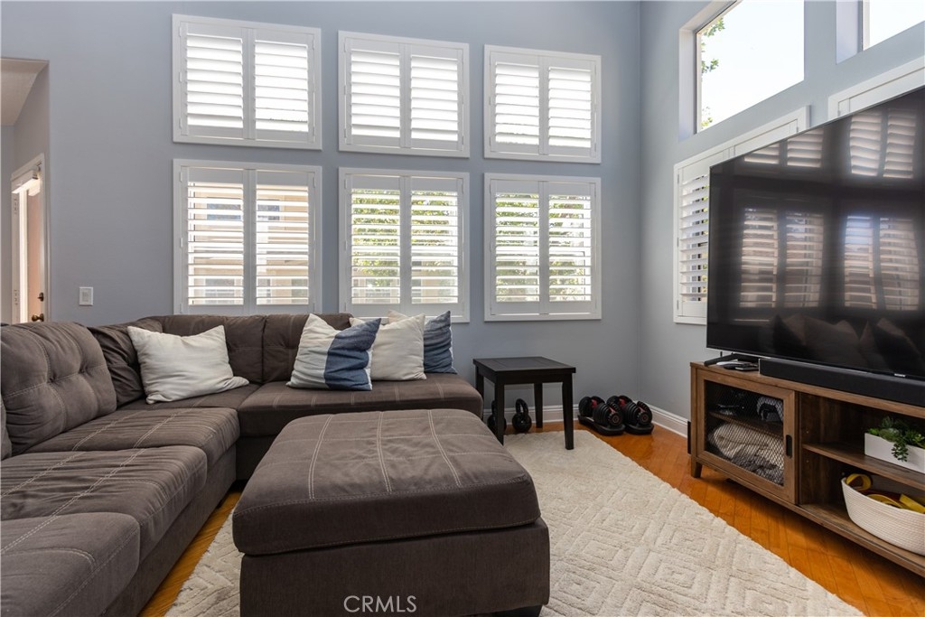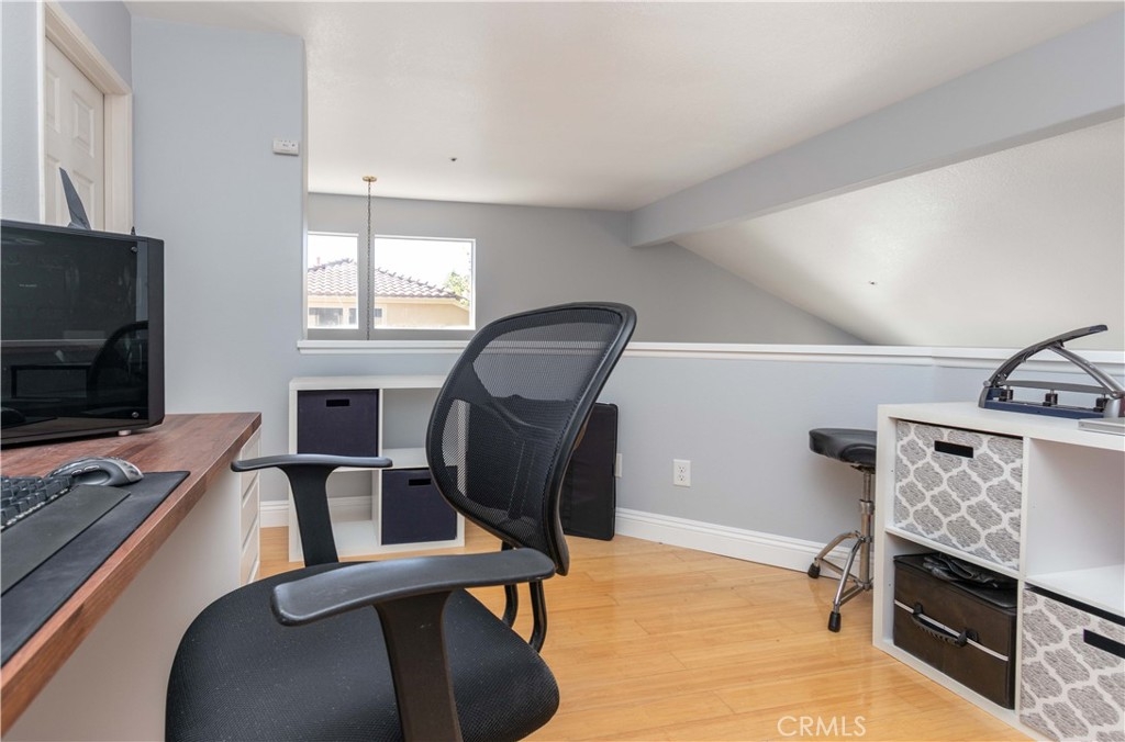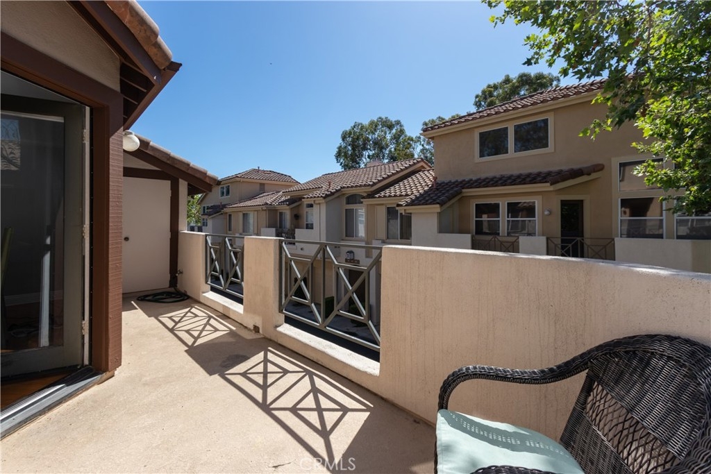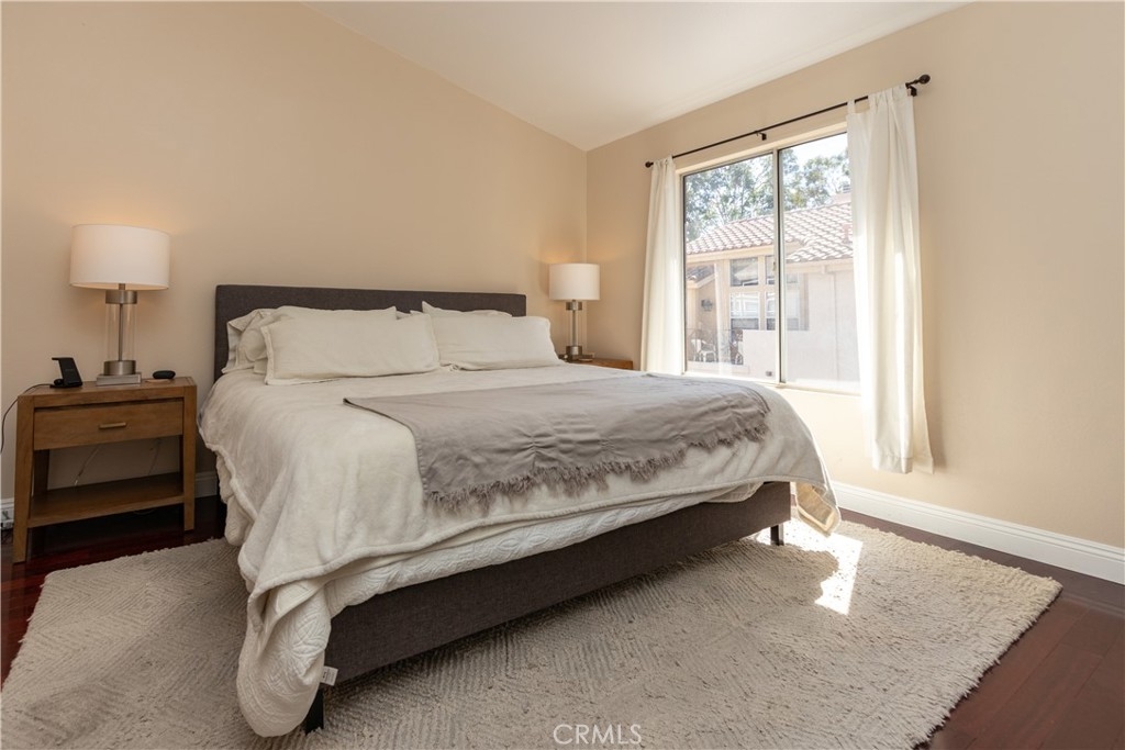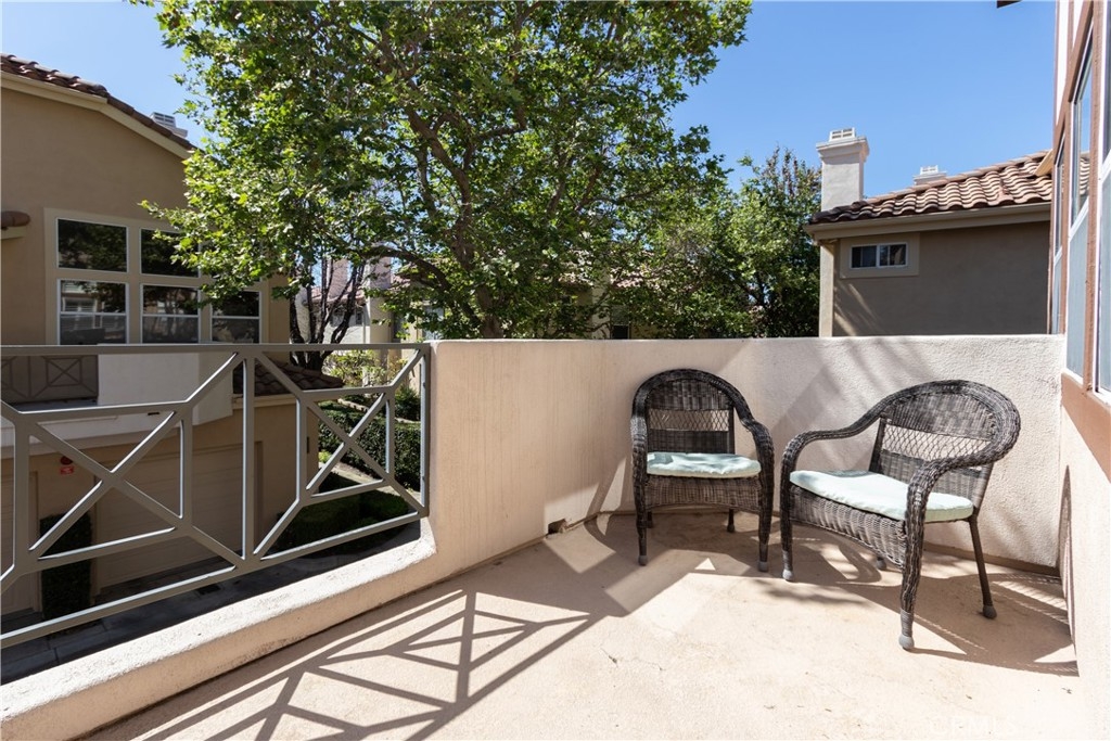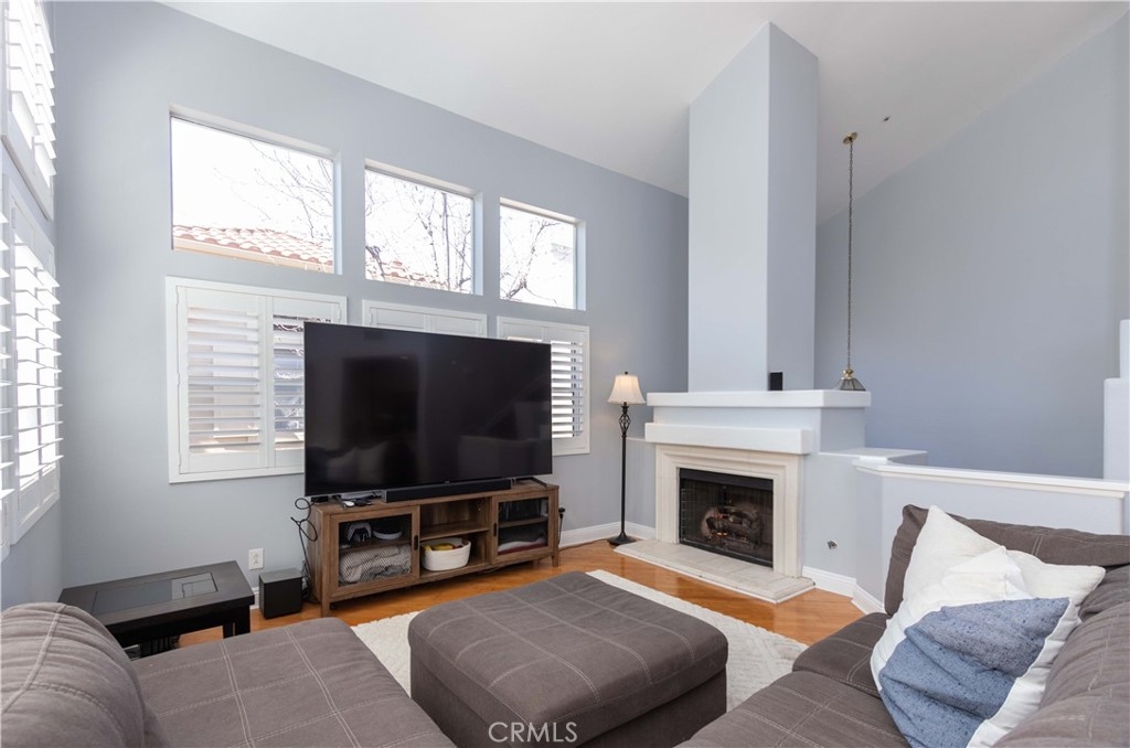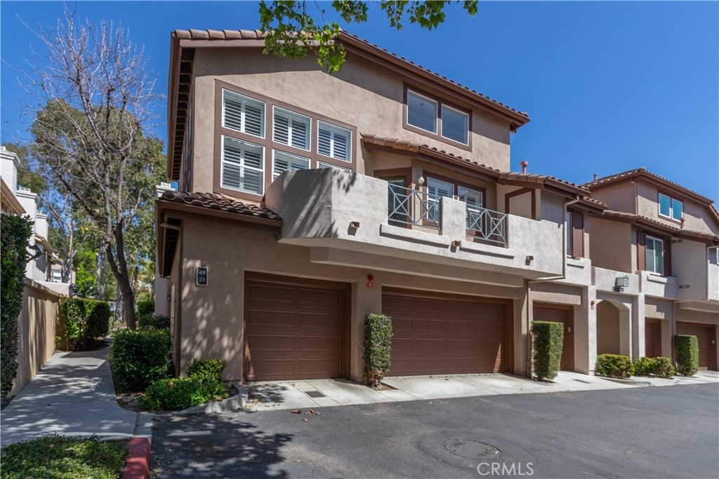 Welcome to this beautifully upgraded turn-key two bedroom condo in the Melinda Heights area, with rare end-unit location on the complex's only cul-de-sac and nobody above or below. Roomy primary suite includes full bathroom with double sink and walk-in closet. Upstairs second bedroom is currently configured as a loft and features closet and second full bathroom. High ceilings and plentiful windows create a bright and airy atmosphere with ideal natural light. Attached garage and front door lead to staircase up to main living area, featuring hardwood flooring, upgraded kitchen with stainless steel appliances and breakfast bar, spacious living room with fireplace, dining room, outdoor balcony. Other highlights include attached laundry room, recently upgraded A/C and furnace with smart thermostat, high-end kitchen appliances included (plus included washer/dryer), custom window shutters, complete re-pipe with PEX, and numerous community amenities. Steps away from beautiful community pool and short drive from Melinda Heights Elementary School, RSM Lake, Lake Mission Viejo, numerous shopping centers and outdoor activities.