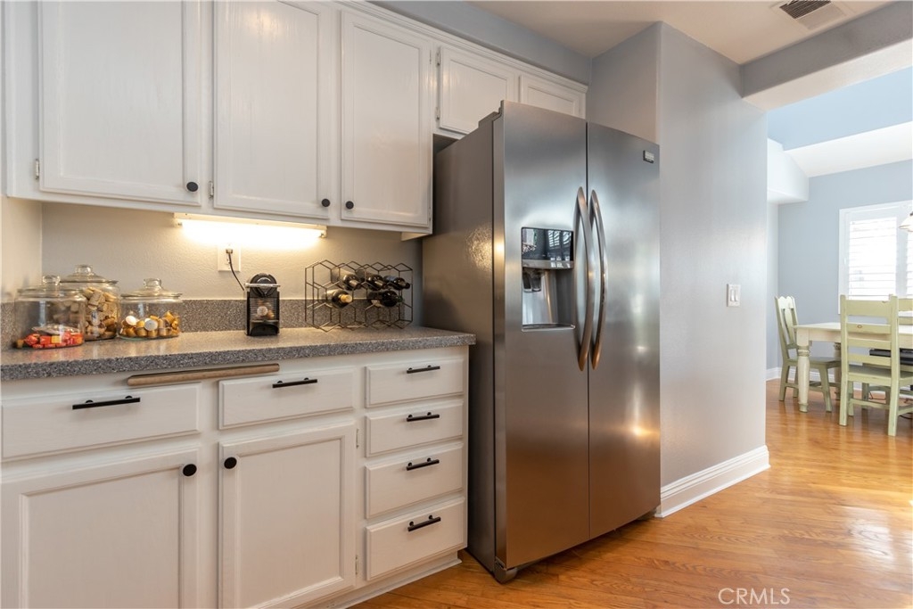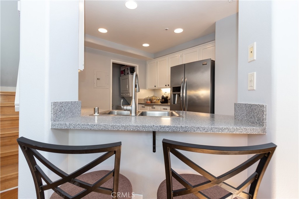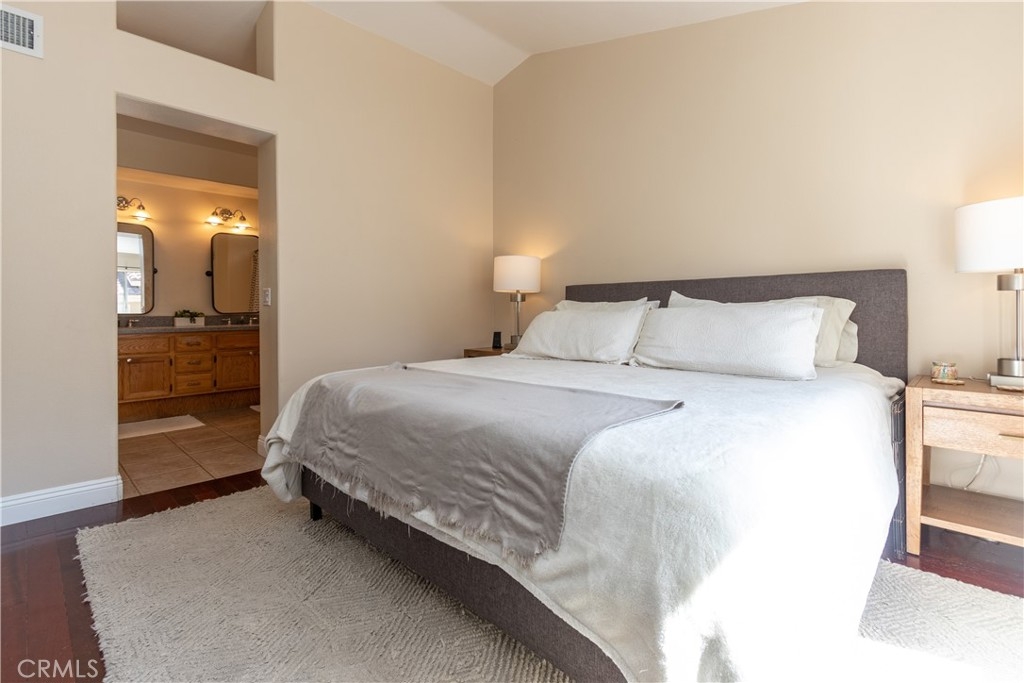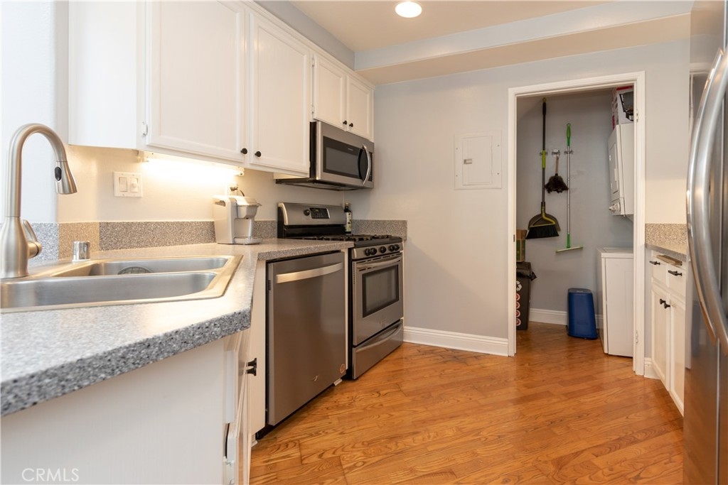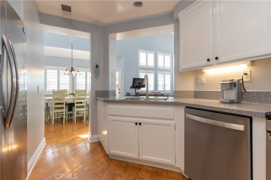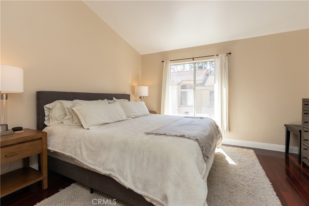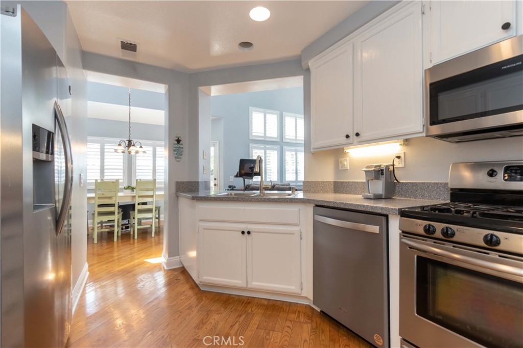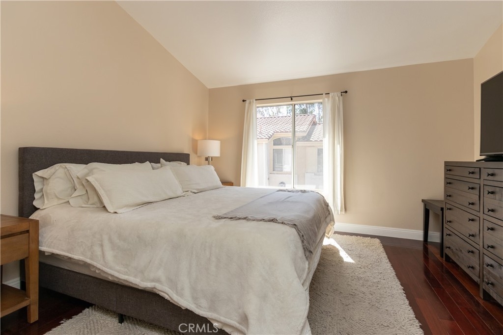 Welcome to this beautifully upgraded turn-key two bedroom condo in the Melinda Heights area, with rare end-unit location on the complex's only cul-de-sac and nobody above or below. Roomy primary suite includes full bathroom with double sink and walk-in closet. Upstairs second bedroom is currently configured as a loft and features closet and second full bathroom. High ceilings and plentiful windows create a bright and airy atmosphere with ideal natural light. Attached garage and front door lead to staircase up to main living area, featuring hardwood flooring, upgraded kitchen with stainless steel appliances and breakfast bar, spacious living room with fireplace, dining room, outdoor balcony. Other highlights include attached laundry room, recently upgraded A/C and furnace with smart thermostat, high-end kitchen appliances included (plus included washer/dryer), custom window shutters, complete re-pipe with PEX, and numerous community amenities. Steps away from beautiful community pool and short drive from Melinda Heights Elementary School, RSM Lake, Lake Mission Viejo, numerous shopping centers and outdoor activities.