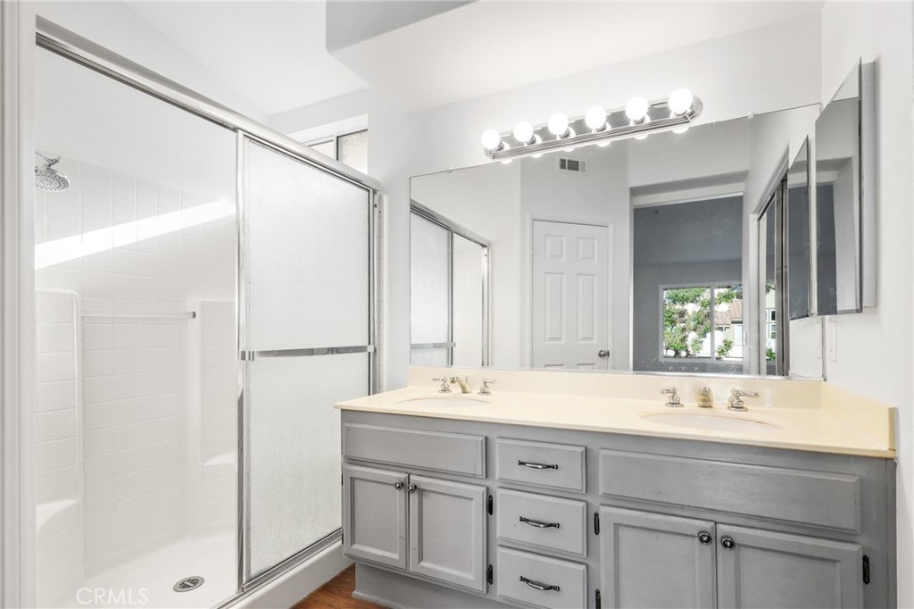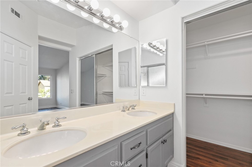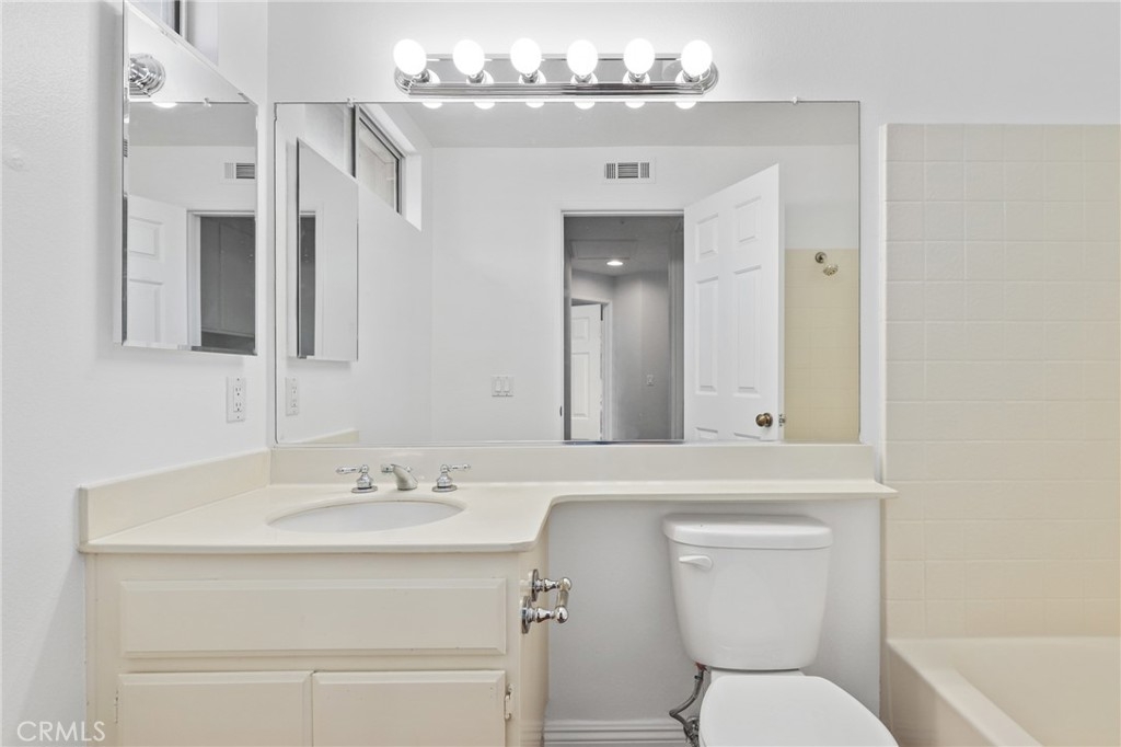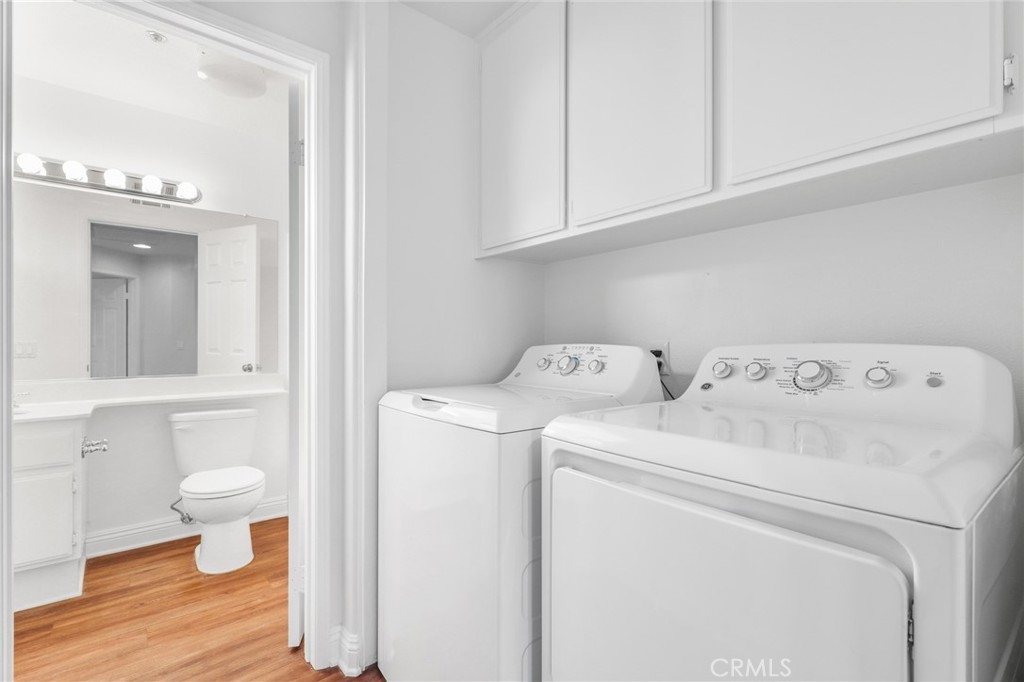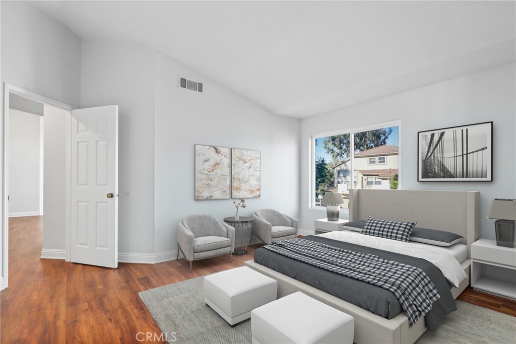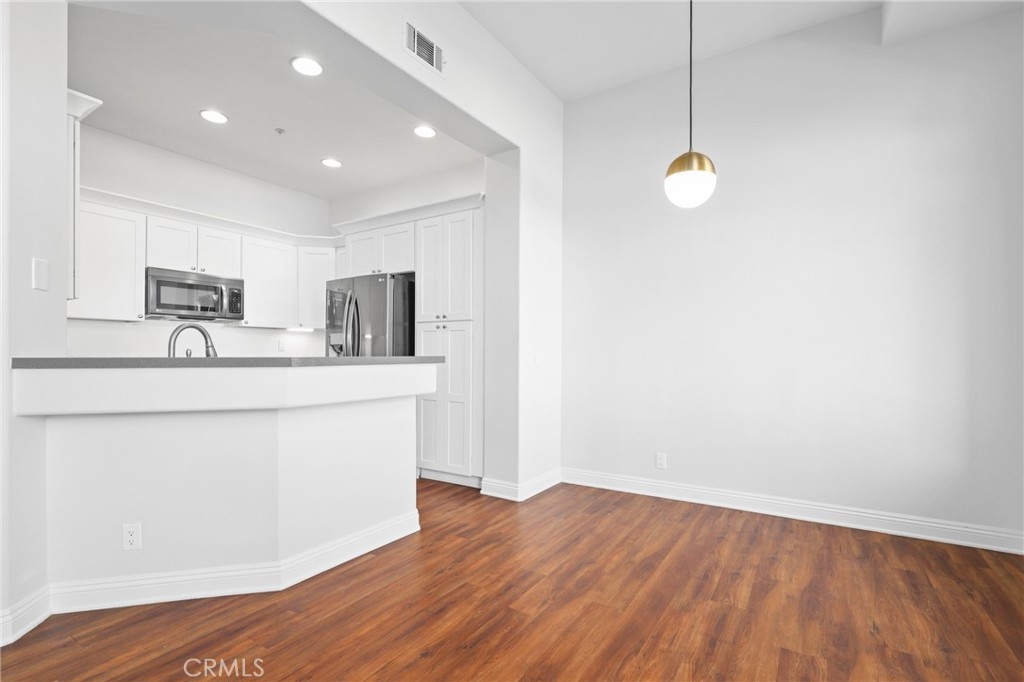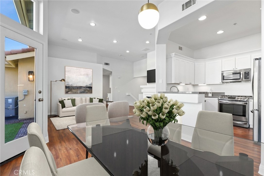 Welcome to this GEM of a home in the great city of Rancho Santa Margarita! This 2 bedroom, 2 bath home in the heart of RSM is located in one of the most sought after communities, Cabo Vista. A freshly painted interior, laminate wood look flooring throughout, a wall flanked with windows to allow natural sunlight in, and an open floor plan makes this living area feel bigger than what it is. The kitchen has been remodeled with shaker style white cabinets, beautiful quartz countertops and full suite of stainless steel appliances (Sink, microwave, freestanding range, refrigerator and dishwasher). Other features include a cozy fireplace in the main living area, surround sound speakers, recessed lighting, smart thermostat, light dimmers plus a separate laundry closet. The primary bedroom suite has a walk in closet with mirrored doors, en-suite bath that includes dual sinks and a walk in shower. A French door leads you outside to the balcony where you can enjoy a perfect summer BBQ or take in the tranquil scenery of the Cabo Vista community. The Cabo Vista pool and spa are just a short distance away. Ownership here also includes access to the abundant Rancho Santa Margarita amenities including pools, the Beach Club, tennis courts, sports fields, parks, playgrounds and so much more! Ranked as one of the safest cities in California, this home surely won't last long! Come see this home today.