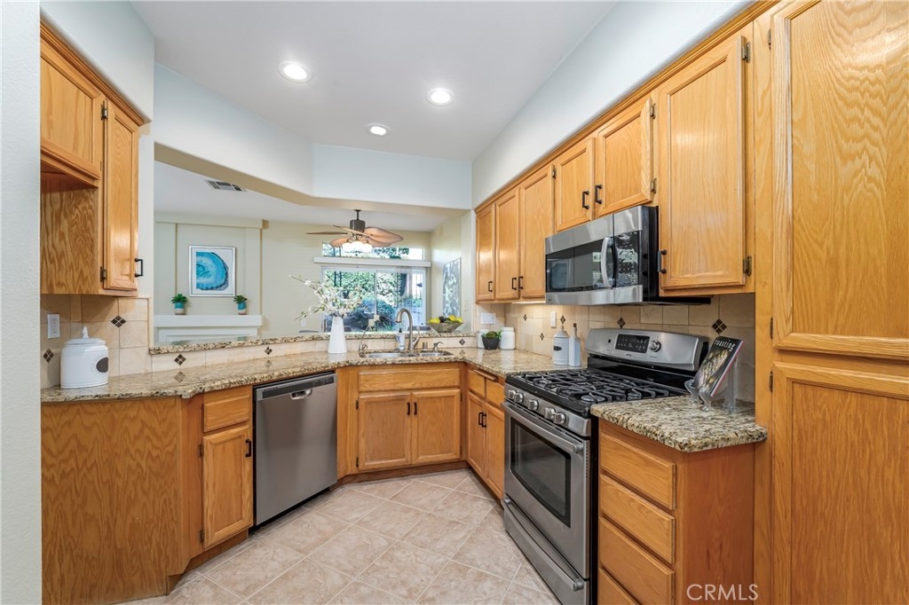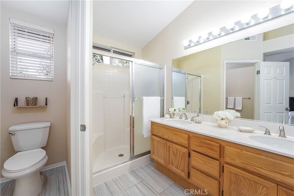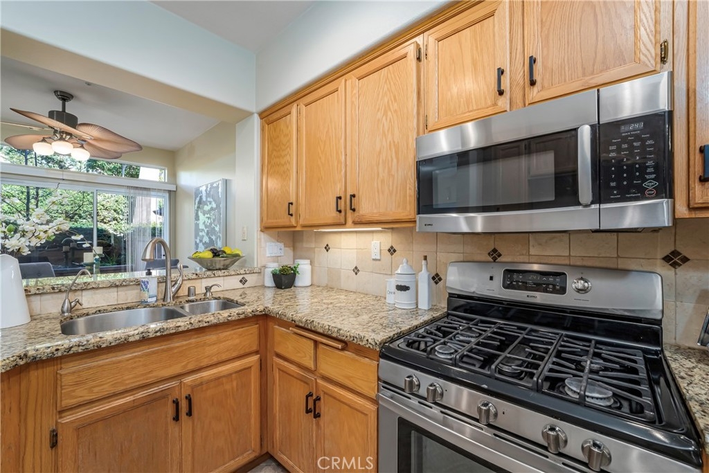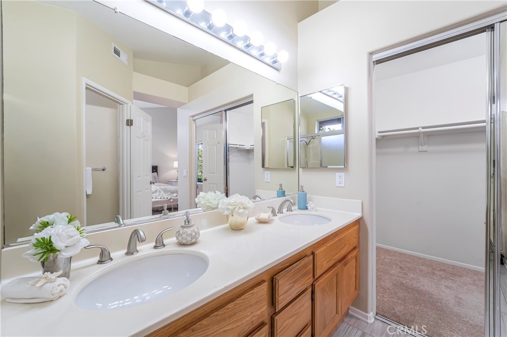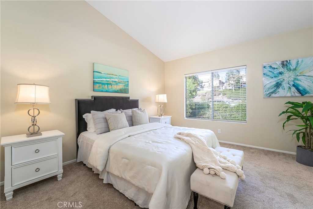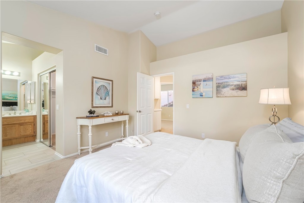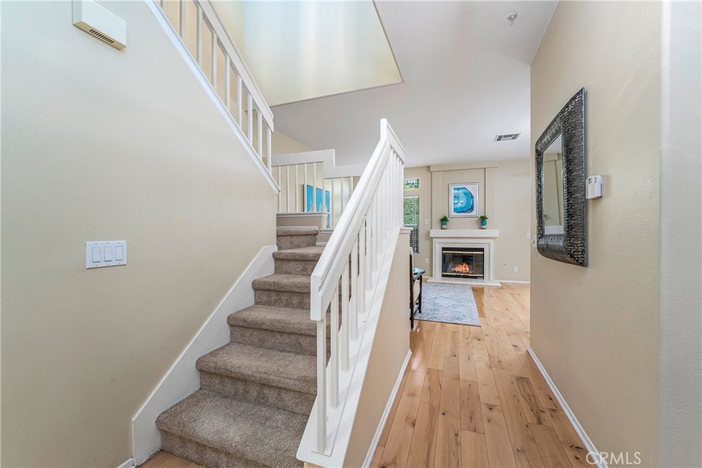 Most convenient and desirable Melinda Heights are of Rancho Santa Margarita, model perfect Cabo Vista 2 story townhome with nobody above or below and a pretty greenbelt behind. Gourmet size kitchen with granite counter, stainless gas range, dishwasher & microwave, enormous pantry, sunny breakfast nook, wrap around breakfast bar all open to the dining room & living room with wood or gas fireplace. Main level includes 1/2 bath, large inside laundry room for full size washer and gas or electric dryer hookups. Upstairs are two well separated bedrooms with en-suite bathrooms, vaulted ceilings, linen cabinet. Primary bedroom has a huge walk-in closet, dual sink vanity, walk-in shower and privacy water closet. Convenient direct access garage with remote opener & storage cabinets with ample secondary parking throughout the community. Nice patio with planter areas spans the entire back of the home and faces a greenbelt for privacy & pretty outlook. Hardwood floor throughout lower level, plush neutral carpet upstairs and porcelain tile in the bathrooms. Central heat & air conditioning. Convenient to Toll Roads, Mission Viejo, Lake Forest, Irvine and Rancho Santa Margarita with sought after schools, Enjoy the best of Orange County living with very low property tax rate of under 1.05% and No Mello Roos, according to OC Property Tax Assessor. HOA fee includes pool & spa, trash service, exterior maintenance & insurance on the structure plus access to all the wonderful amenities including the lake, beach club, pools, spas, tennis, pickleball, basketball, baseball, softball, football, soccer, lacrosse, field hockey, picnic and BBQ areas.