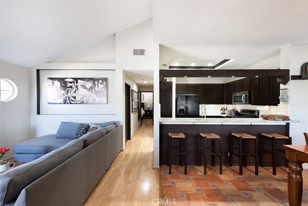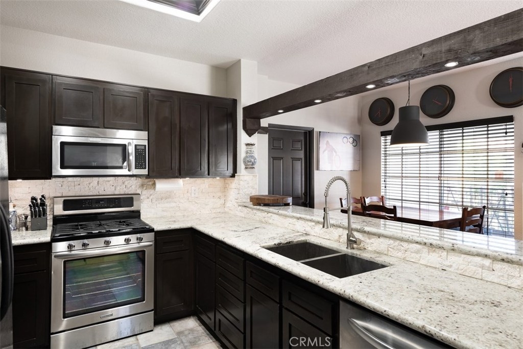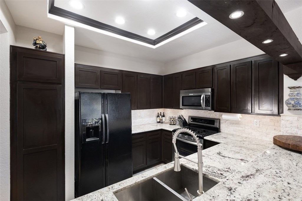 Beautifully upgraded home rest just outside gates of Coto de Caza. Located in the highly desirable Casafina community. Upon entry, you will instantly notice the vaulted ceilings, gas fireplace and open floor plan and large windows of the home. Your eyes will be drawn to the upgraded kitchen, breakfast bar and dining area. The Kitchen features; shaker cabinetry, granite counters, stacked stone backsplash and stainless steel appliances. The master bedroom includes a generous bathroom with 2 sinks and a large closet. Just off the kitchen you will find stairs to the attached one car garage with laundry hook-ups, storage and new water heater replaced in last 6 months. The community has a wonderful association pool and spa. The HOA continues to make improvements including recently re-piped entire complex with PEX. There are shops, restaurants and a grocery store across the street from the community. You will also love the Rancho Santa Margarita amenities; Sport courts, Pools, Beach Club, Walking trails and Parks! Close to the 241 Toll Road and just minutes from Shopping, Theaters and Restaurants! Don’t miss this rare opportunity.